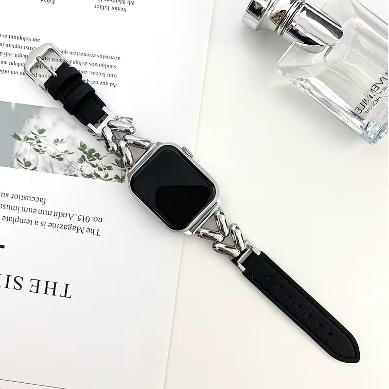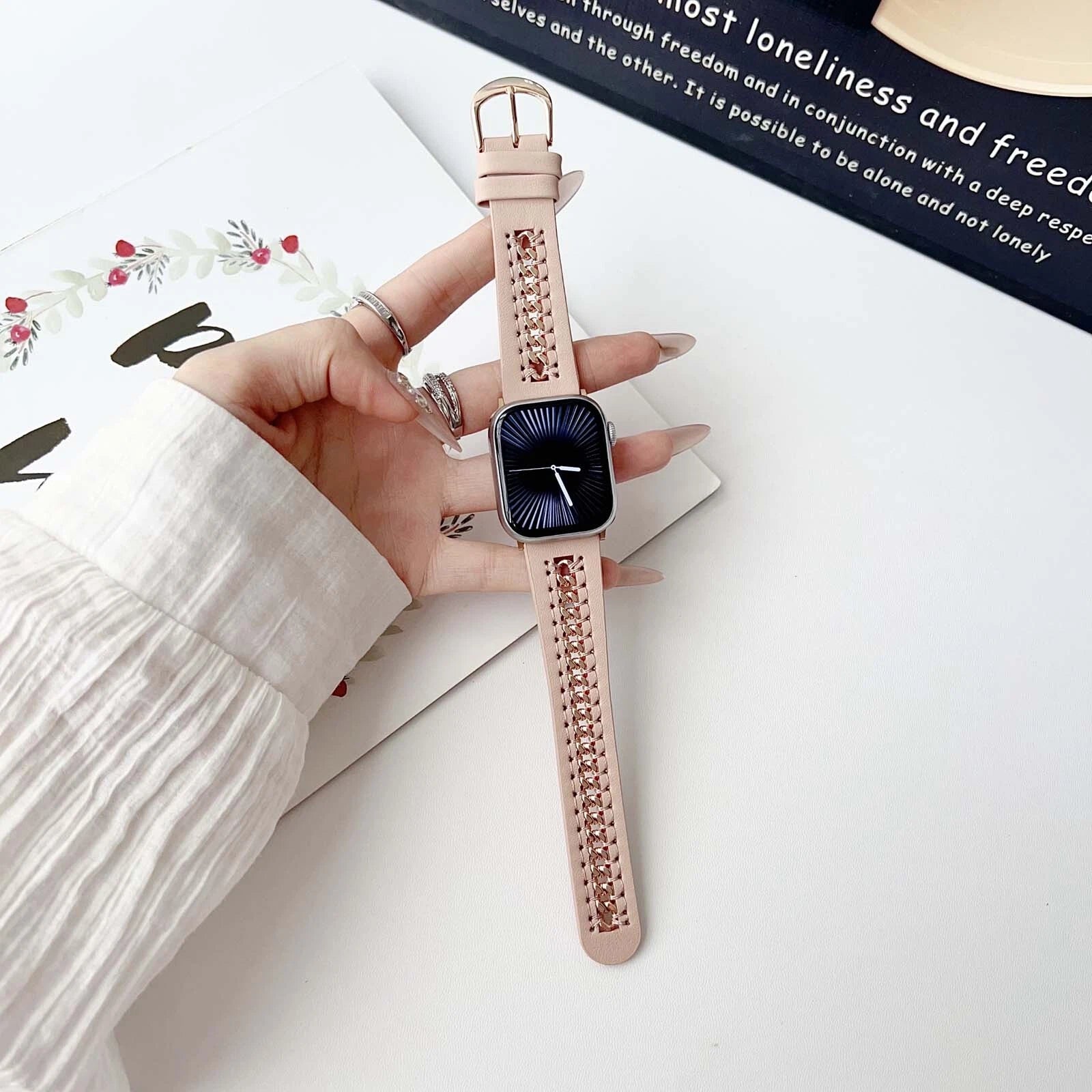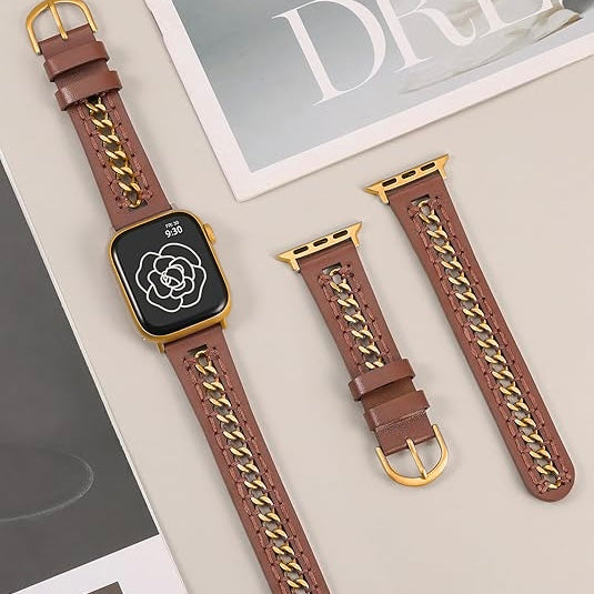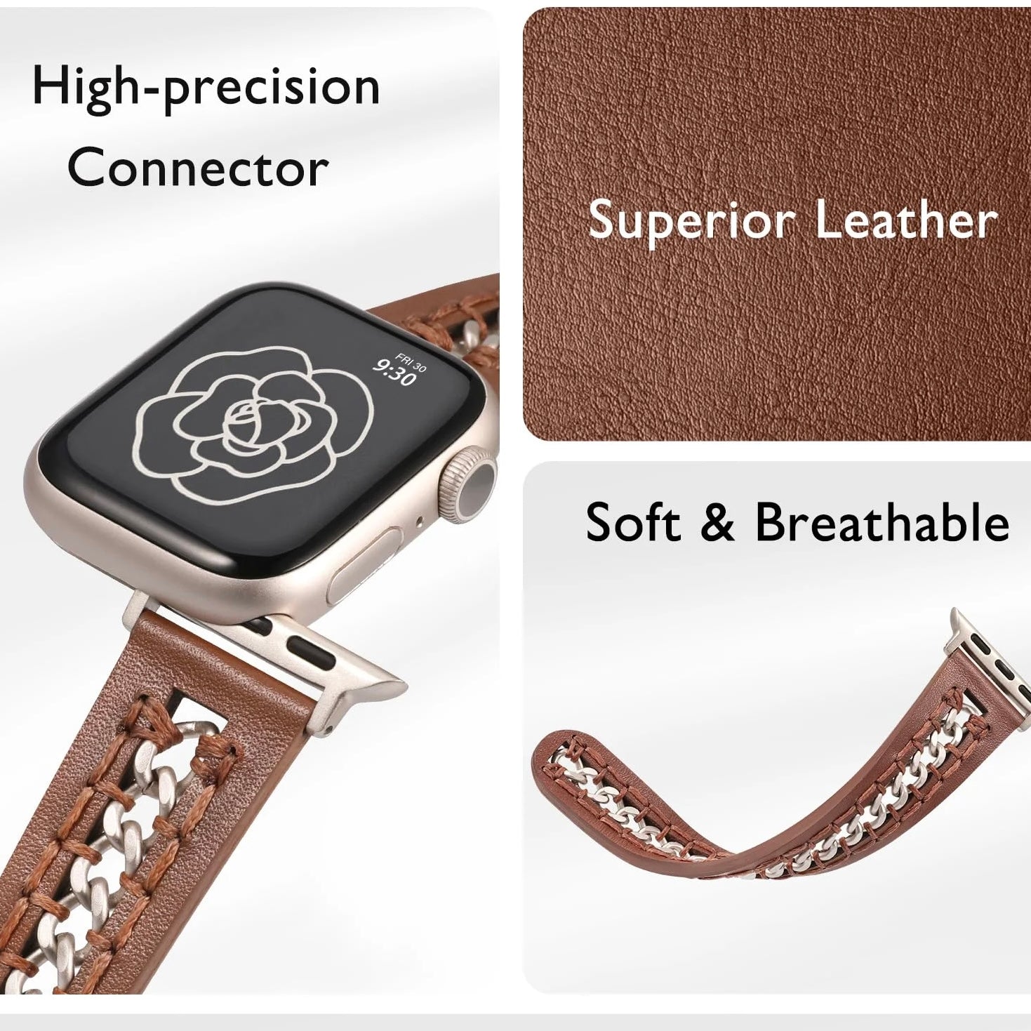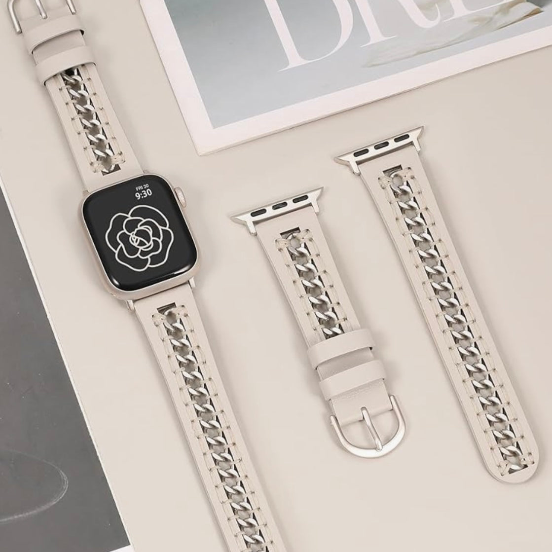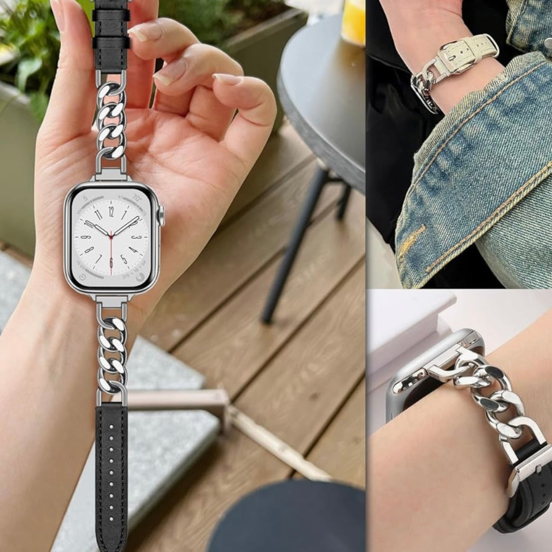 Chain Reaction Leather Steel Bracelet Band For Apple Watch Multiple Colors Available