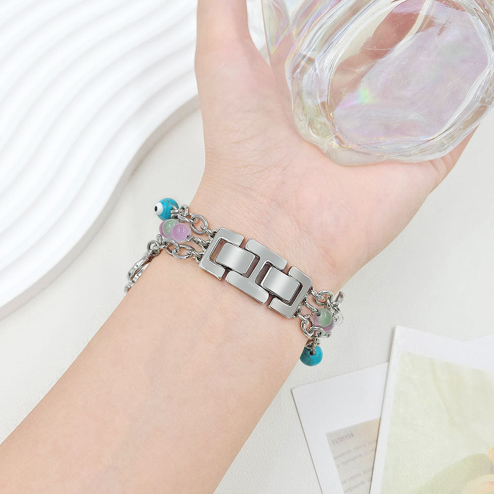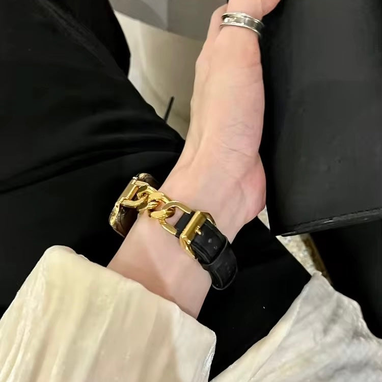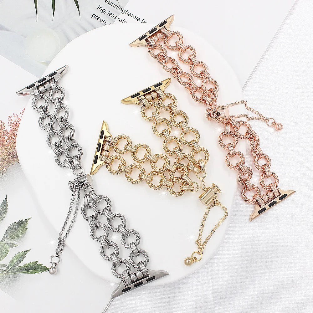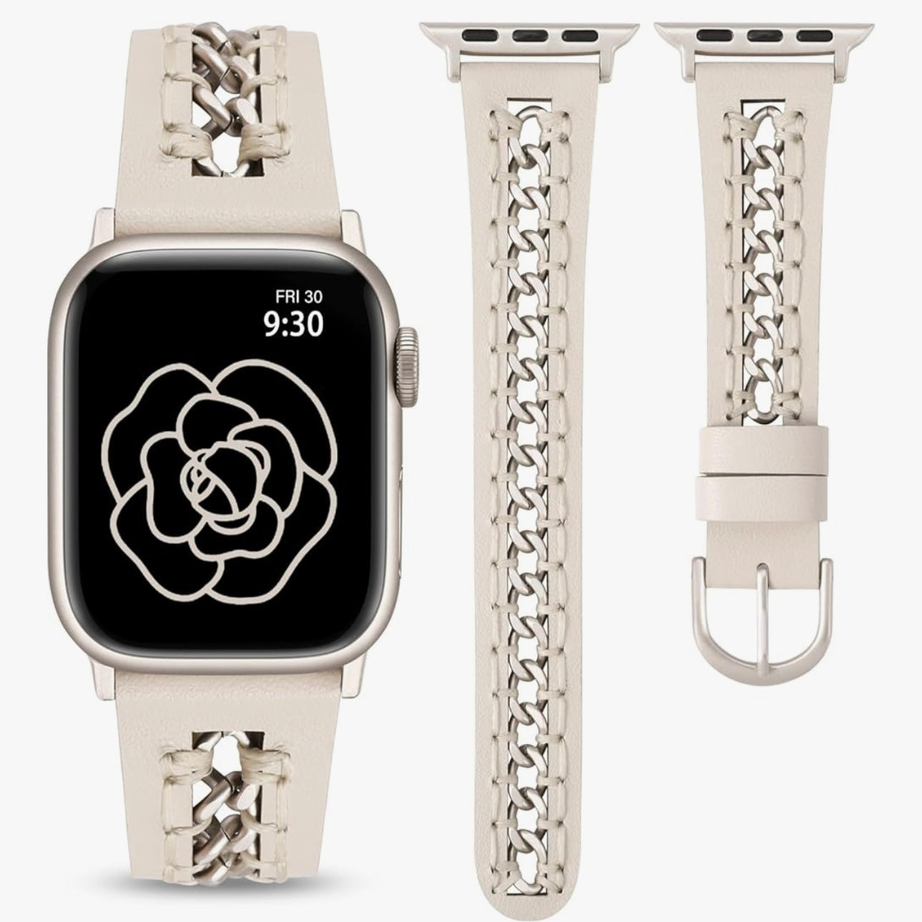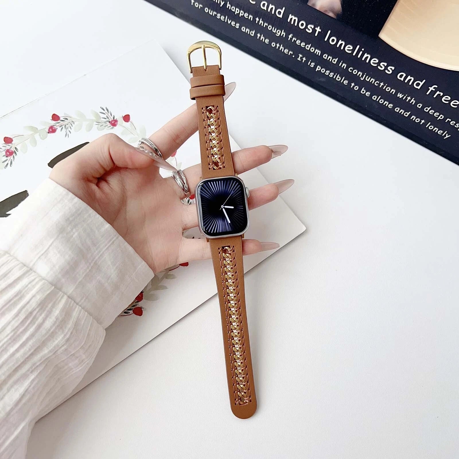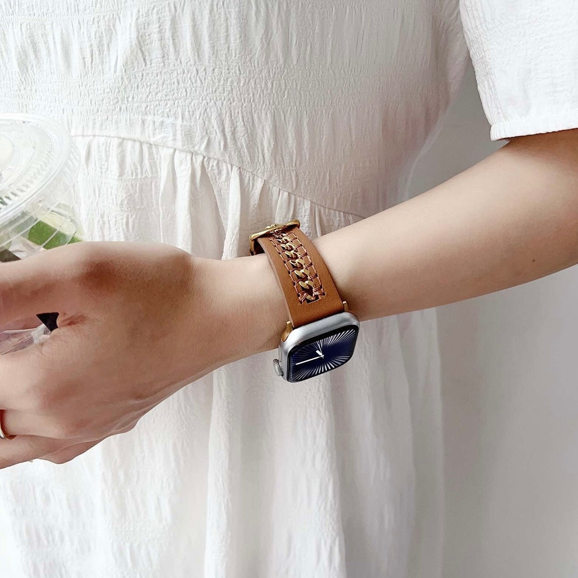 Chain Reaction Leather Steel Bracelet Band For Apple Watch Multiple Colors Available