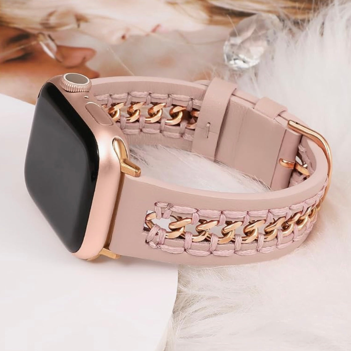 Pearled Up Leather Band For Apple Watch Two Colors Available