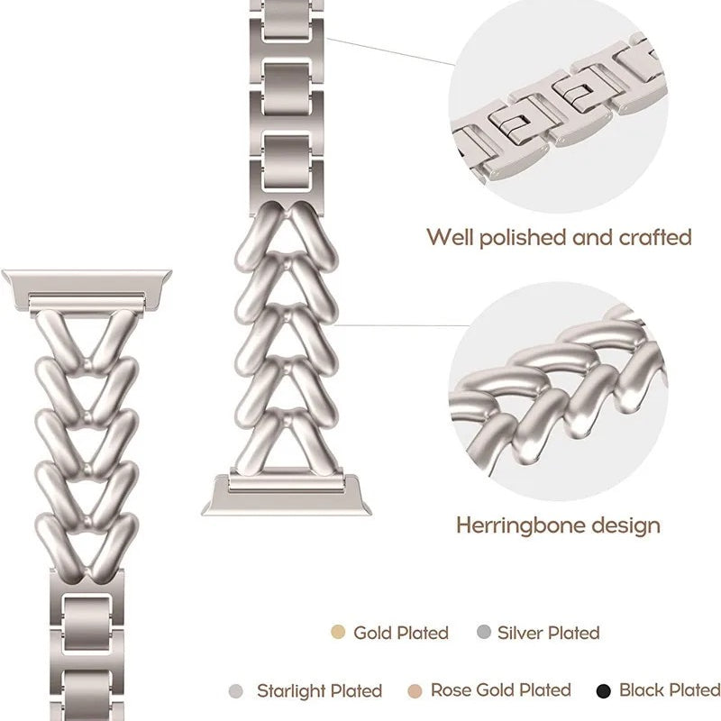Chic Herringbone Chain Link Steel Bracelet Band For Apple Watch Multiple Colors Available