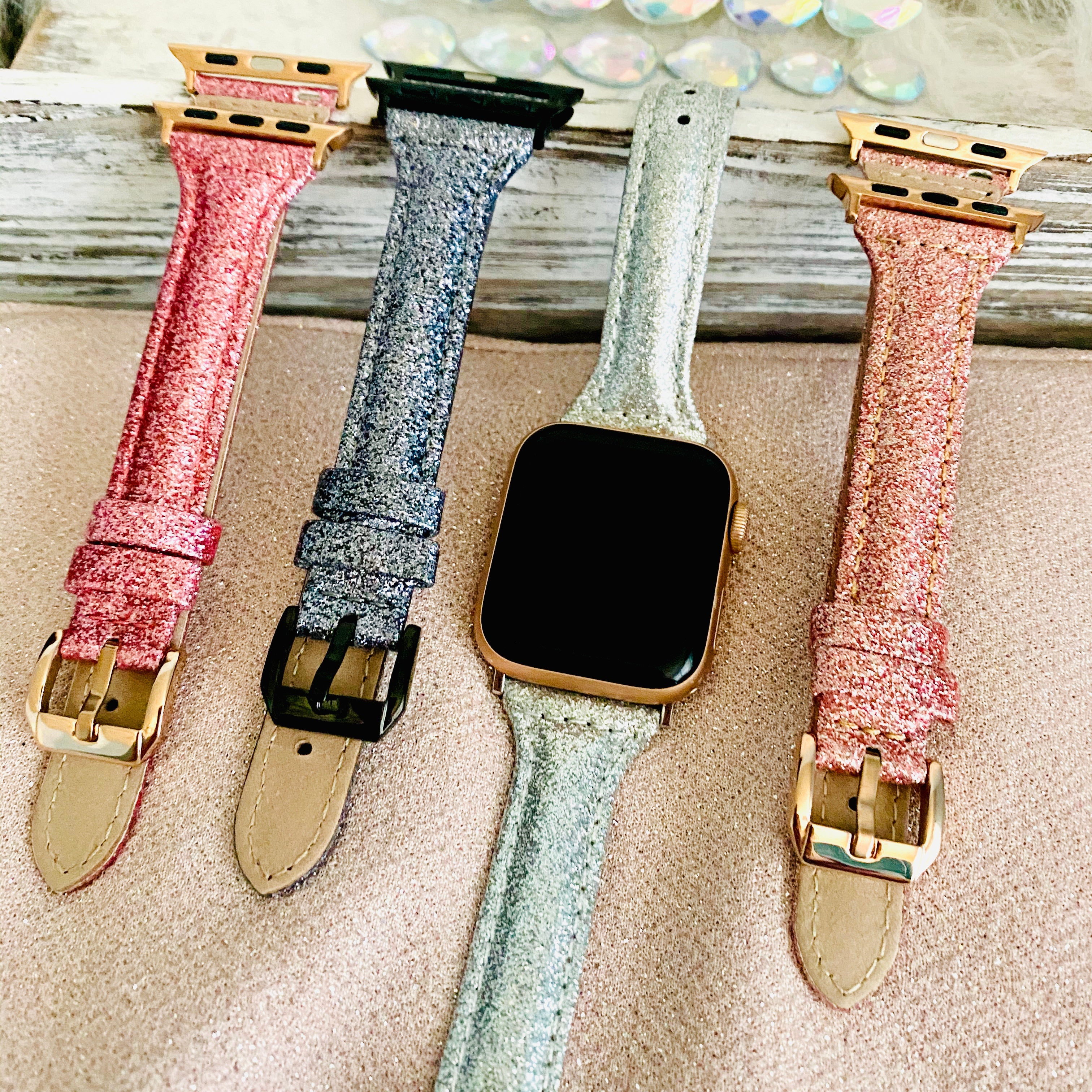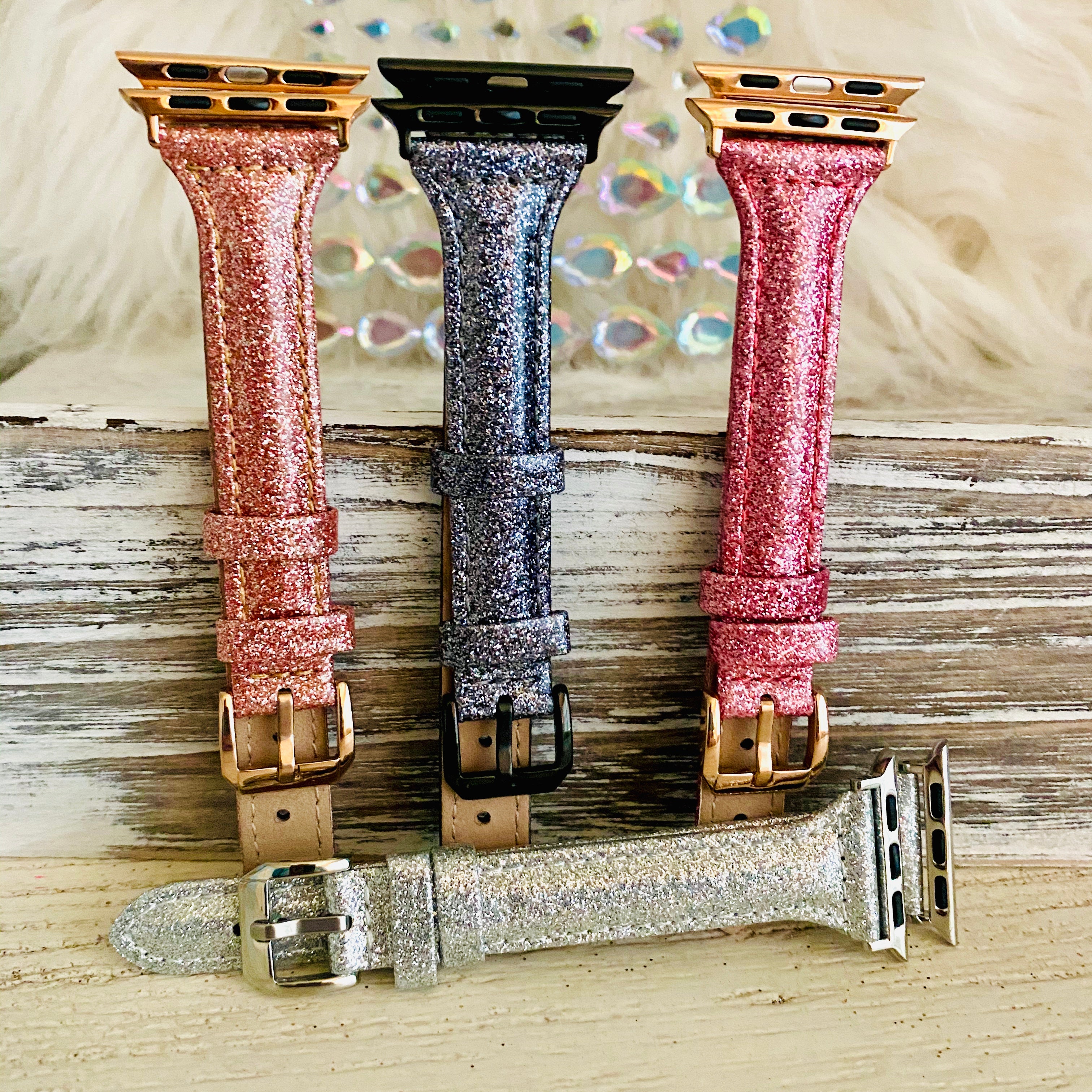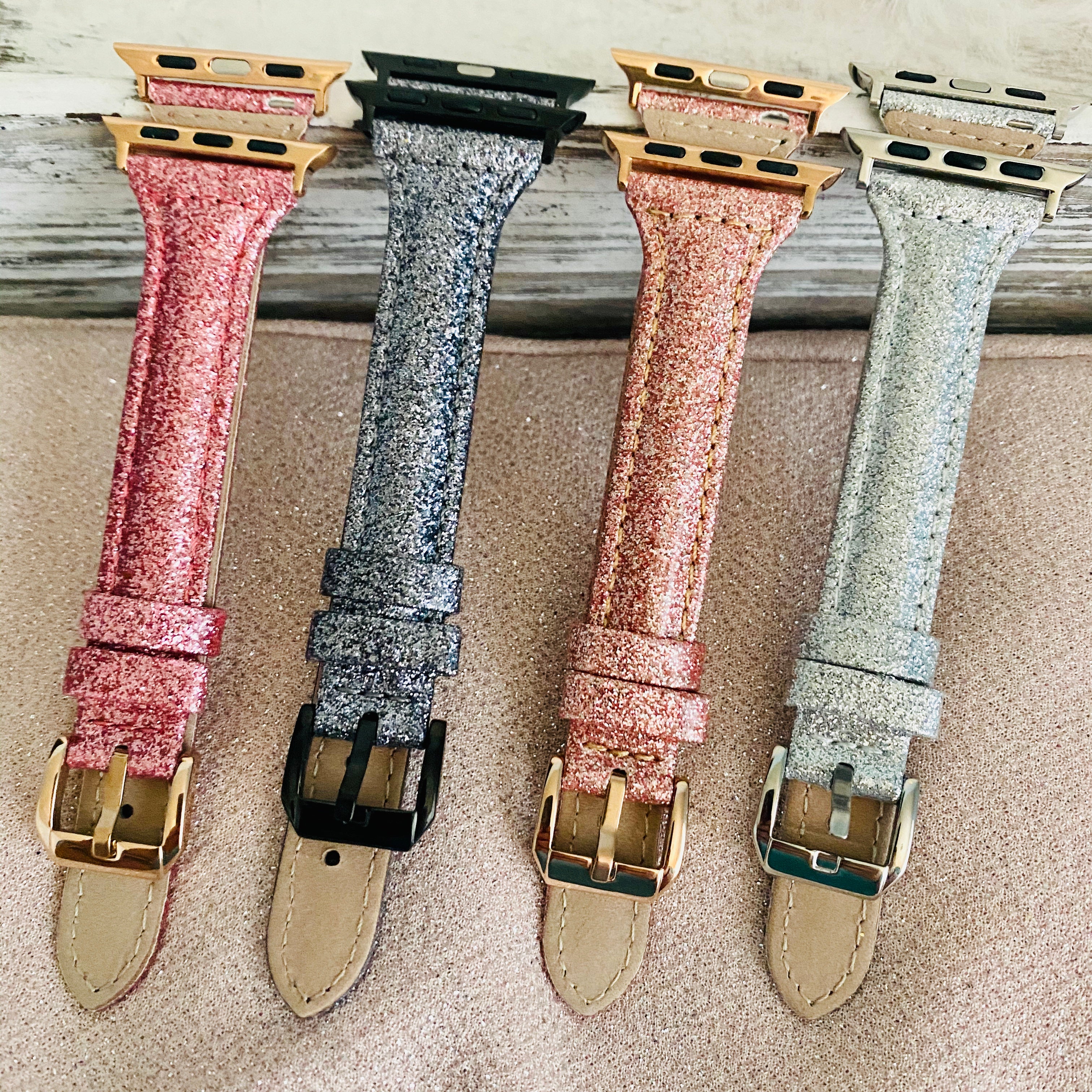 Solid Sparkly Glitter Leather Band For Apple Watch Multiple Colors Available