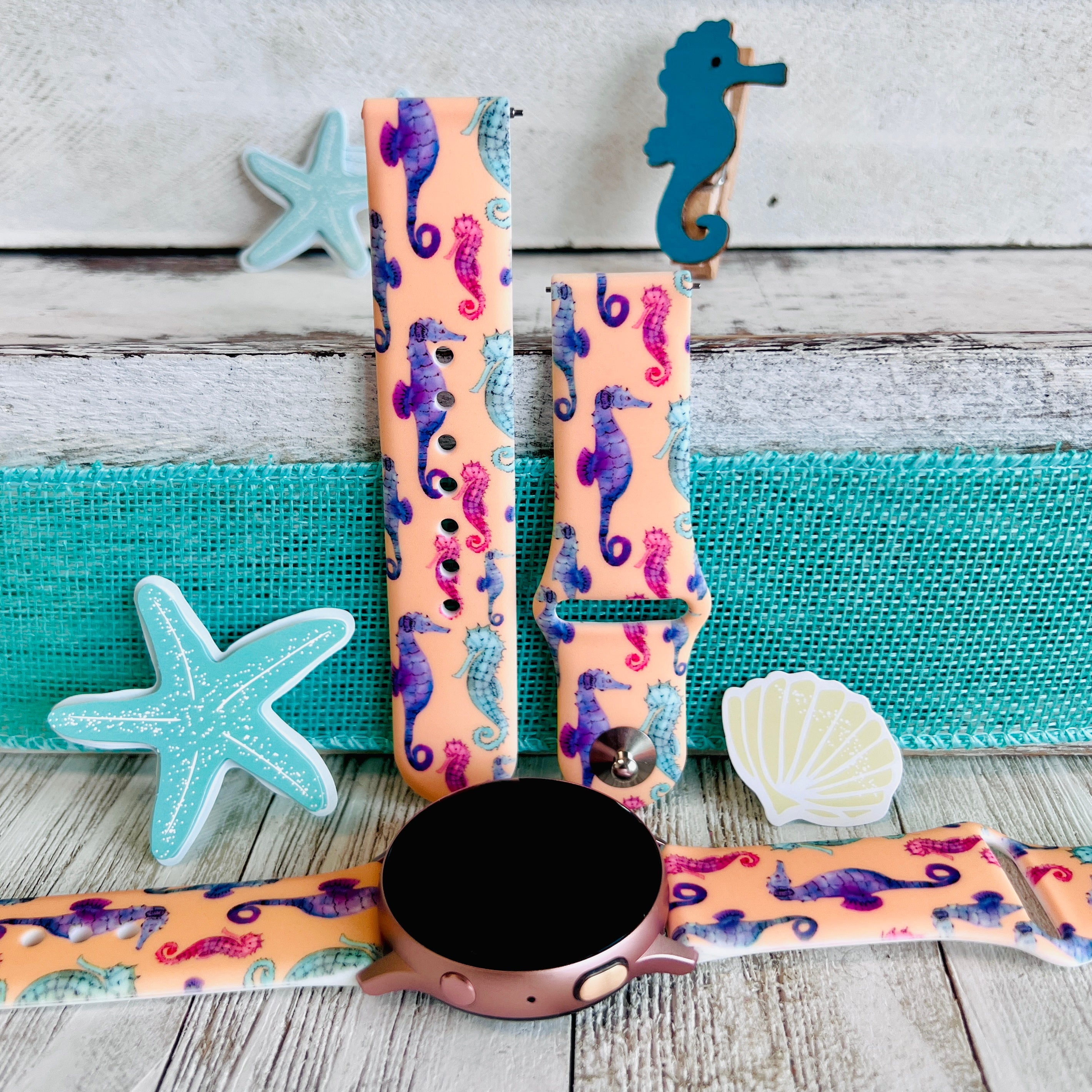 Fancy Seahorses Print Silicone Band For Samsung Watch