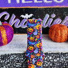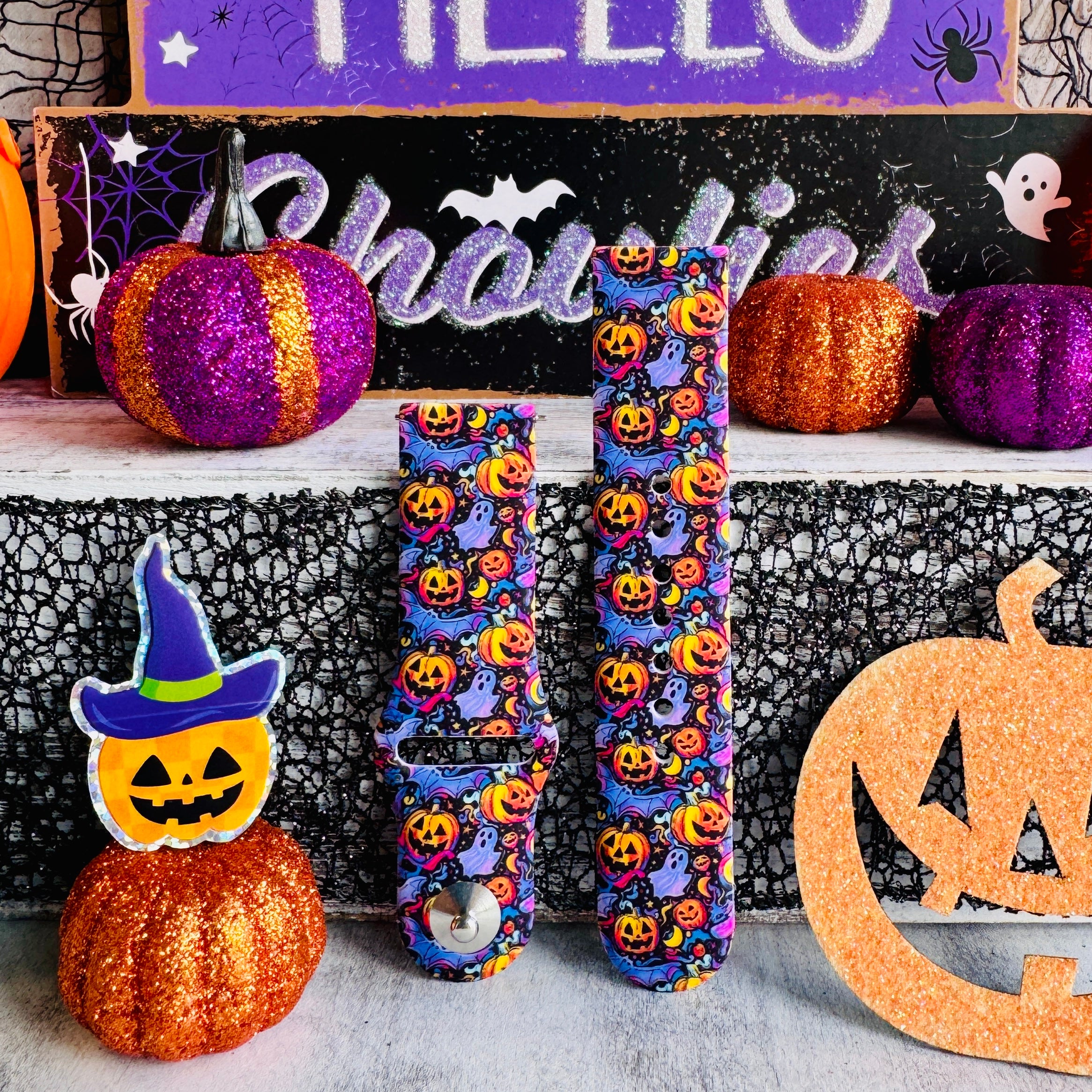 High-energy pumpkin and ghost artwork on soft, washable silicone—photo-ready color with comfy, all-day wear.