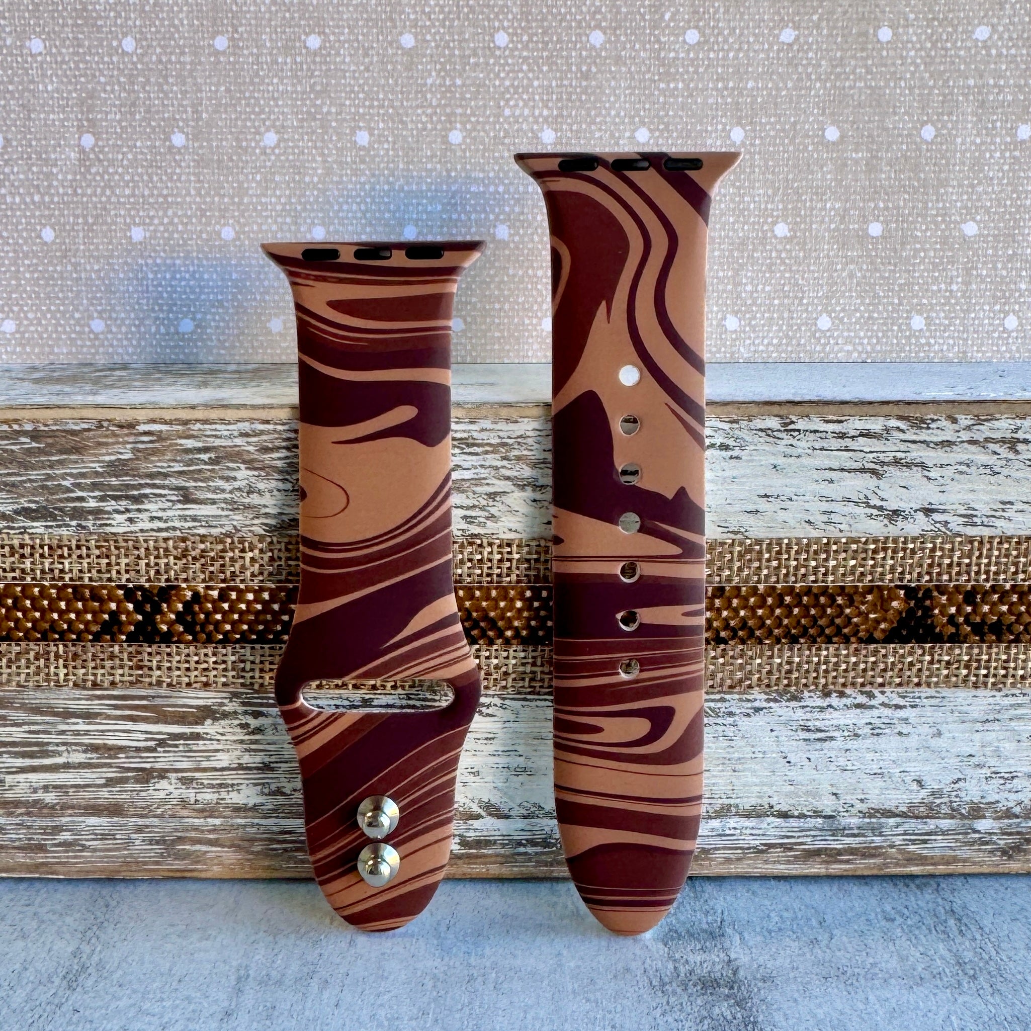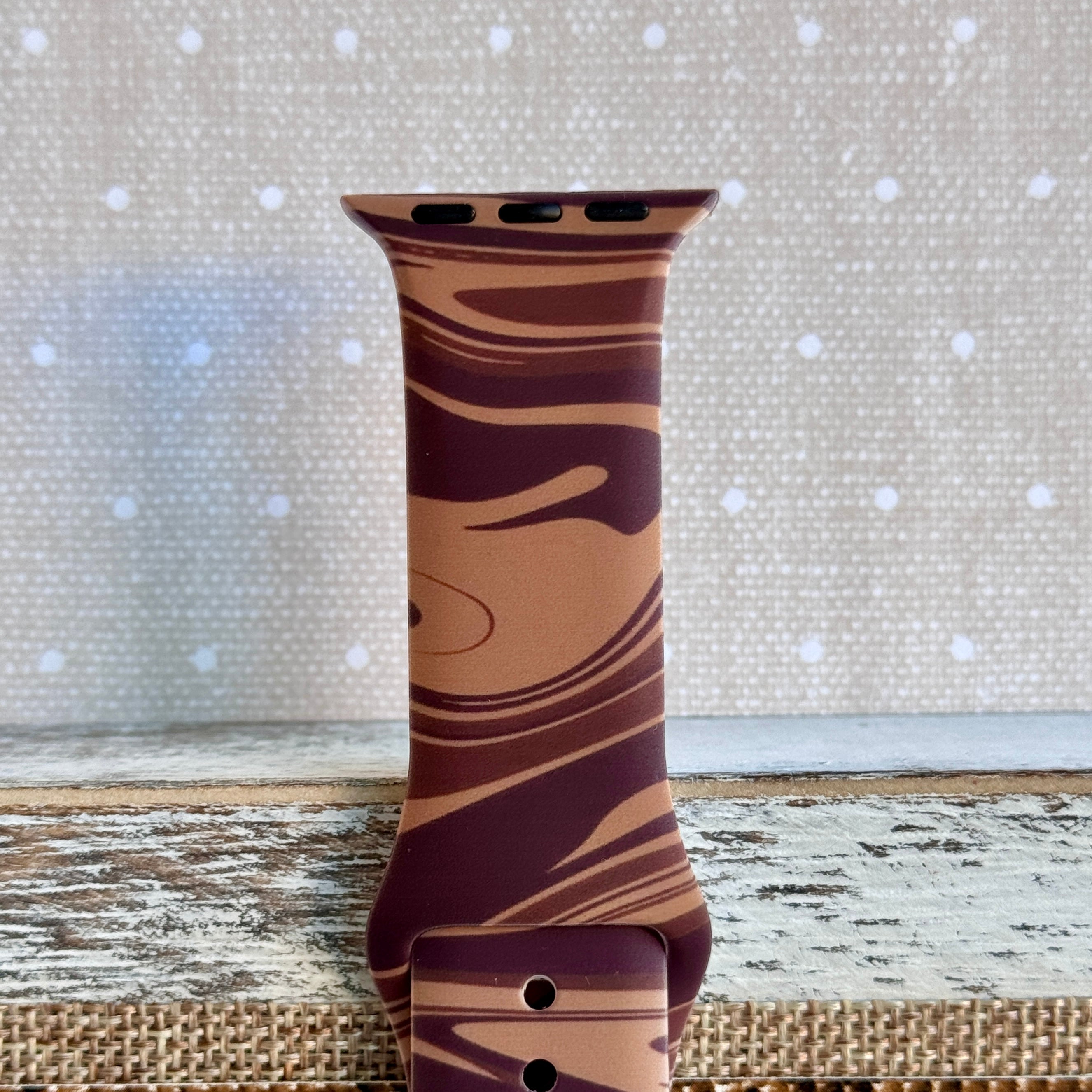 Chocolate Swirl Print Silicone Band For Apple Watch