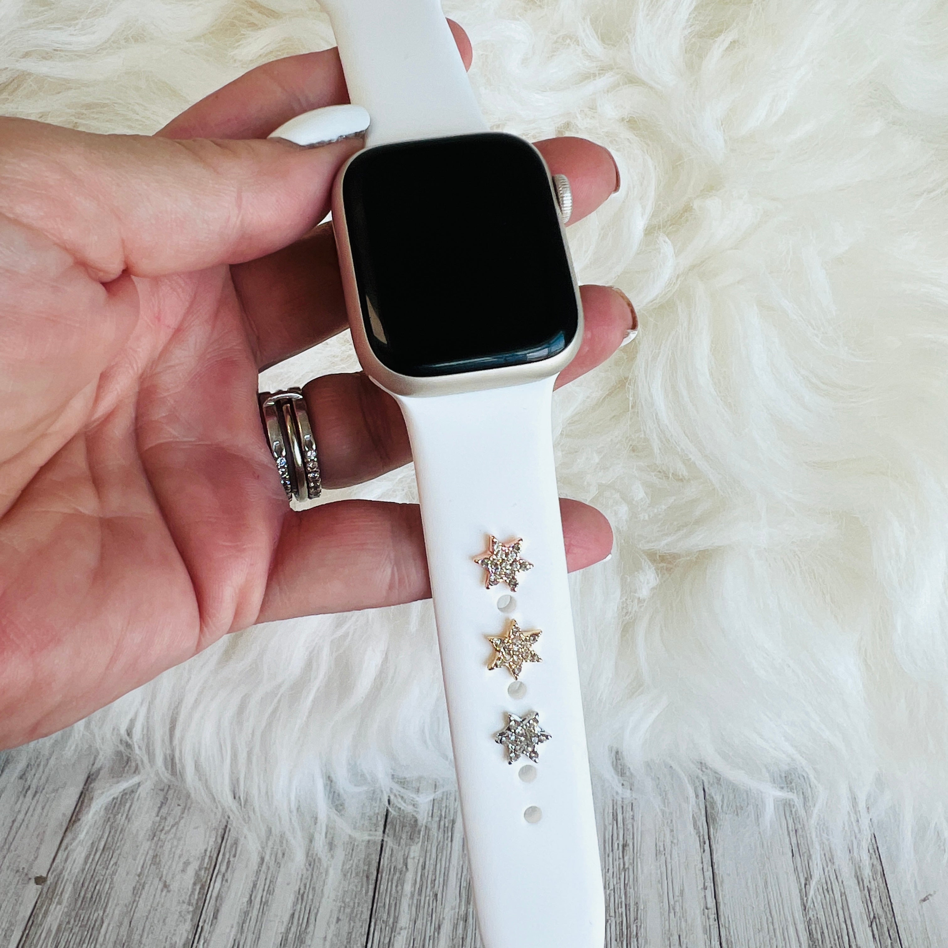 • These super cute watch band accessories are suitable for Most Silicone band/leather bands. Compatible with Apple Watch Silicone Band suitable all Apple series 1-10 & SE, Samsung, & Fitbit Versa.