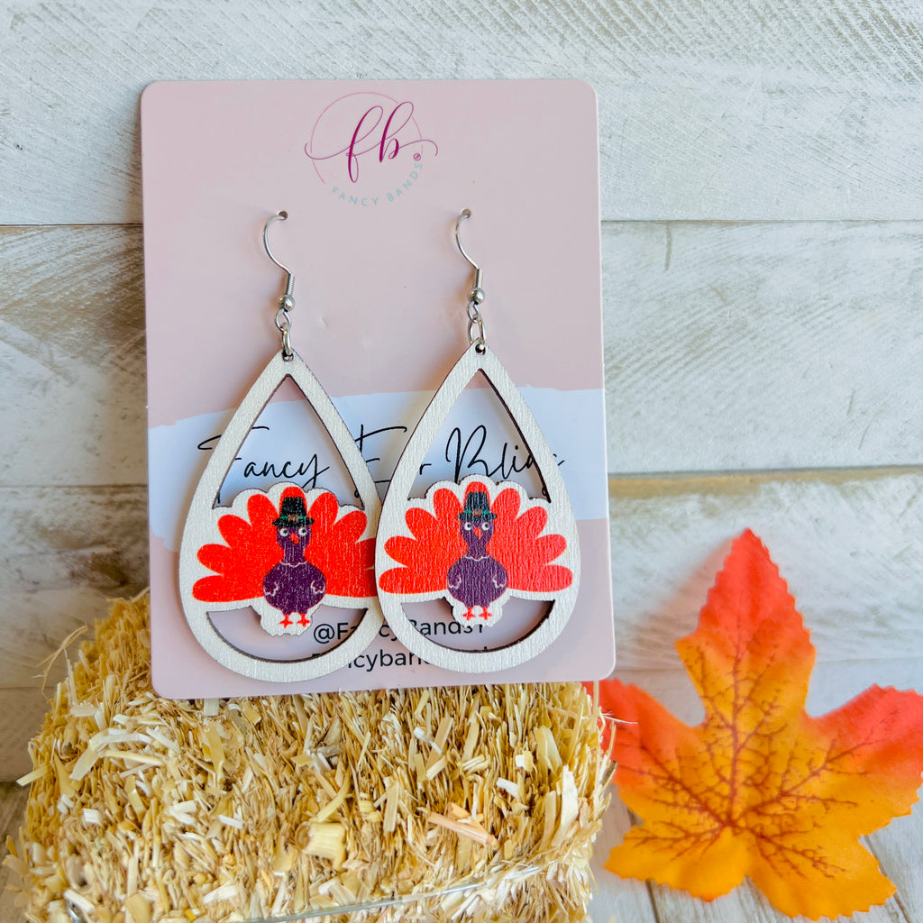 Gobble Glam Fall Turkey Wooden Drop Ear Bling