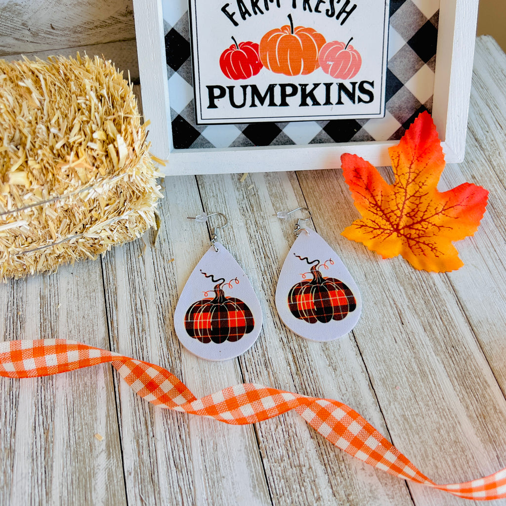 Plaid Pumpkin Faux Leather Drop Ear Bling