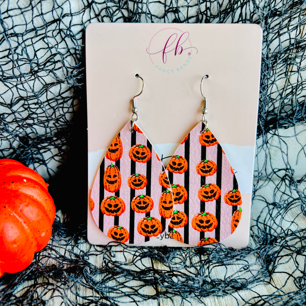 Spooky Halloween Jack-O-Lantern Faux Leather Drop Ear Bling