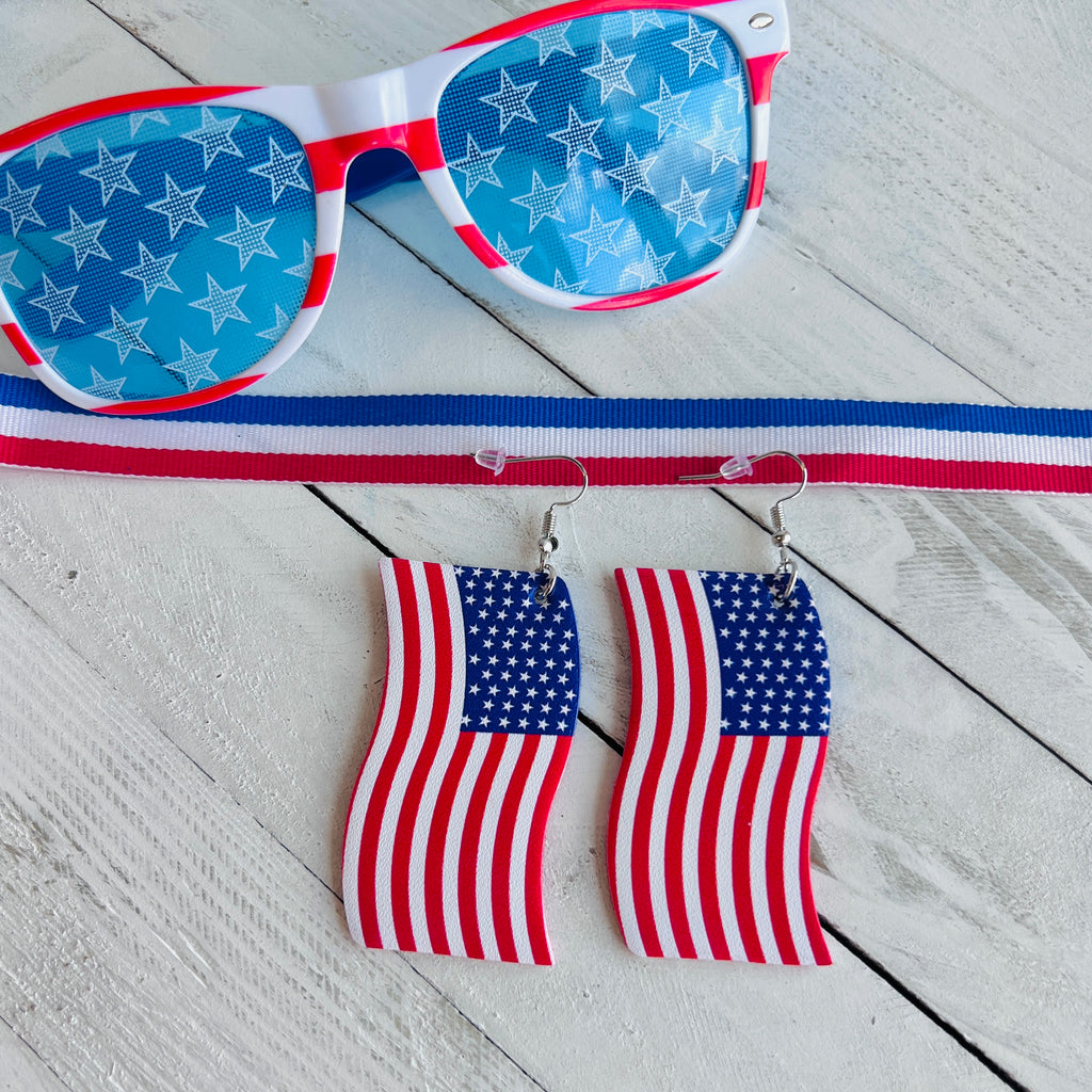 American Flag Faux Leather Teardrop Ear Bling Two Styles Available