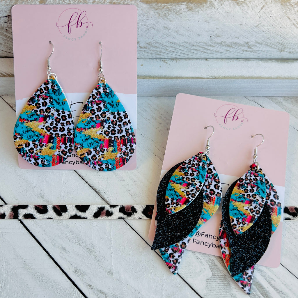 Serape Leopard Faux Leather Teardrop Ear Bling Two Styles Available