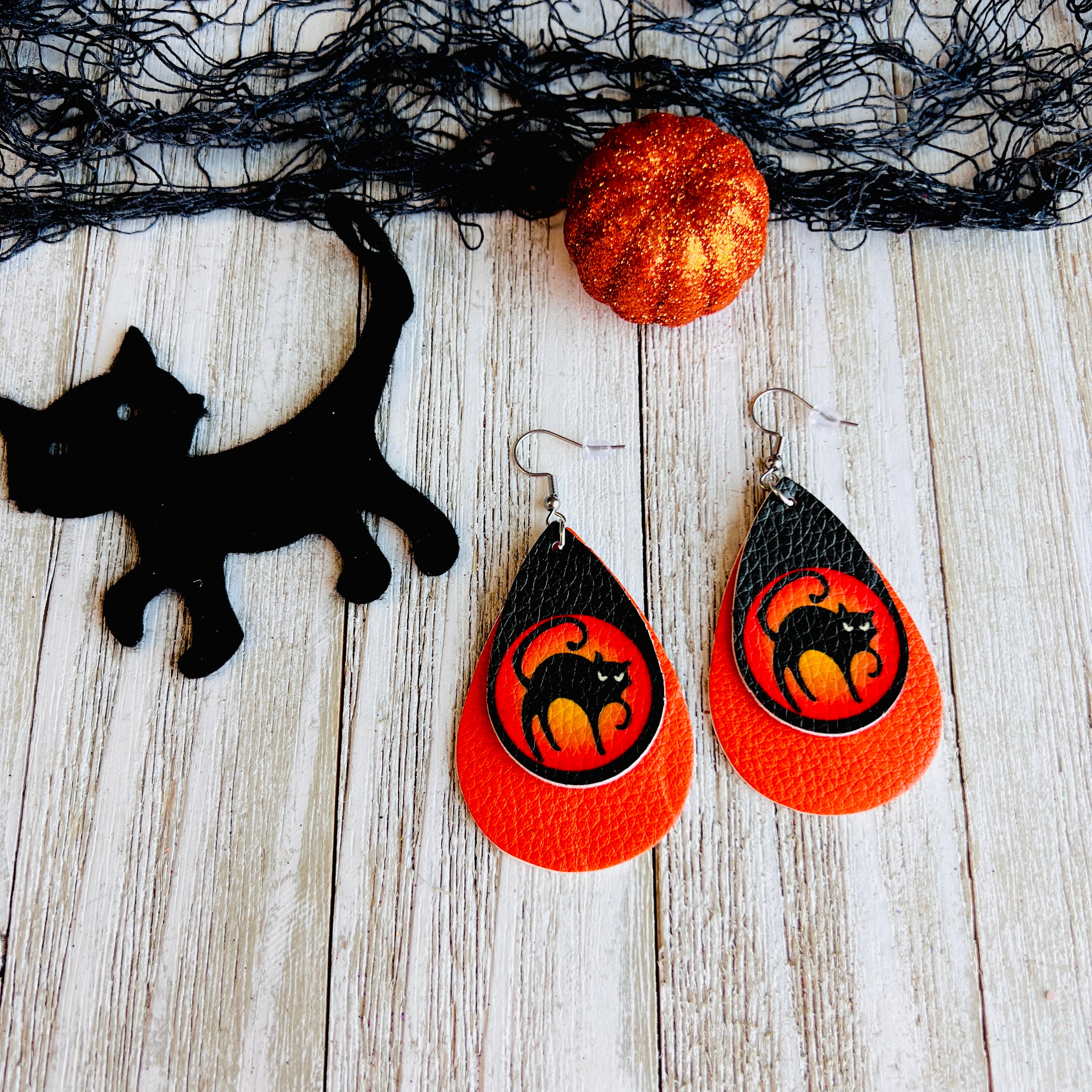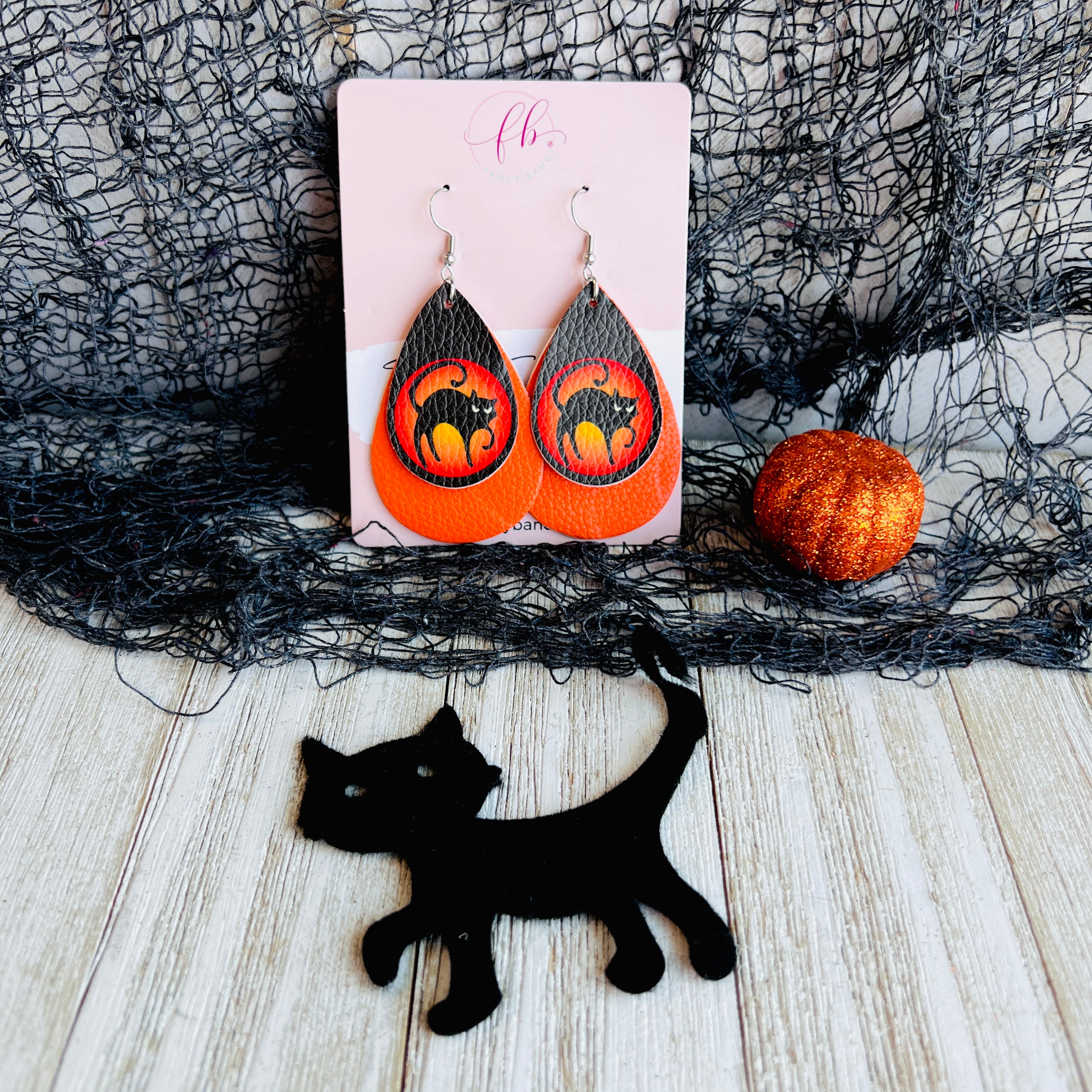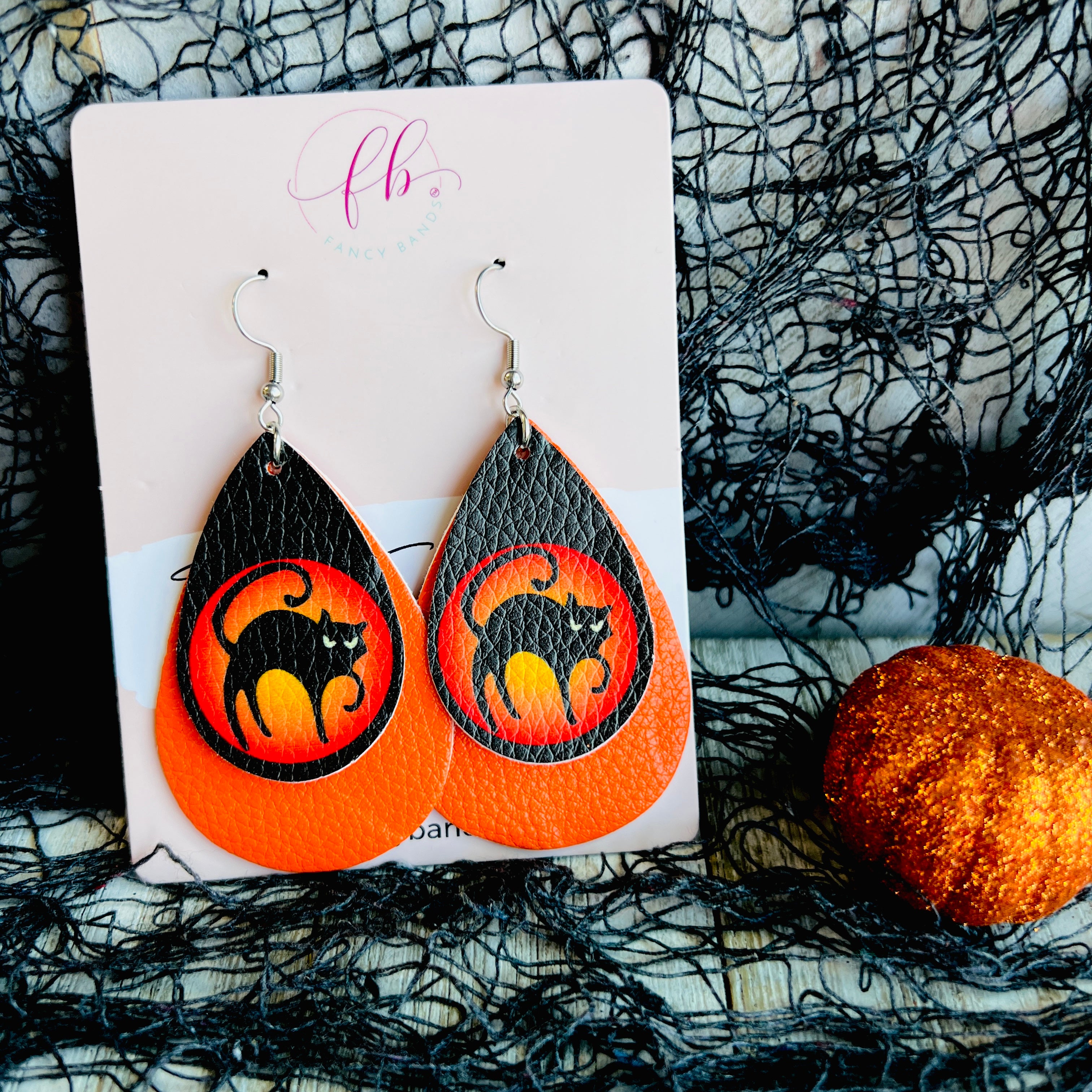 Haunted Kitty Moon Faux Leather Drop Ear Bling
