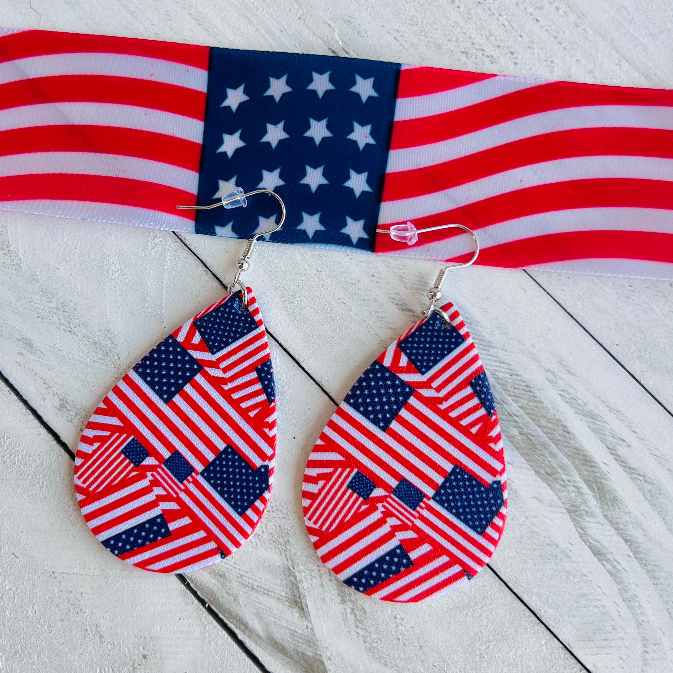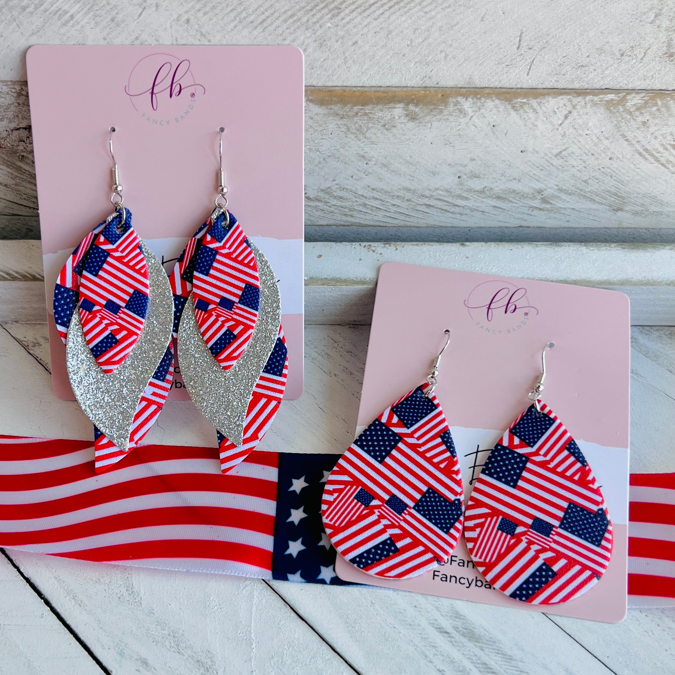 American Flag Faux Leather Teardrop Ear Bling Two Styles Available