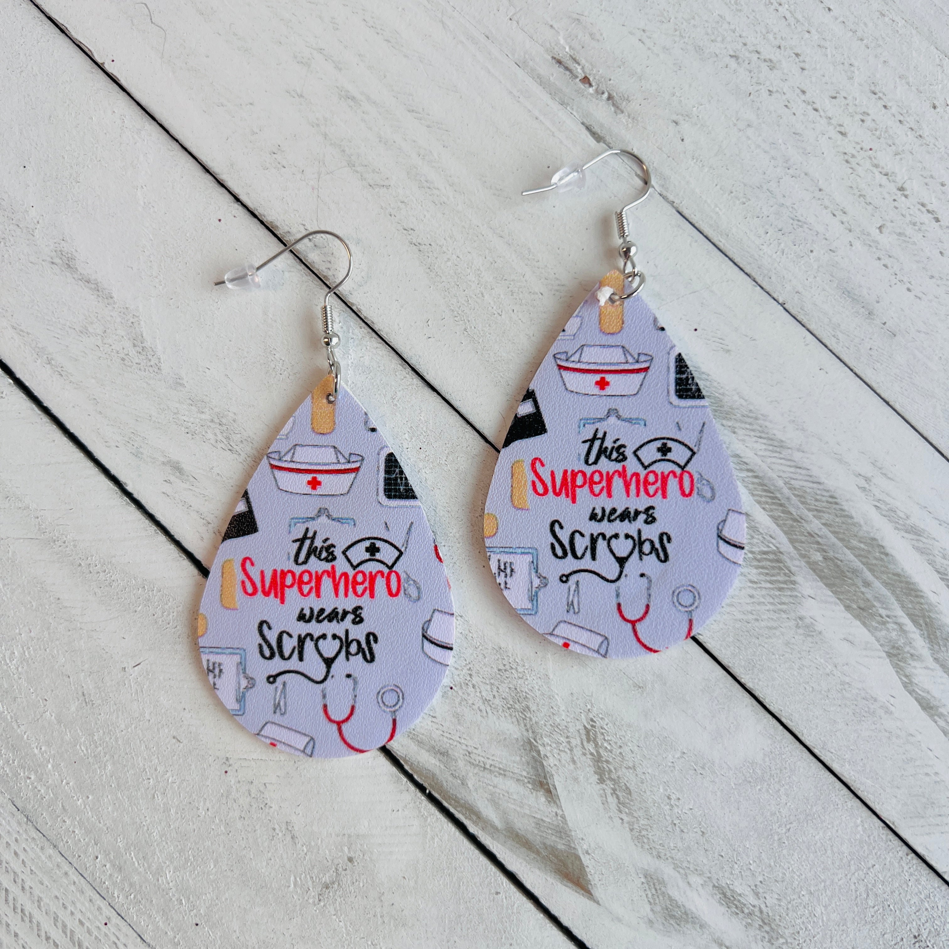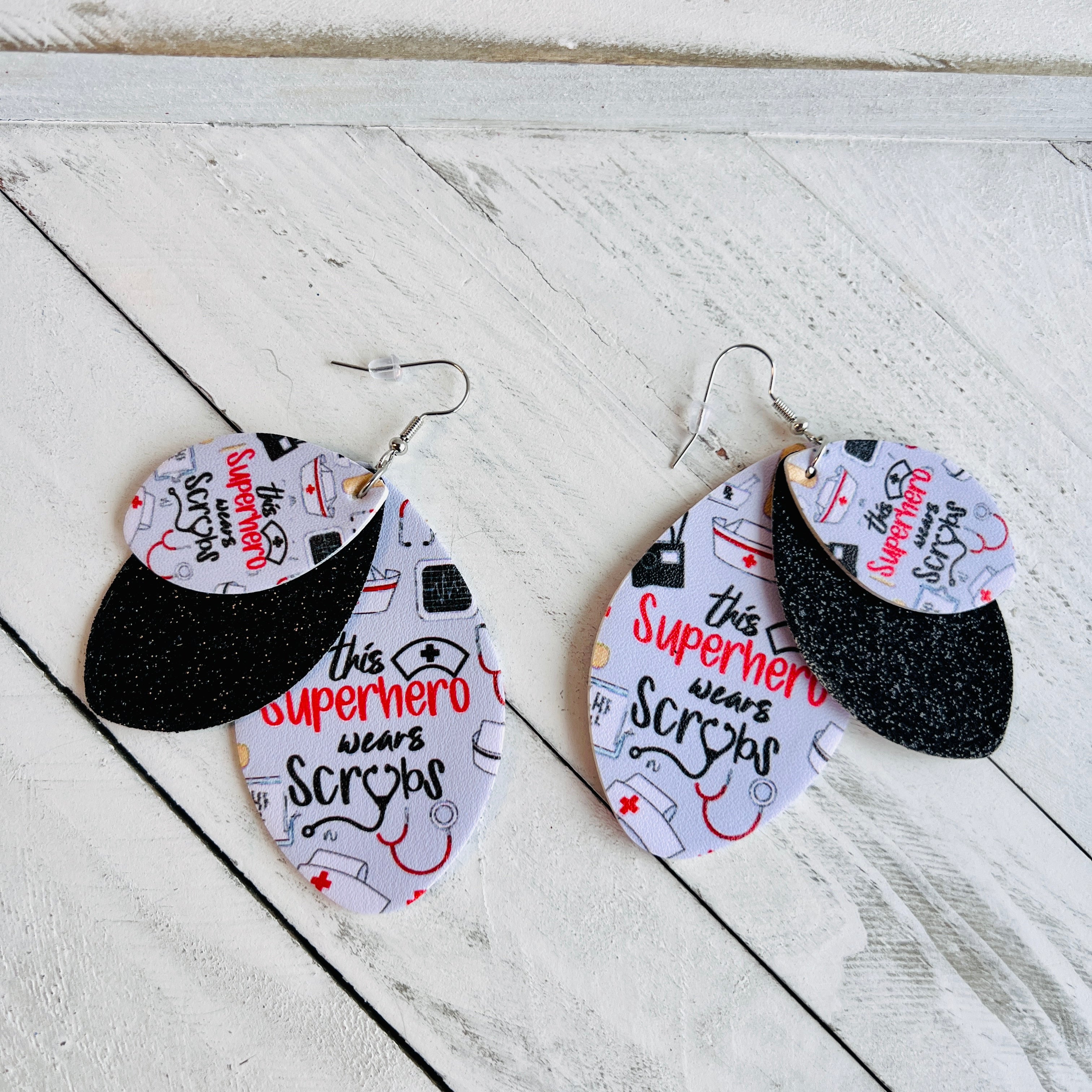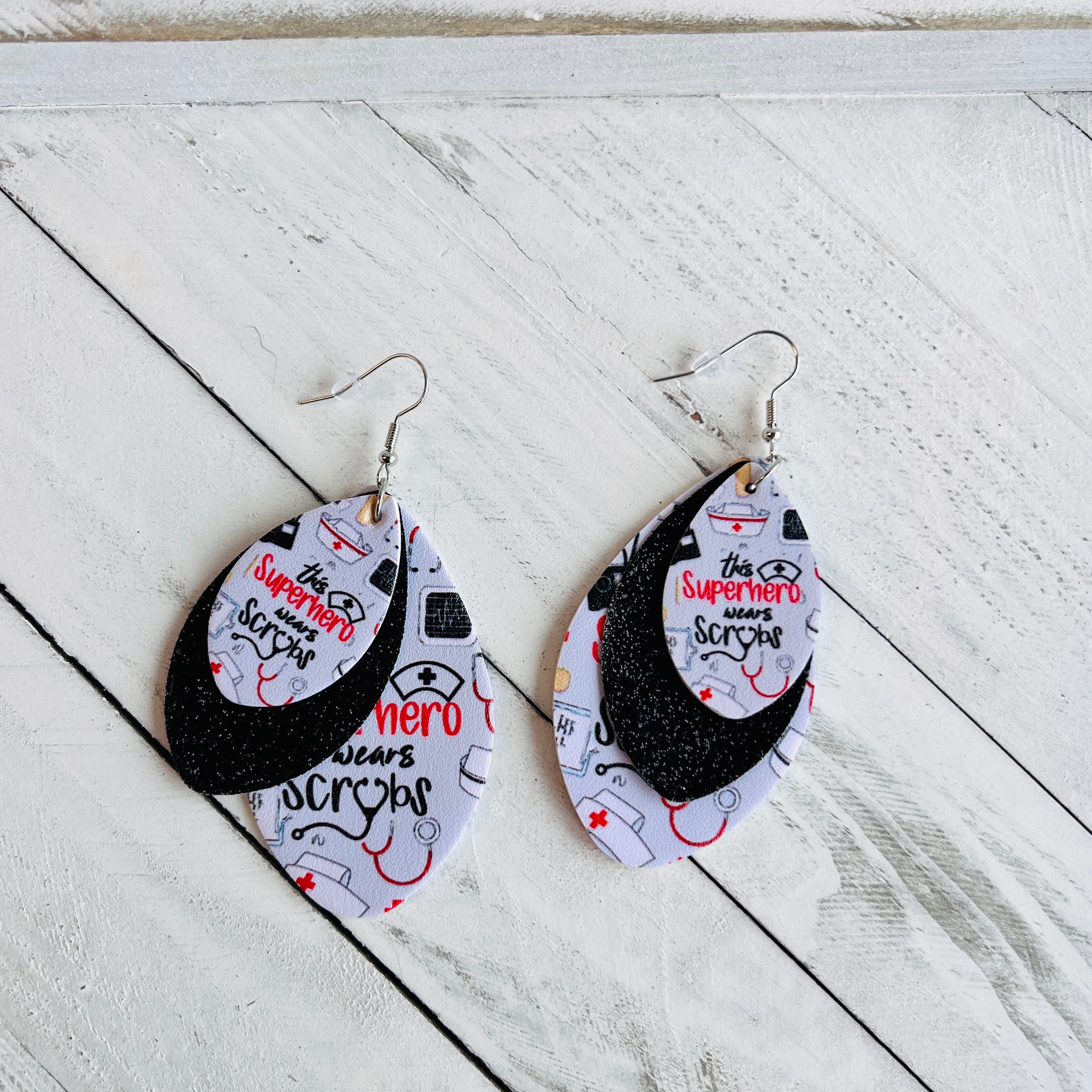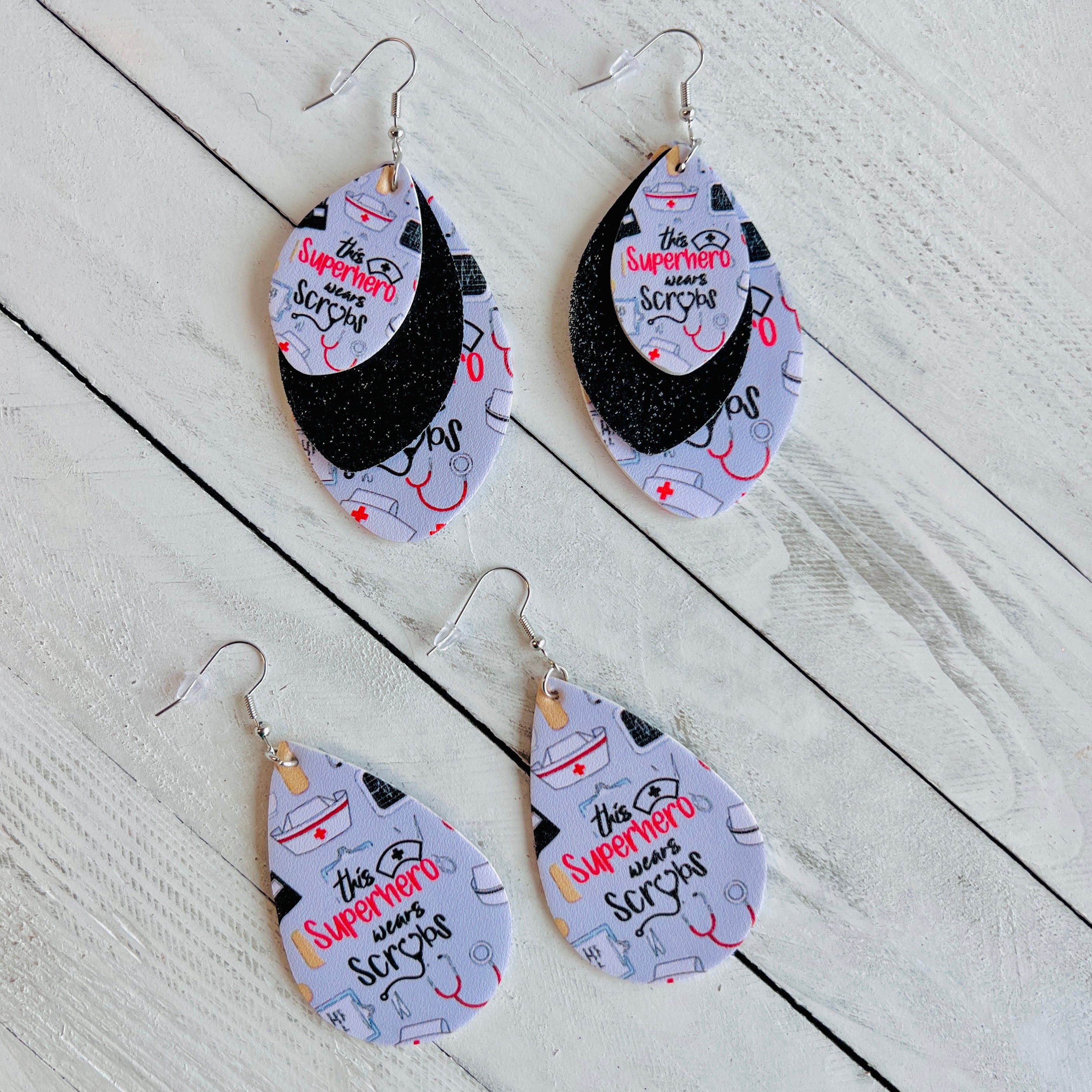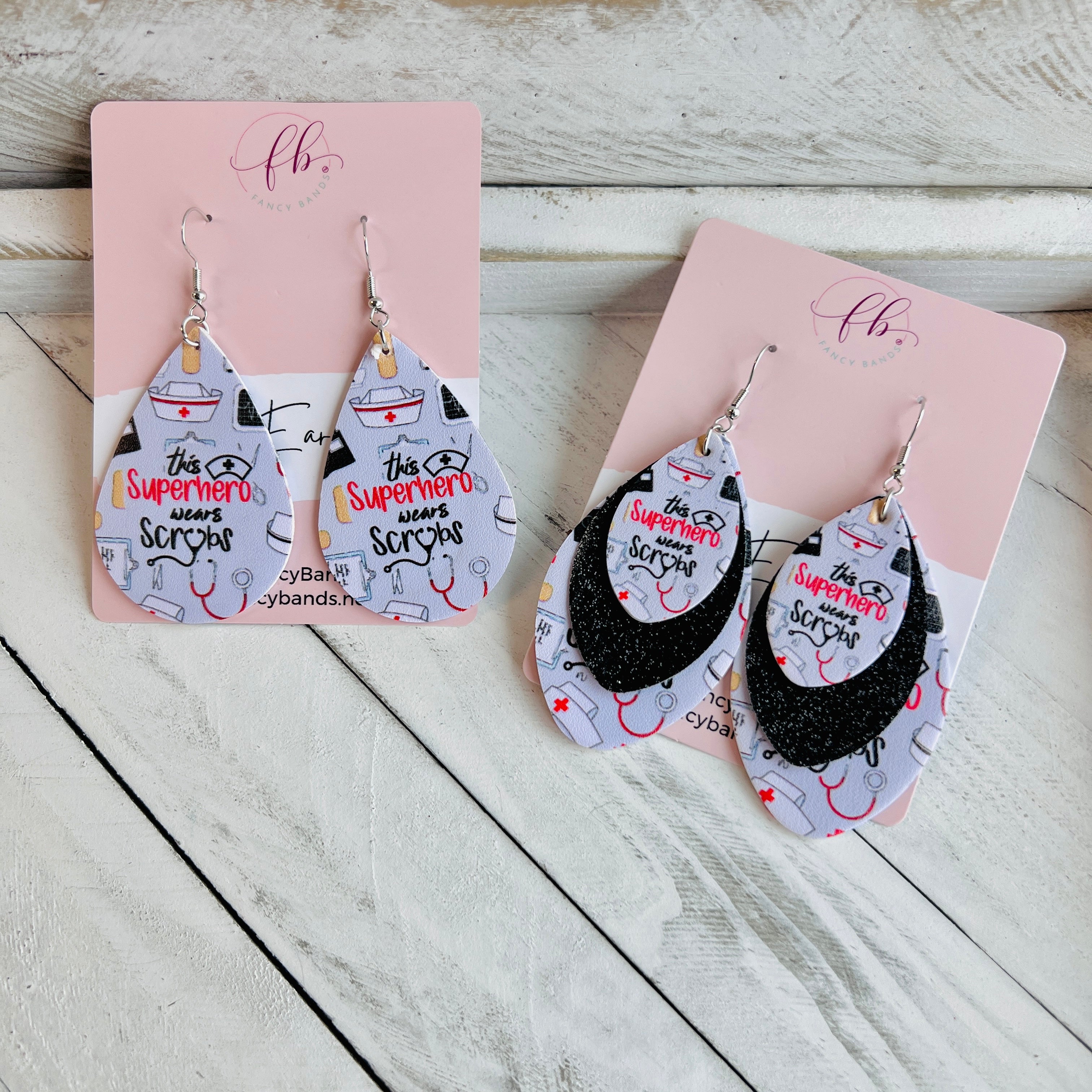 Fancy Scrubs Faux Leather Teardrop Ear Bling Two Styles Available