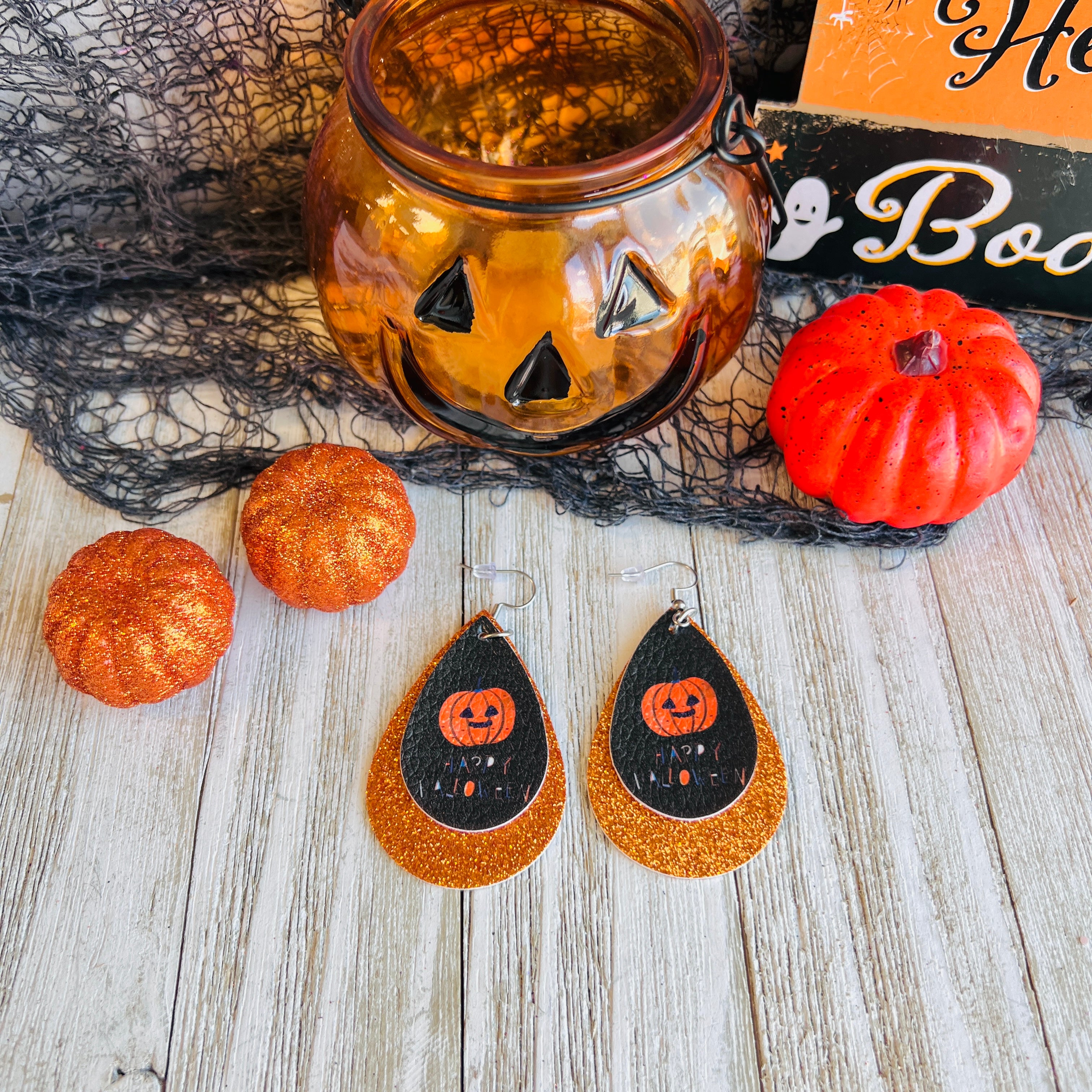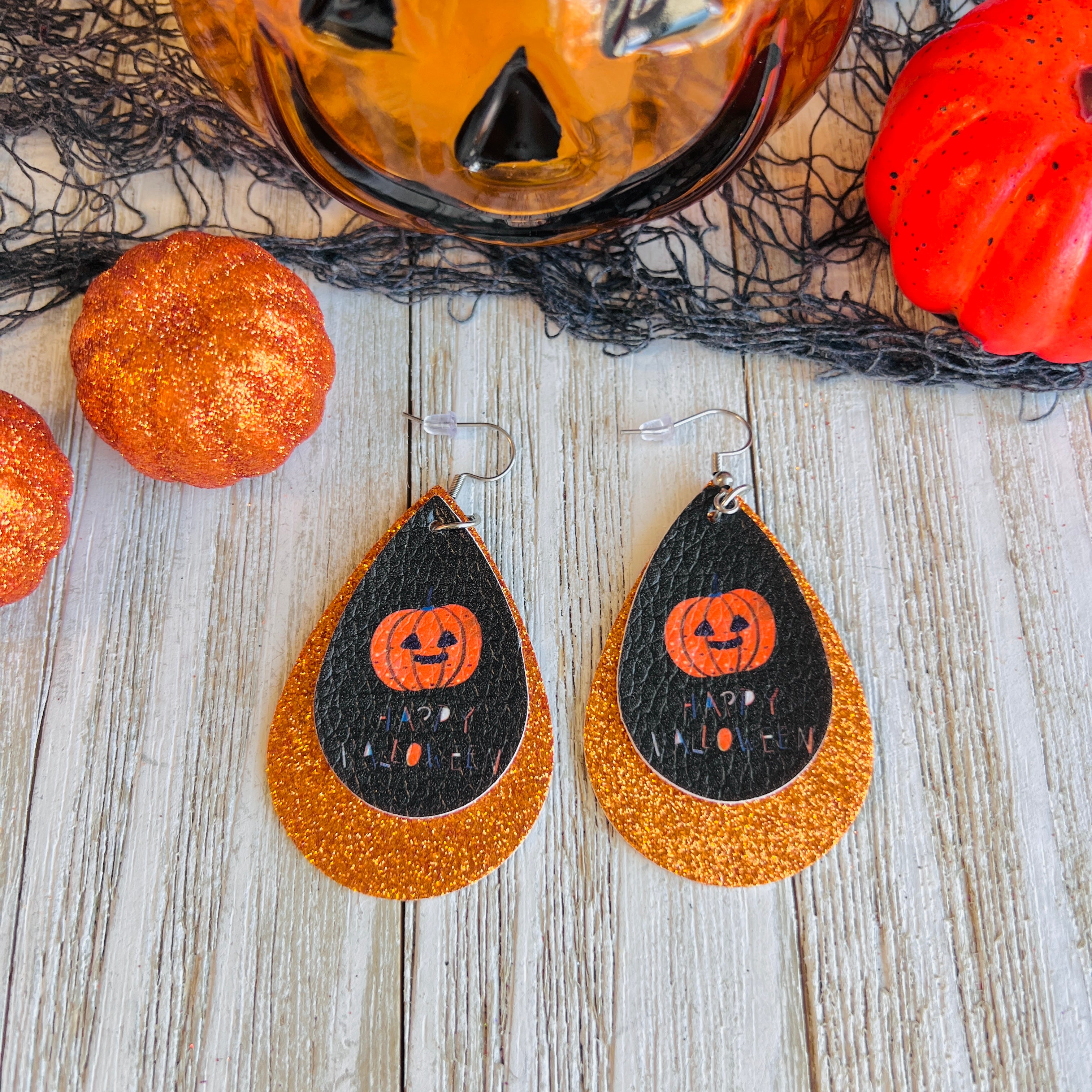 Glittering Pumpkin Faux Leather Drop Ear Bling