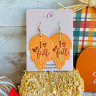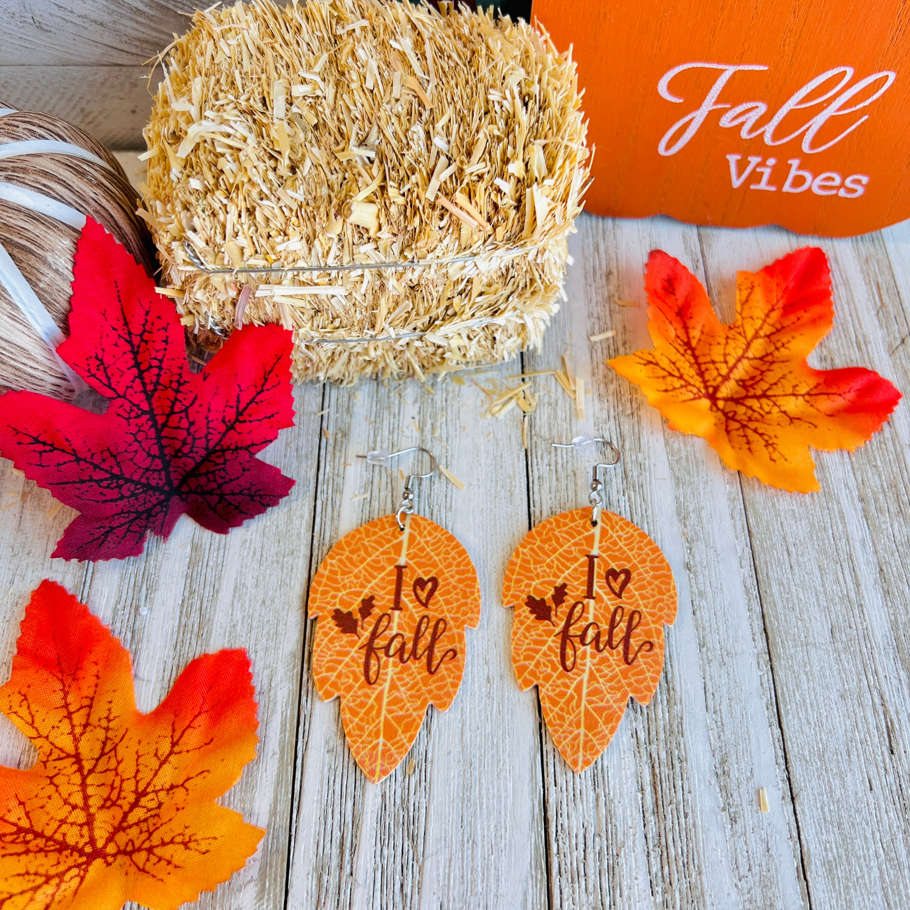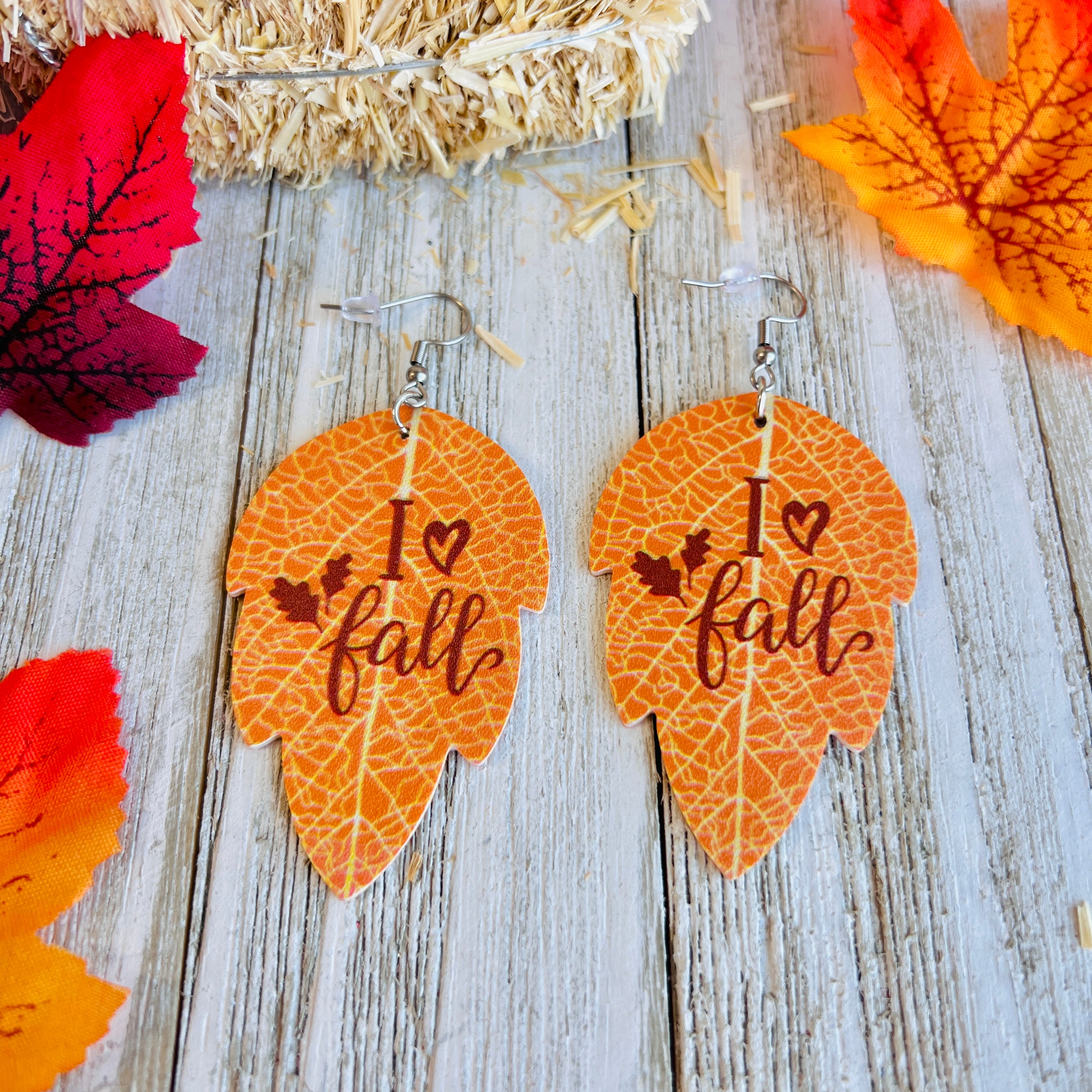 I Love Fall Leaf Shaped Faux Leather Drop Ear Bling