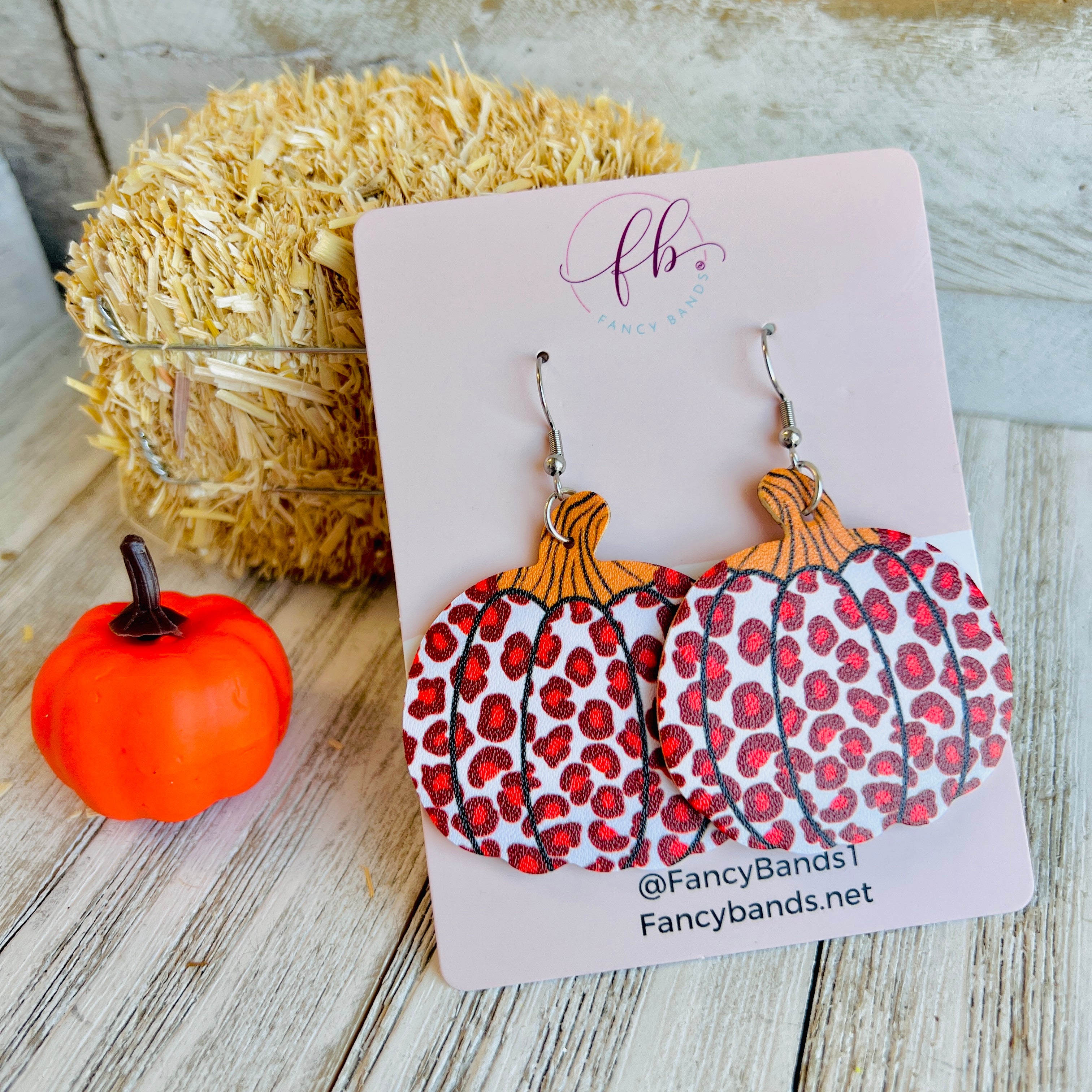 Orange Leopard Pumpkin Shaped Faux Leather Drop Ear Bling