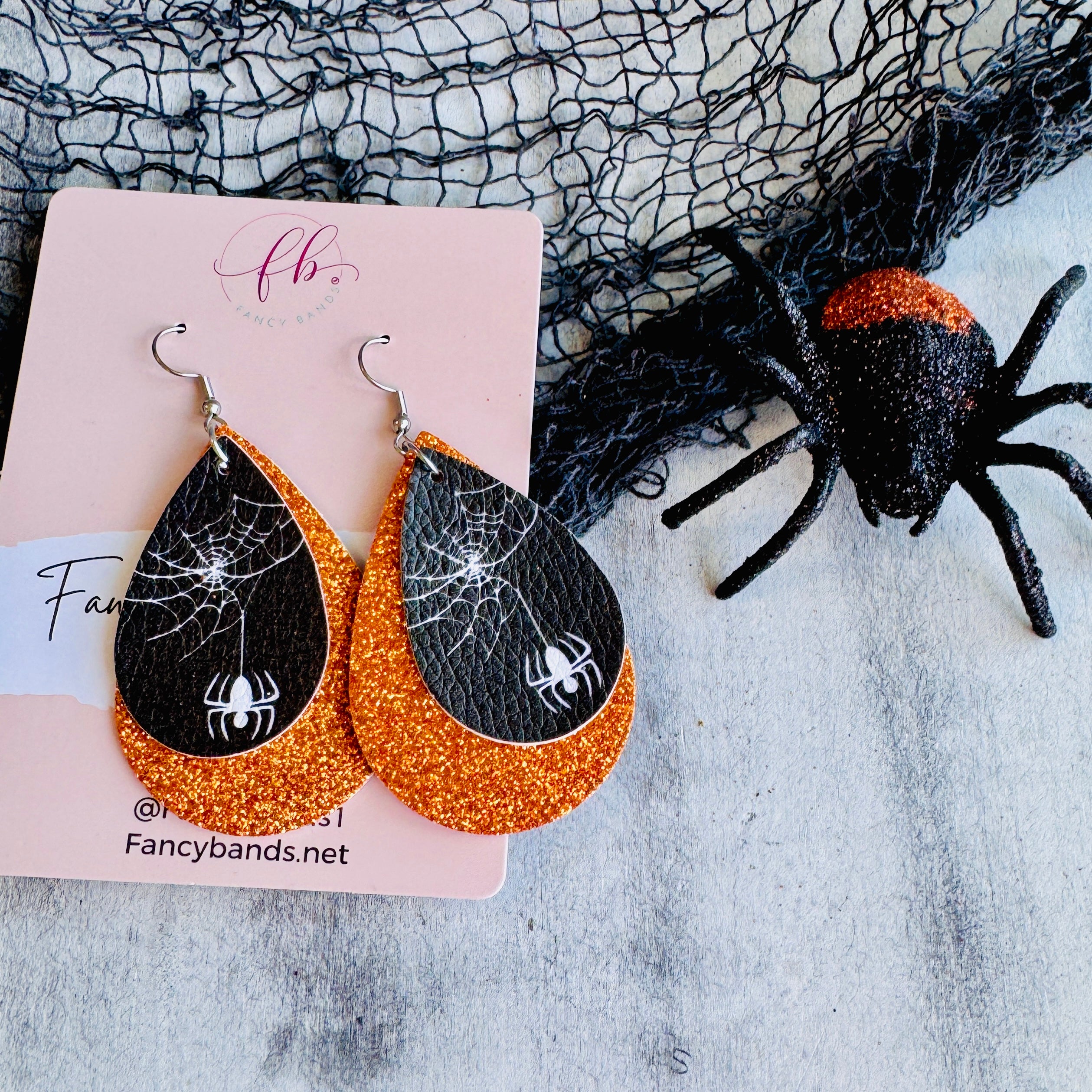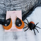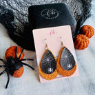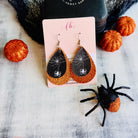 Orange Webbed Sparkle Double Layer Faux Leather Drop Ear Bling