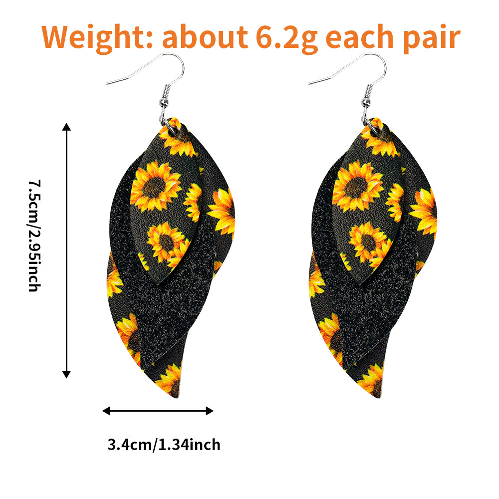 The Triple Layer Faux Leather Drop design showcases three exquisite layers, with a glittery middle insert, measuring 7.5cm/2.9 inches in length and 3.4cm/1.34 inches in width.