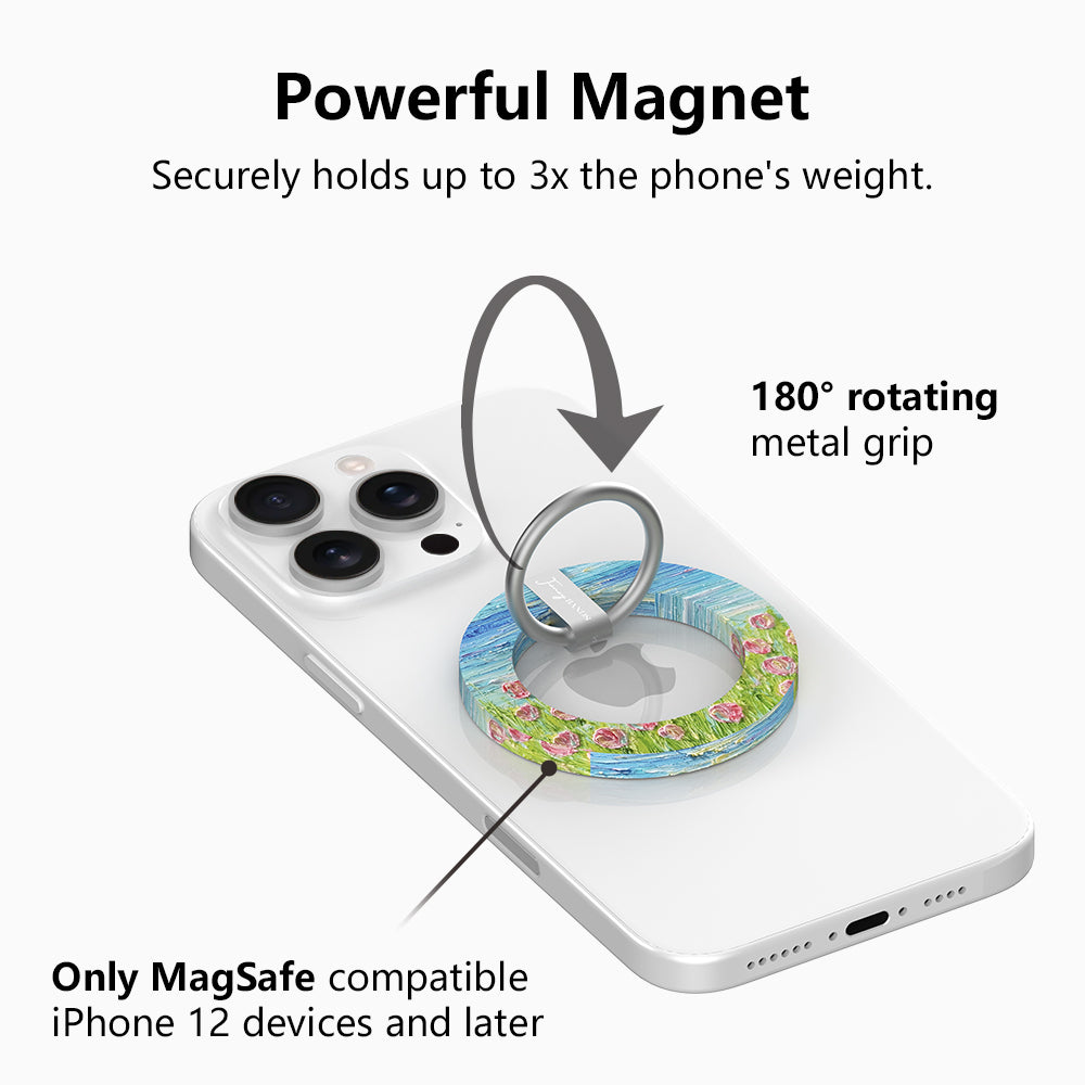 Hold It Fancy – MagSafe Phone Grip RingsSlim, magnetic, and made to match. These MagSafe grip rings snap on for stylish scrolling, selfie gripping, and hands-free everything — all in prints as fancy as your case.