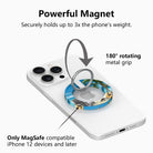 Please Handle With Care: While this MagSafe grip ring provides a secure magnetic connection, the magnetic hold is designed for accessory attachment and stability – NOT to support your phone's full weight without hand support.