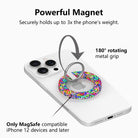 Please Handle With Care: While this MagSafe grip ring provides a secure magnetic connection, the magnetic hold is designed for accessory attachment and stability – NOT to support your phone's full weight without hand support.