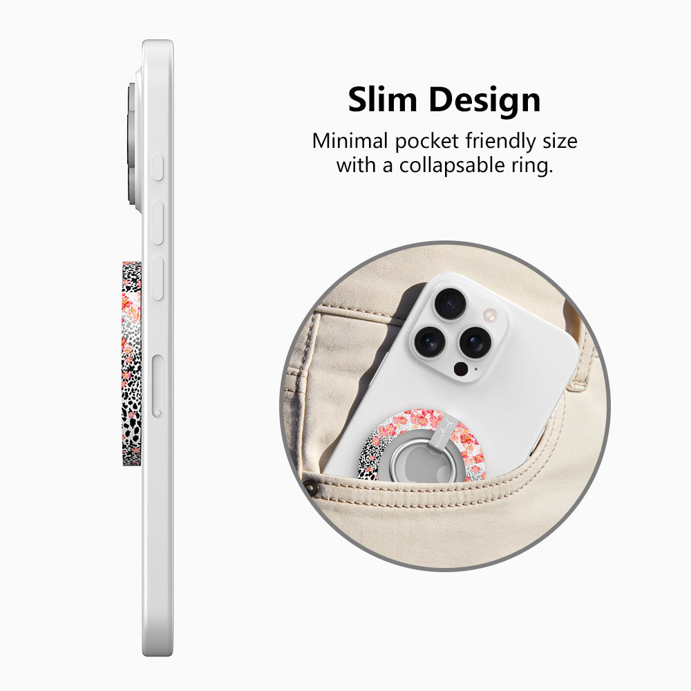 Whether you love mixing patterns, appreciate a bold animal print, or want an accessory that feels like a party for your phone, the Flower-fetti Leopard MagSafe ring grip provides the security and convenience you need. The striking combination of leopard spots and floral "confetti" turns your device into a total conversation starter.