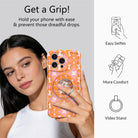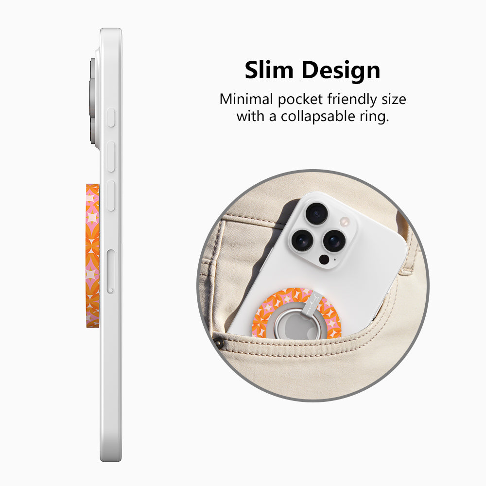 Channel your inner Upper East Side icon with the "Gossip Girl Retro Edition" Hold It Fancy MagSafe Grip Ring. Featuring a stunning 70s-inspired geometric pattern of interlocking circles and starbursts in vibrant orange and soft pink, this accessory brings a bold, vintage-chic vibe to any MagSafe-enabled device. While it makes a sophisticated statement on its own, it is designed to pair perfectly with our matching Fancy phone case for a flawless, coordinated look.