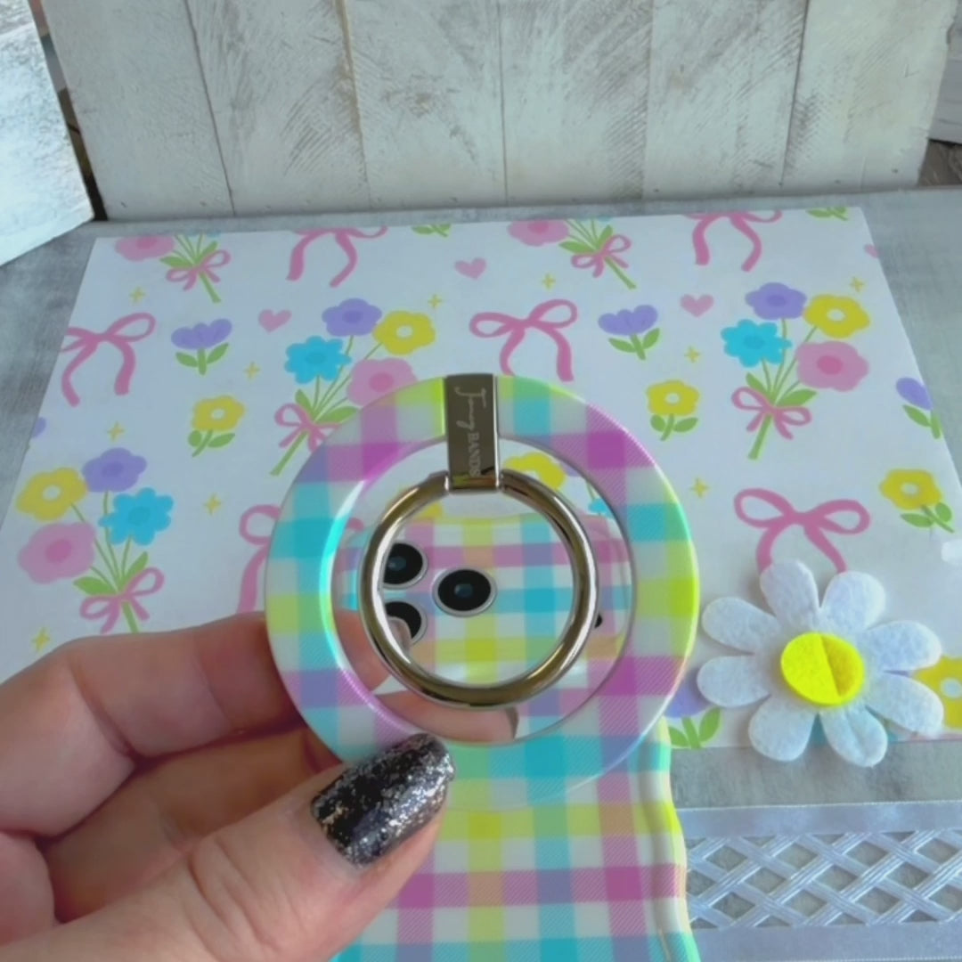 If you love bright pastels, classic gingham, and accessories that make your everyday feel more fun, the Pastel Gingham MagSafe ring grip is your new go-to. It’s equal parts practical and adorable—secure in your hand, comfy to hold, and a total conversation starter wherever you go.