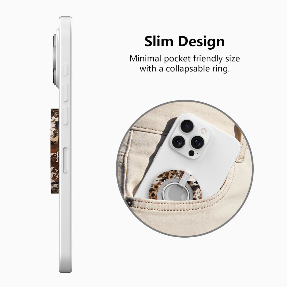Whether you are a cowgirl at heart, love the western fashion trend, or simply appreciate a classic rustic aesthetic, the Rodeo Wild MagSafe ring grip gives you the security and confidence you need. The earthy tones and bold pattern turn your phone into a frontier-ready accessory.