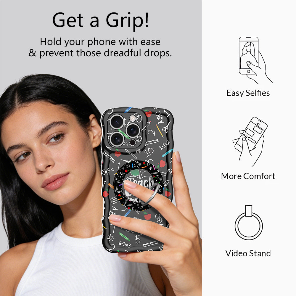 - 🔄 180° Rotating Ring – Effortlessly adjust your grip angle for maximum comfort while grading on the go or snapping classroom memories.