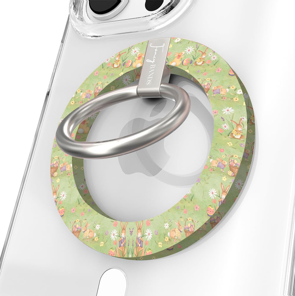 Hop into spring with the "Vintage Easter" Hold It Fancy MagSafe Grip Ring. Featuring a charming watercolor-style pattern of sweet bunnies, woven flower baskets, and decorated Easter eggs scattered across a soft sage green background, this accessory brings a nostalgic, storybook vibe to any MagSafe-enabled device. While it adds a touch of seasonal magic on its own, it is designed to pair perfectly with our matching Fancy phone case for a flawless, coordinated look.