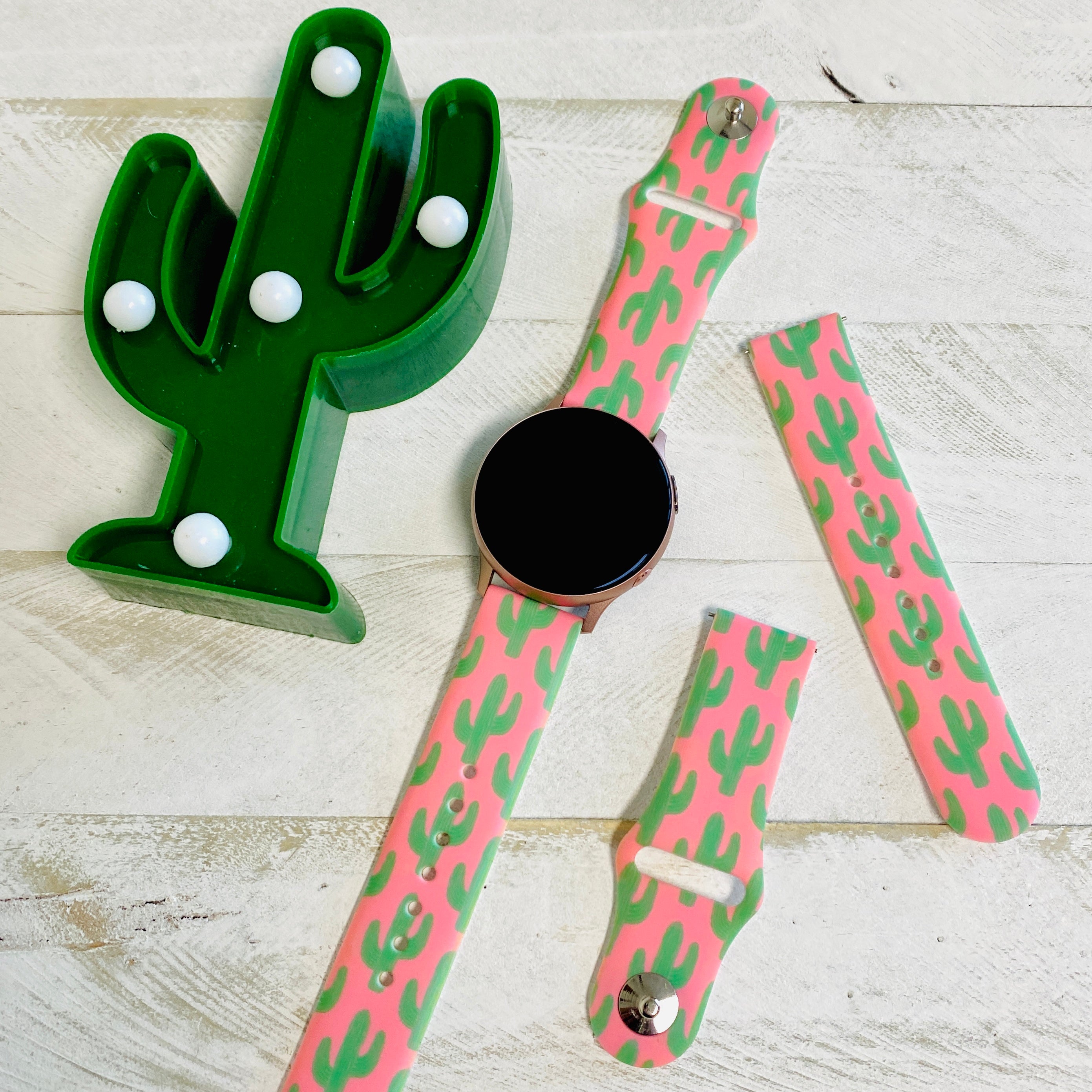 Pretty In Pink Cactus Print Silicone Band For Samsung Watch