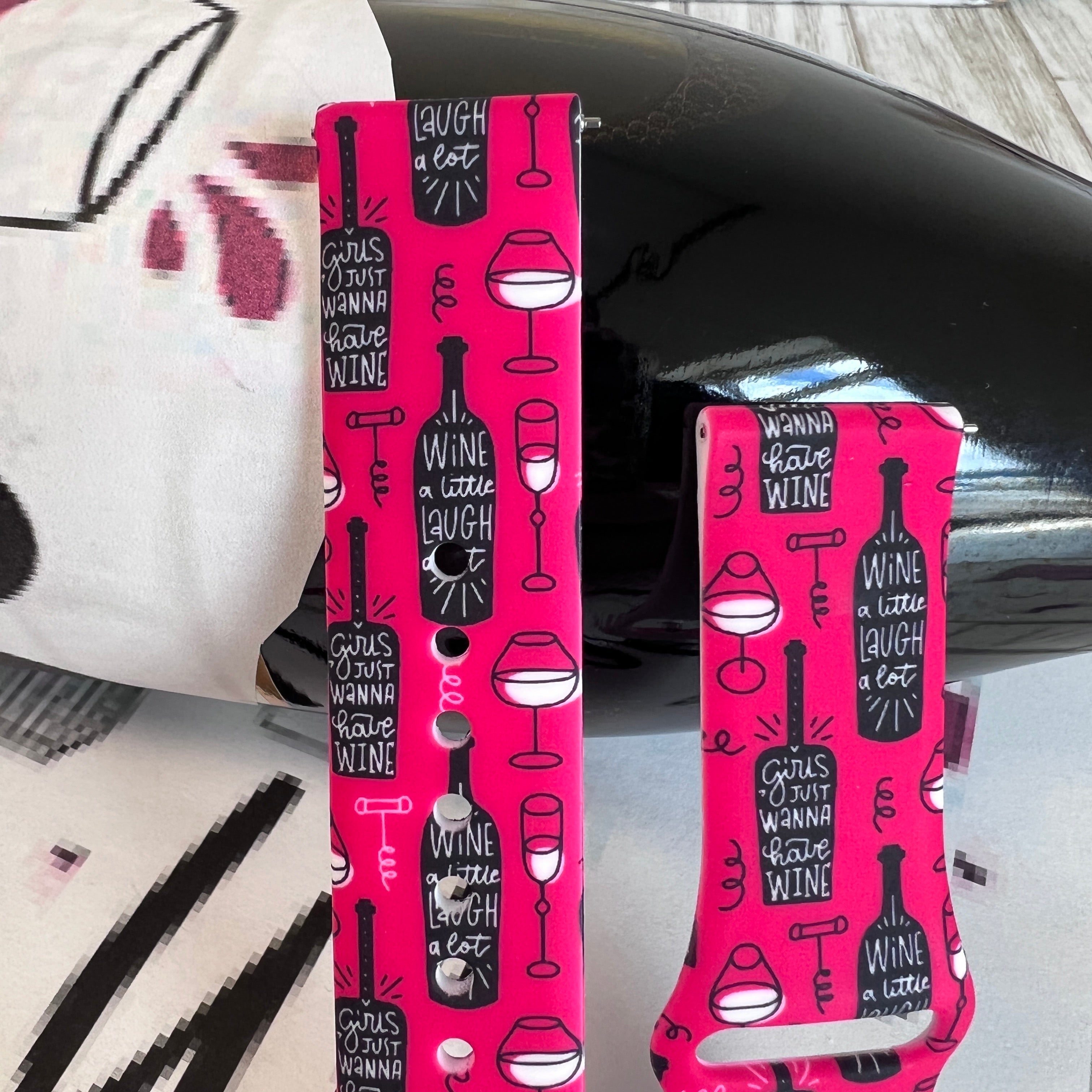 Wine, Love, Laugh Print Silicone Band For Samsung Watch