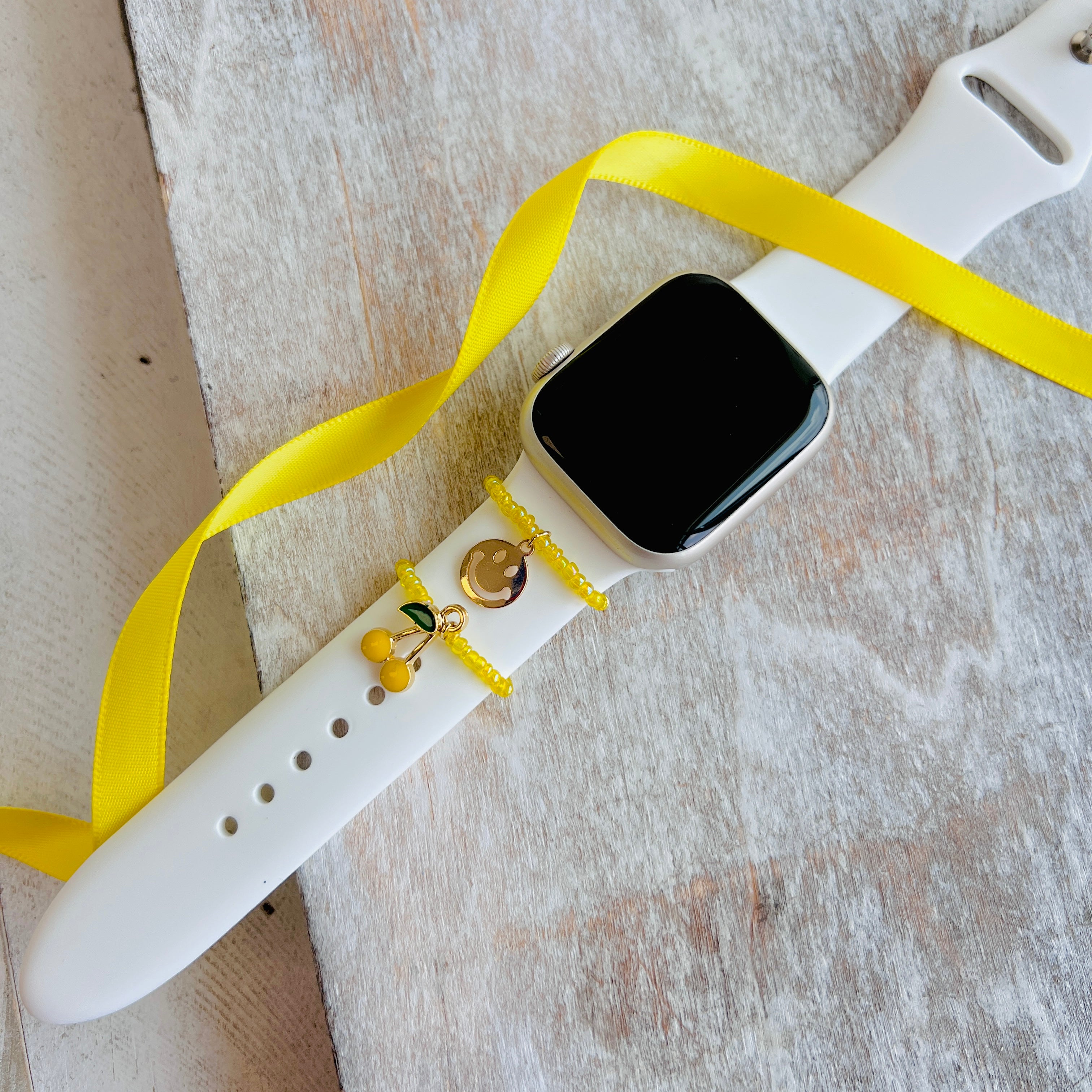 These super cute watch band accessories are suitable for Most Silicone band/leather bands. Designed as a loop ring that slides easily on your watch bands.( Compatible with Apple Watch Silicone Band suitable all Apple series 1-10 & SE, Samsung, & Versa Watch Bands.