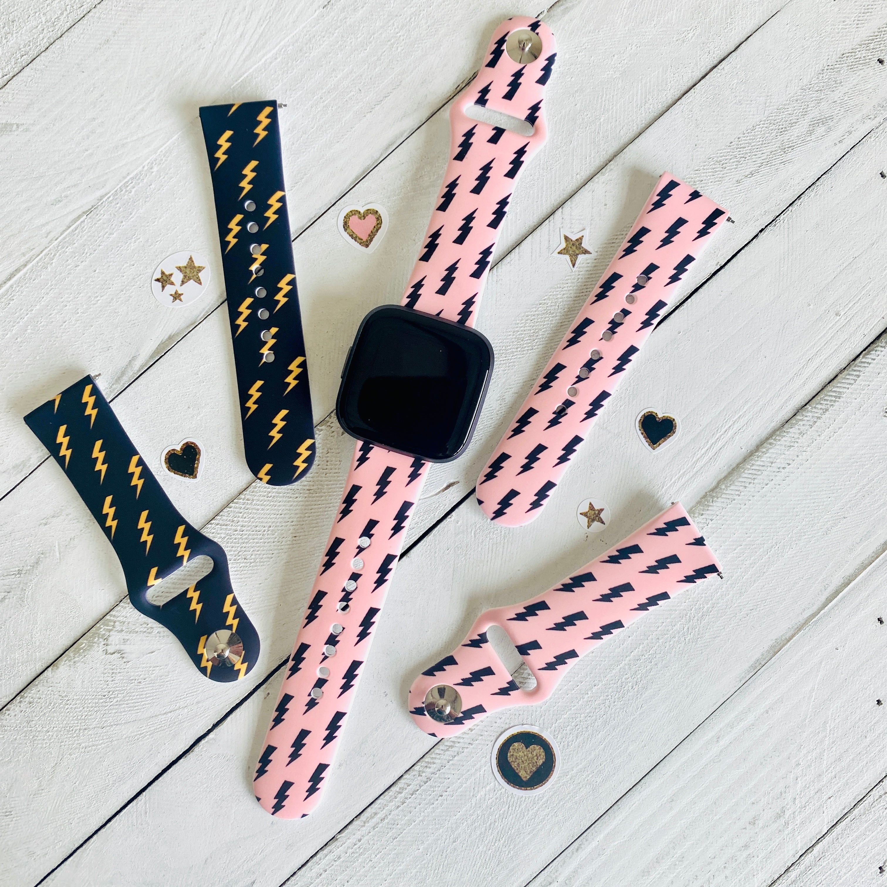 Lightning Bolt Print Silicone Band For Fitbit Versa 1/2 Multiple Colors Available