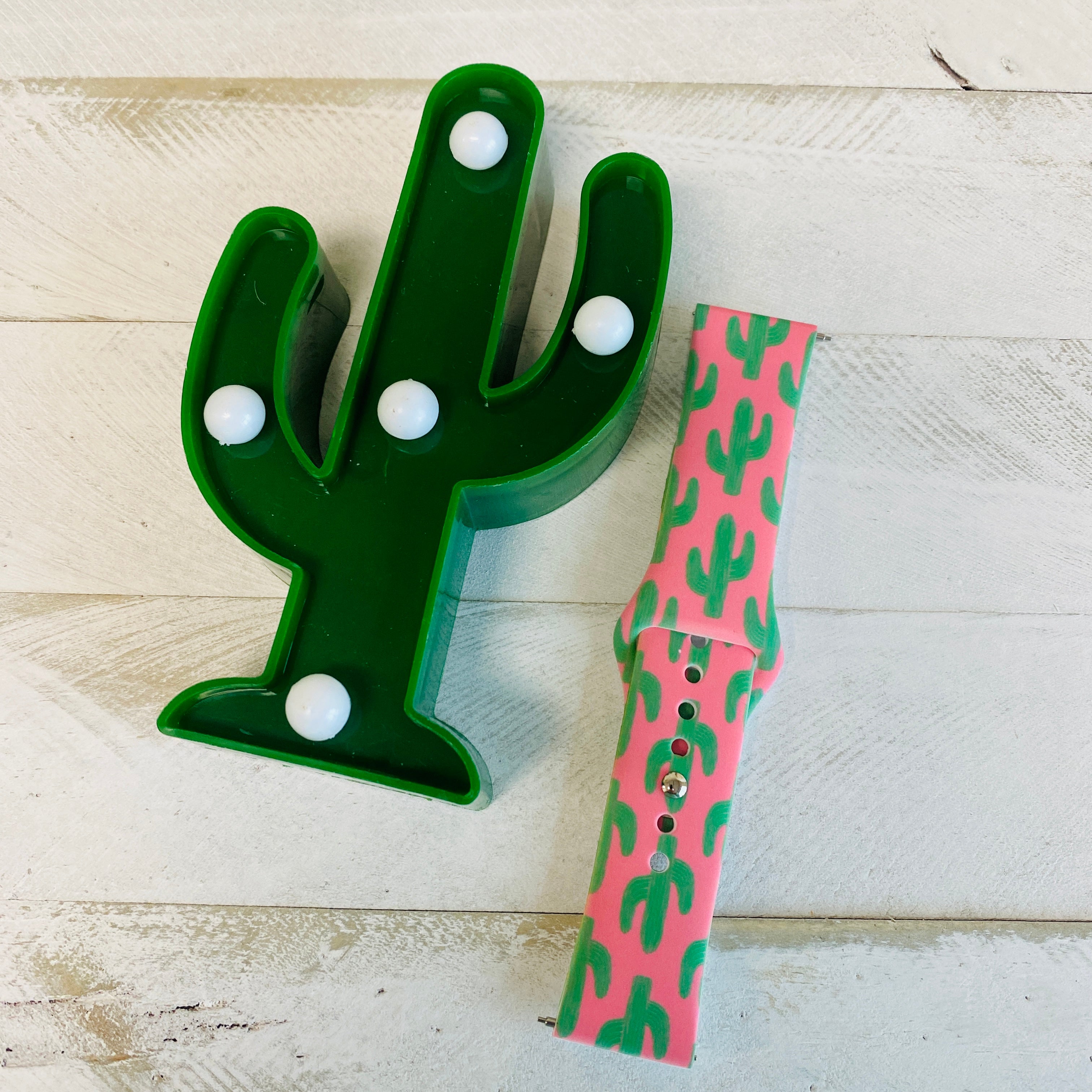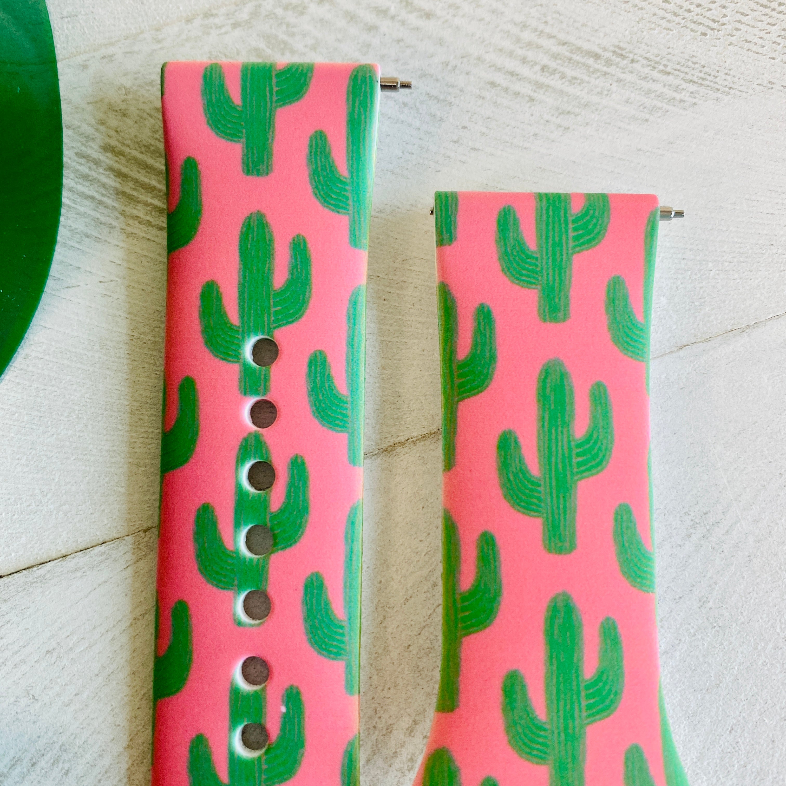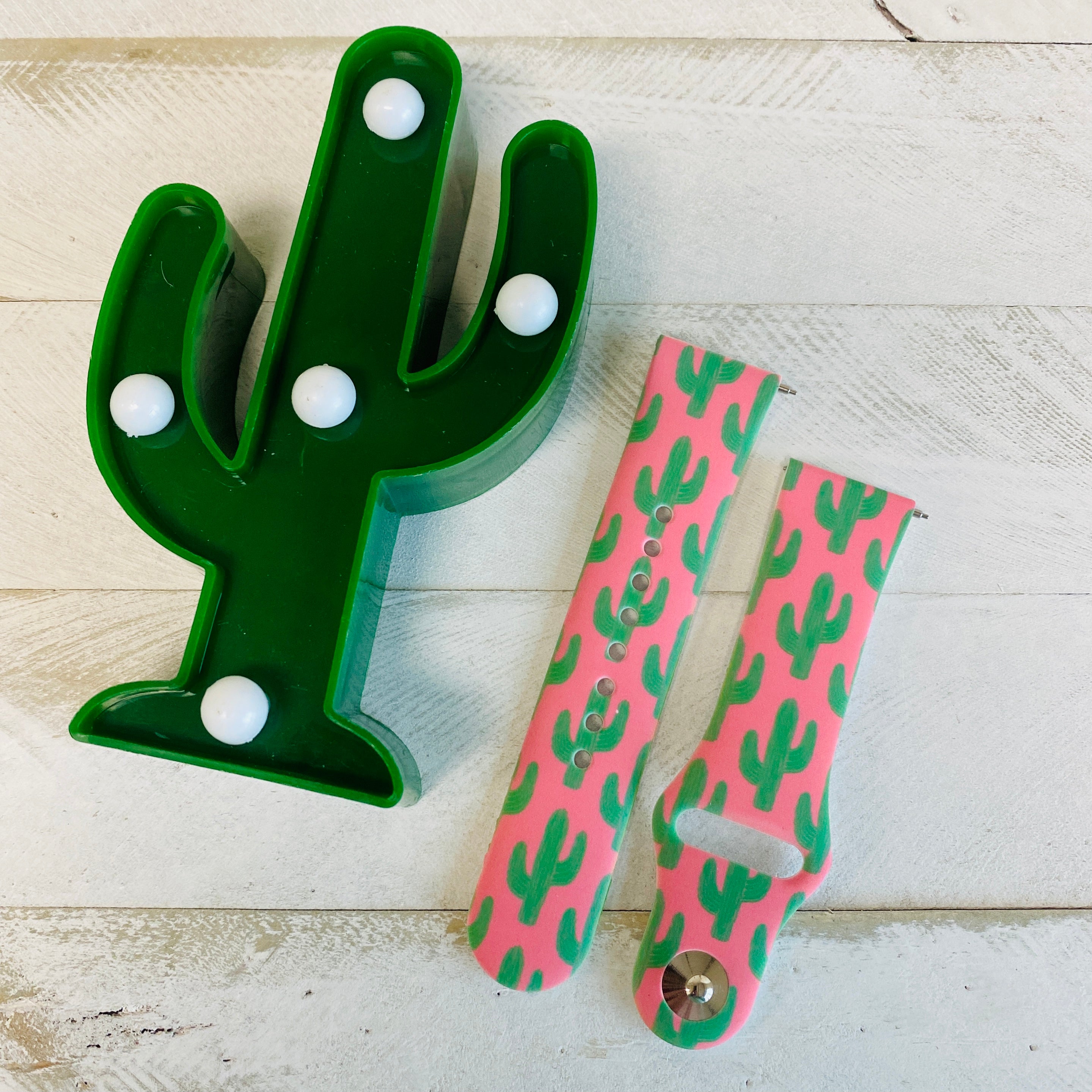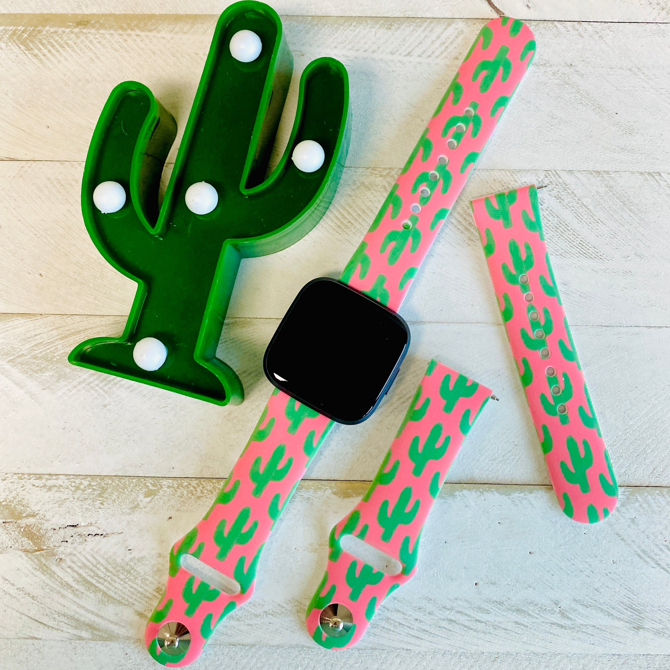 Pretty In Pink Cactus Print Silicone Band For Fitbit Versa 1/2