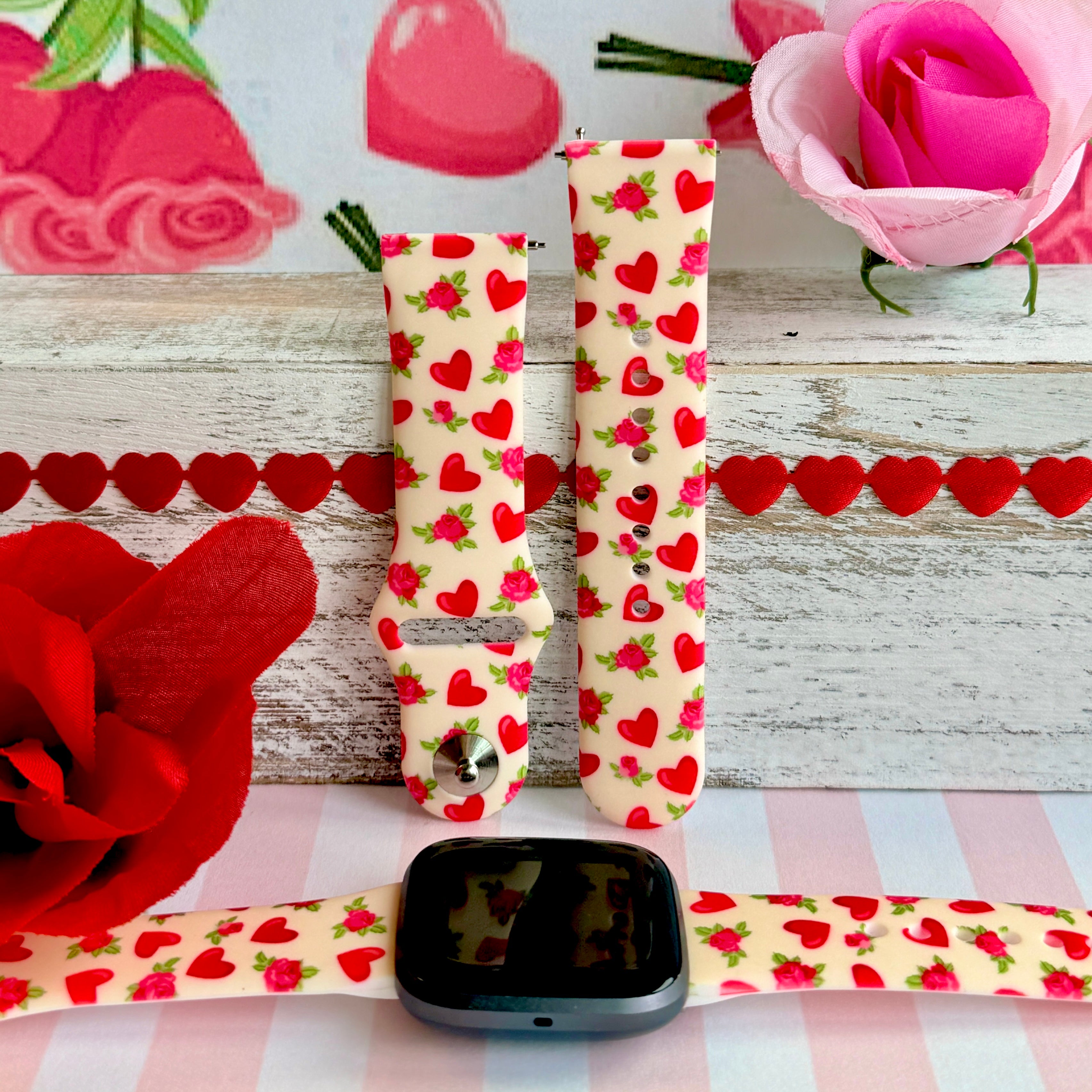 Sweetheart Blooms Print Silicone Band For Fitbit Versa 1/2