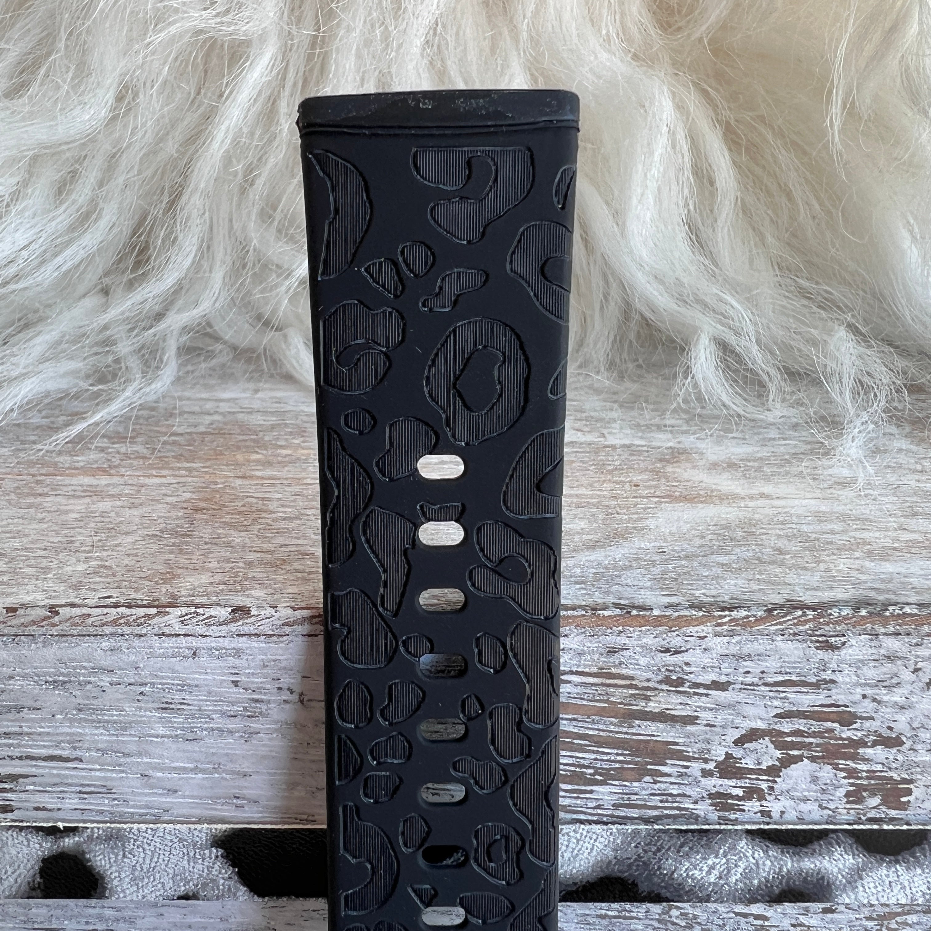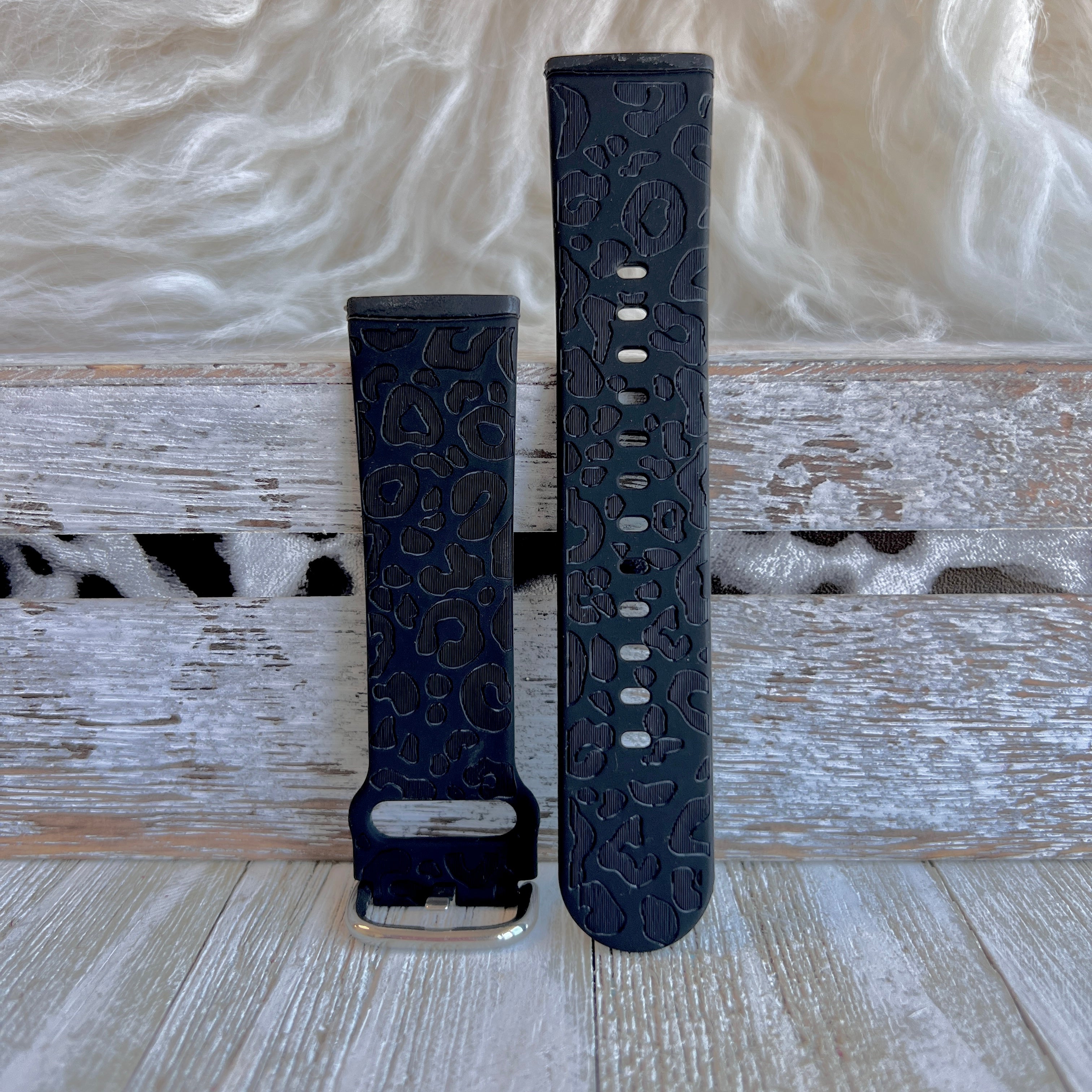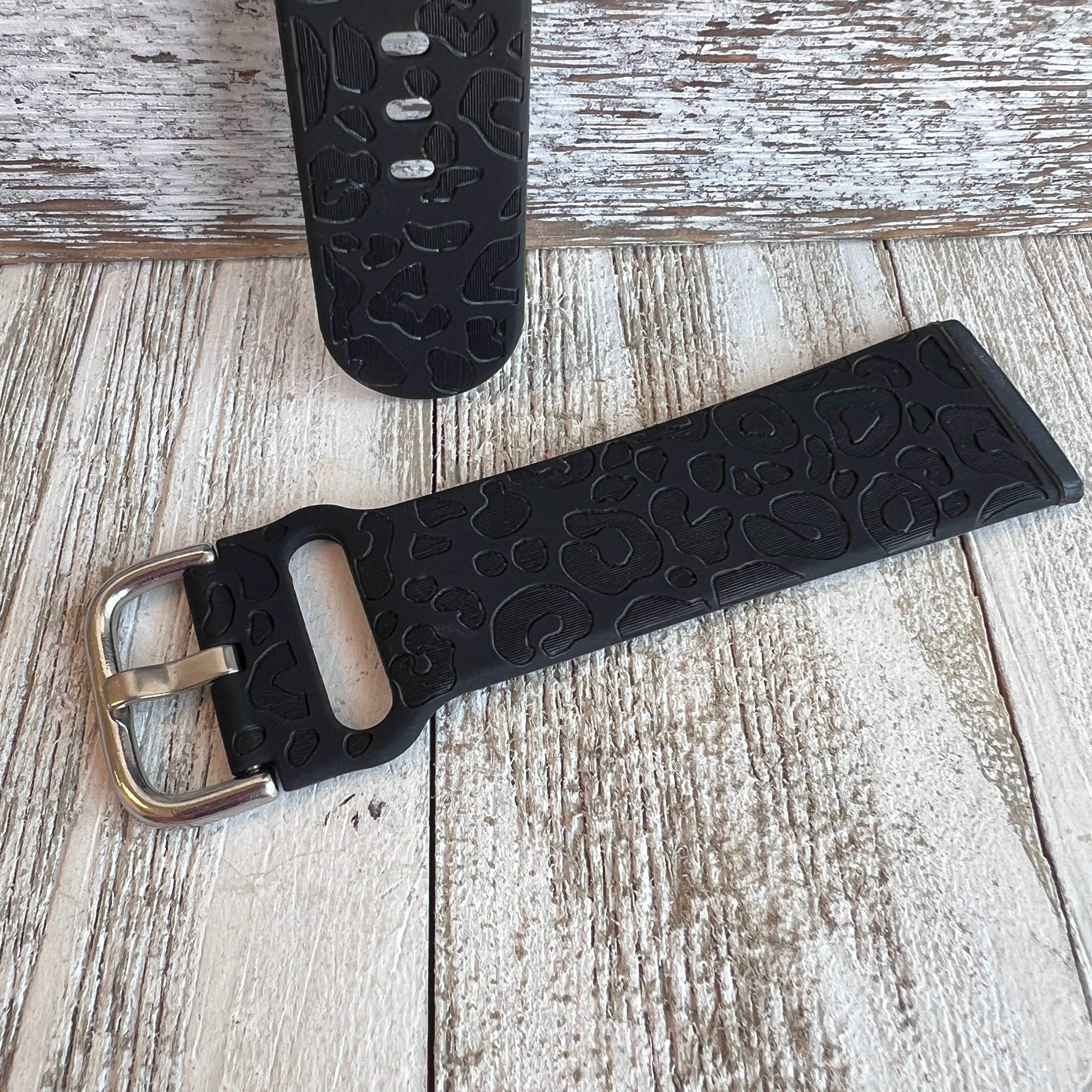 Engraved Black Leopard Print Silicone Band For Fitbit Versa 3/4/Sense