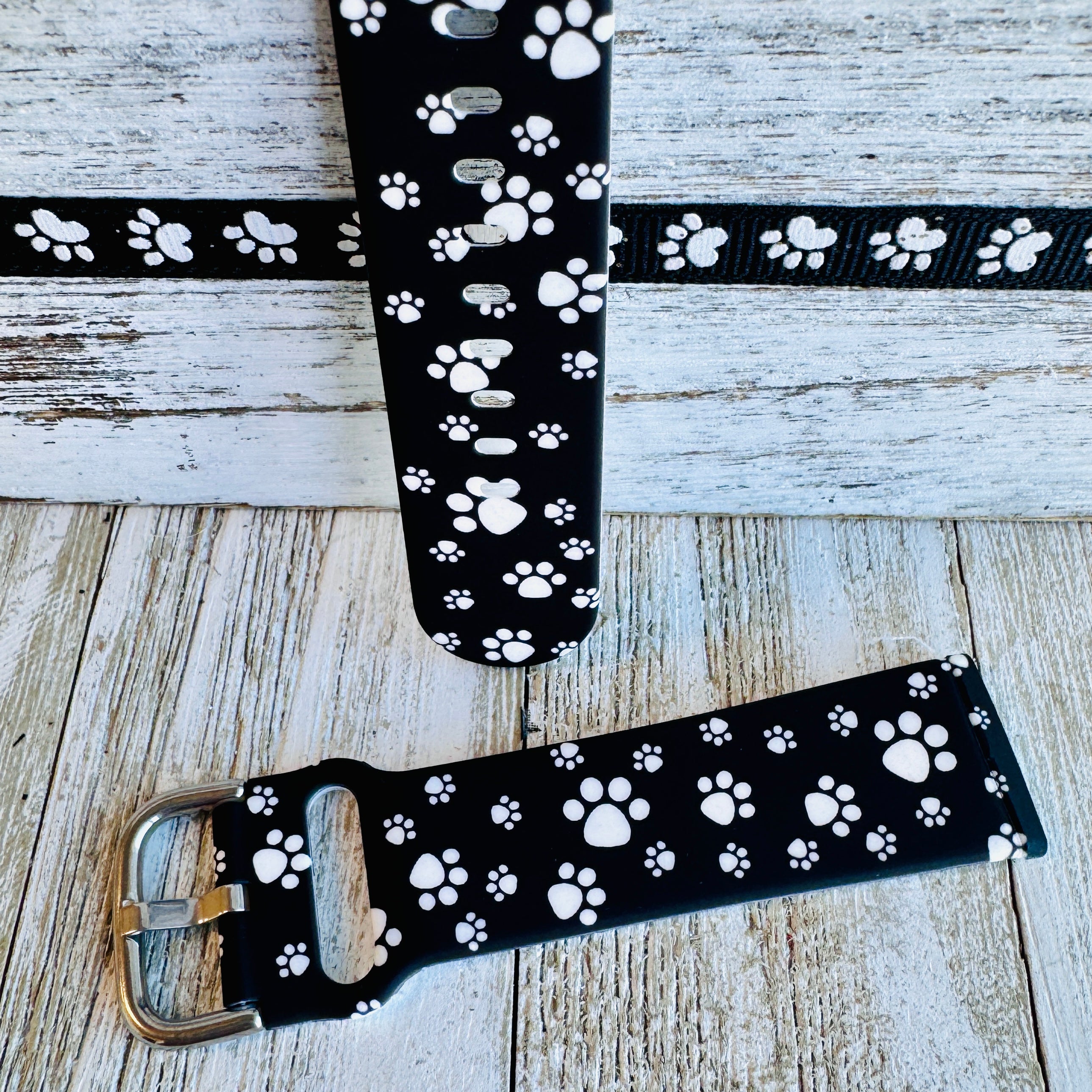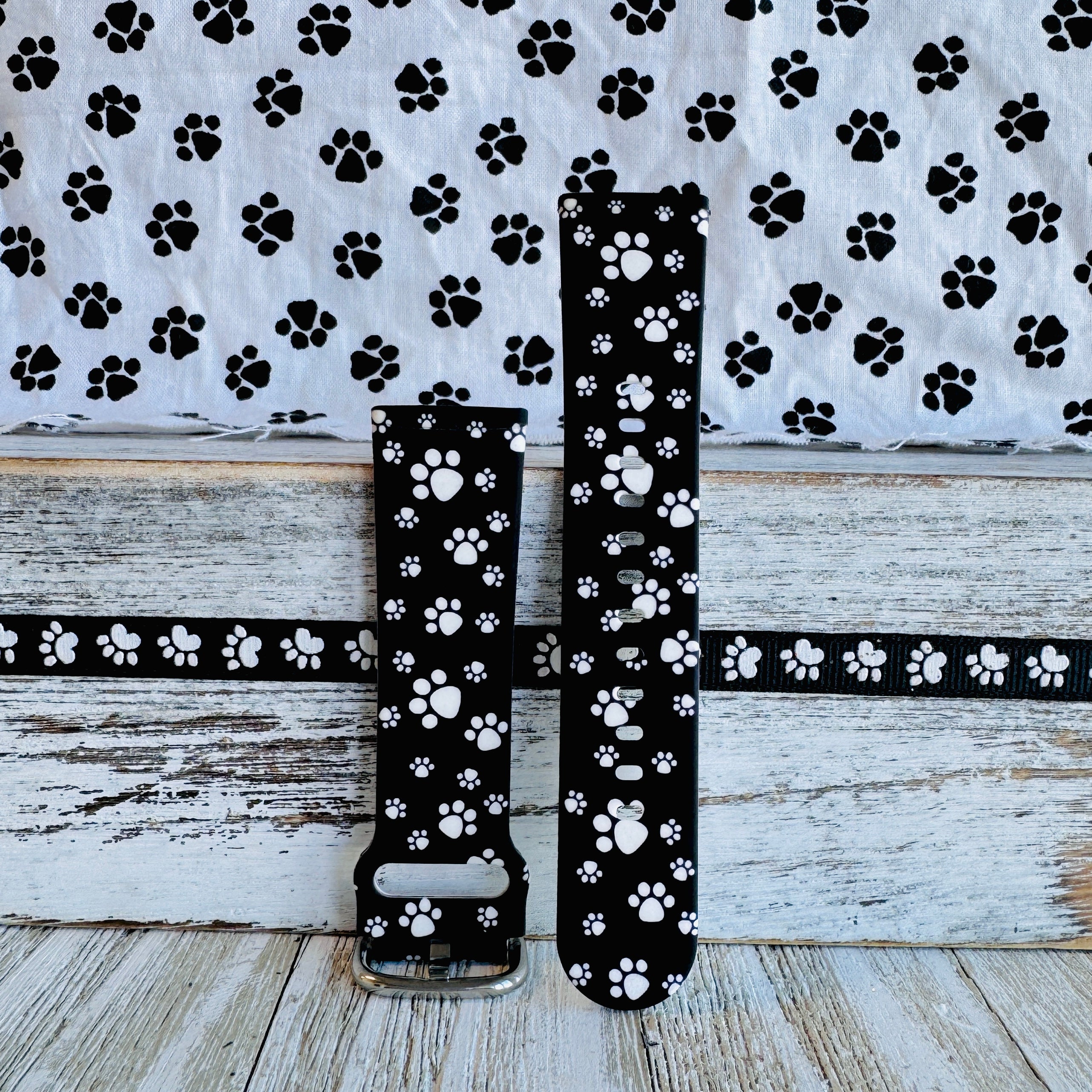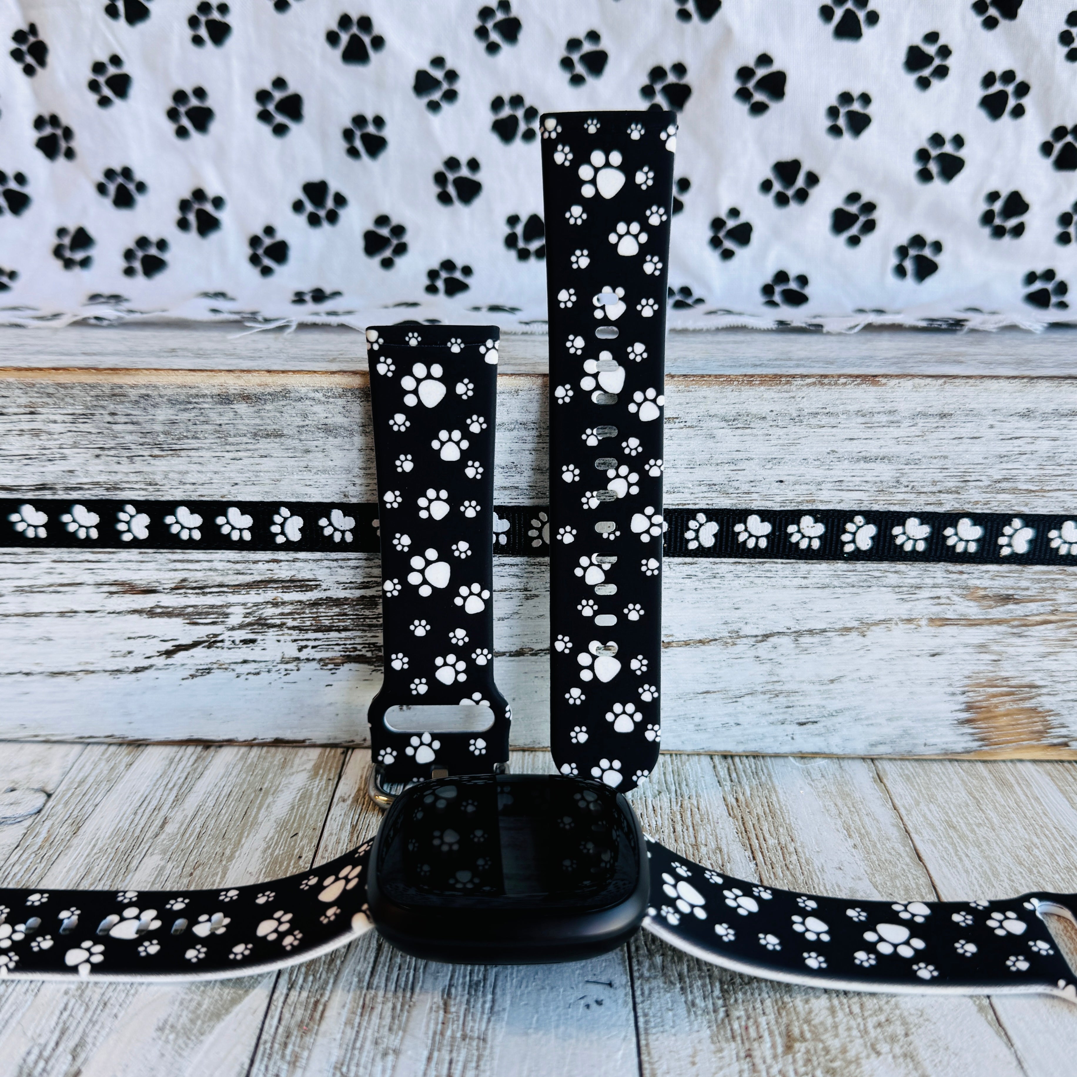 Paw Print Black Background Print Silicone Band For Fitbit Versa 3/4/Sense