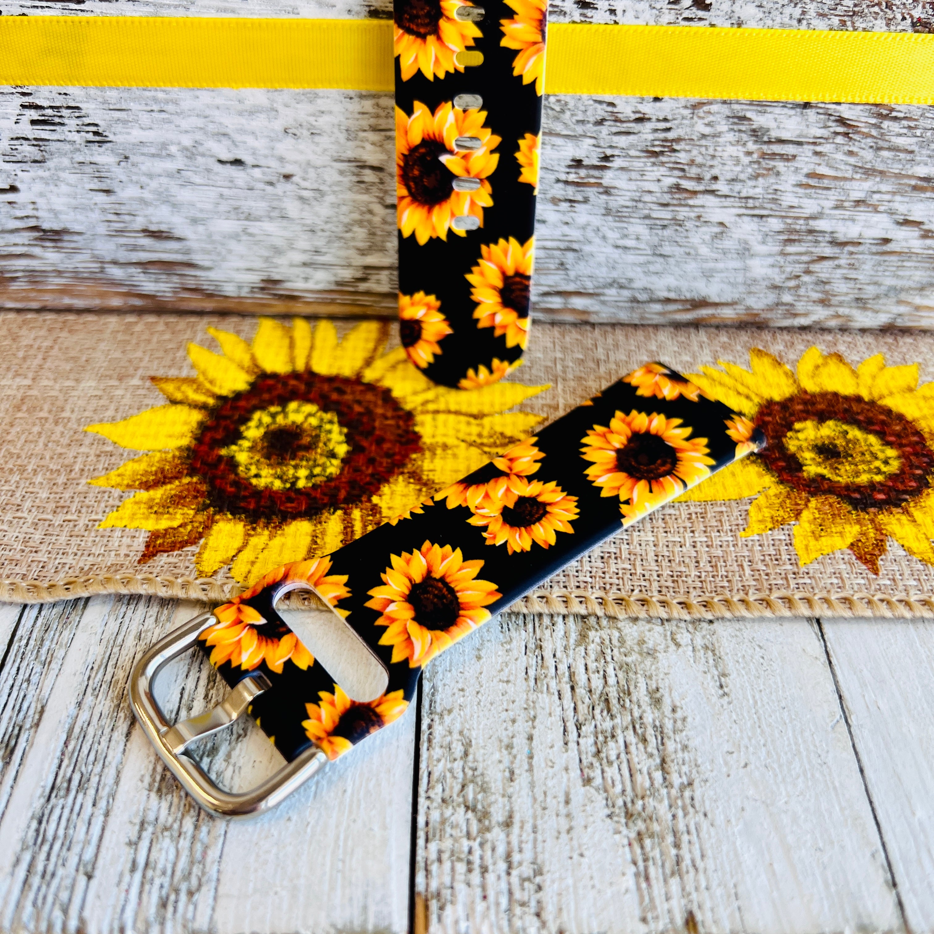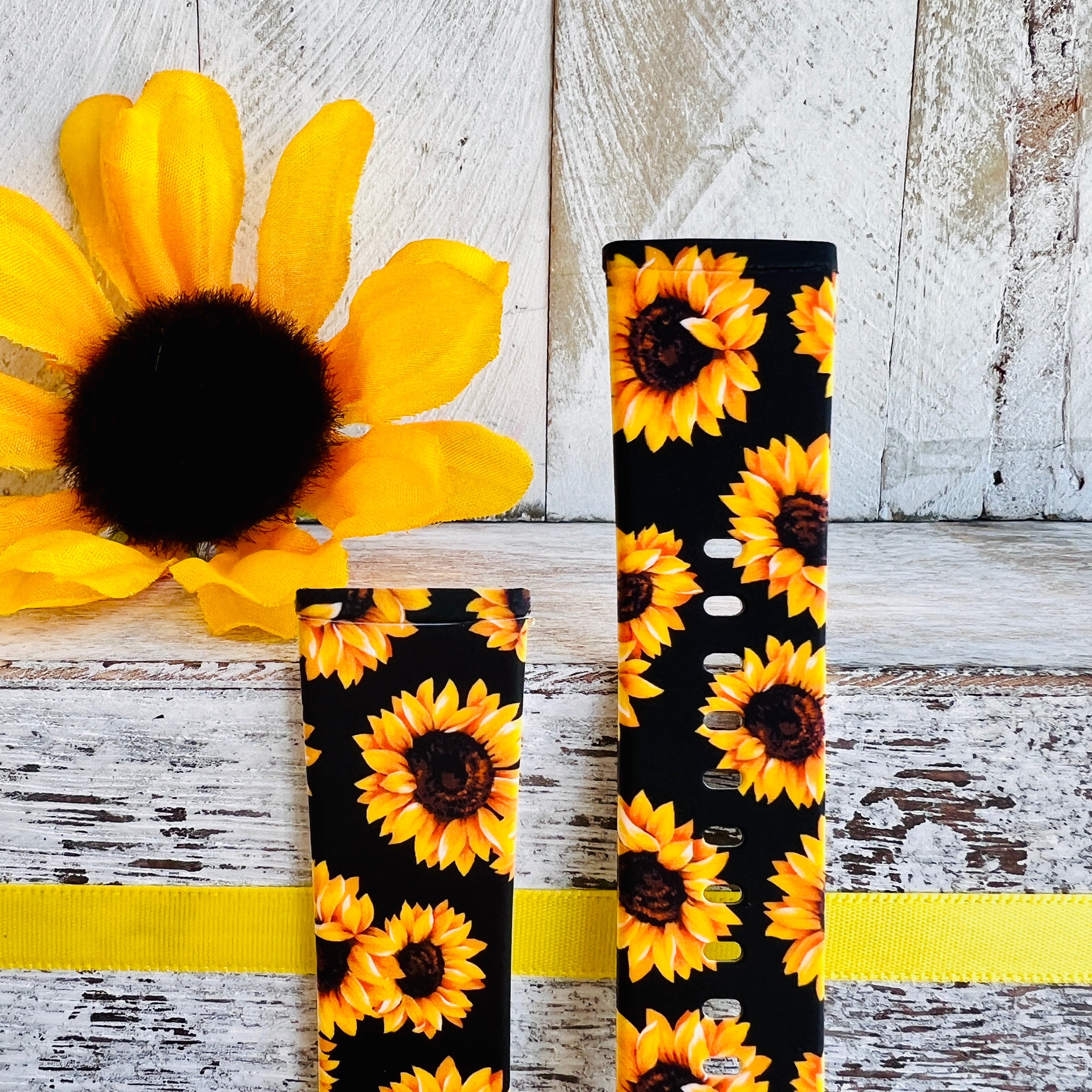 Sunflower Black Background Print Silicone Band For Fitbit Versa 3/4/Sense