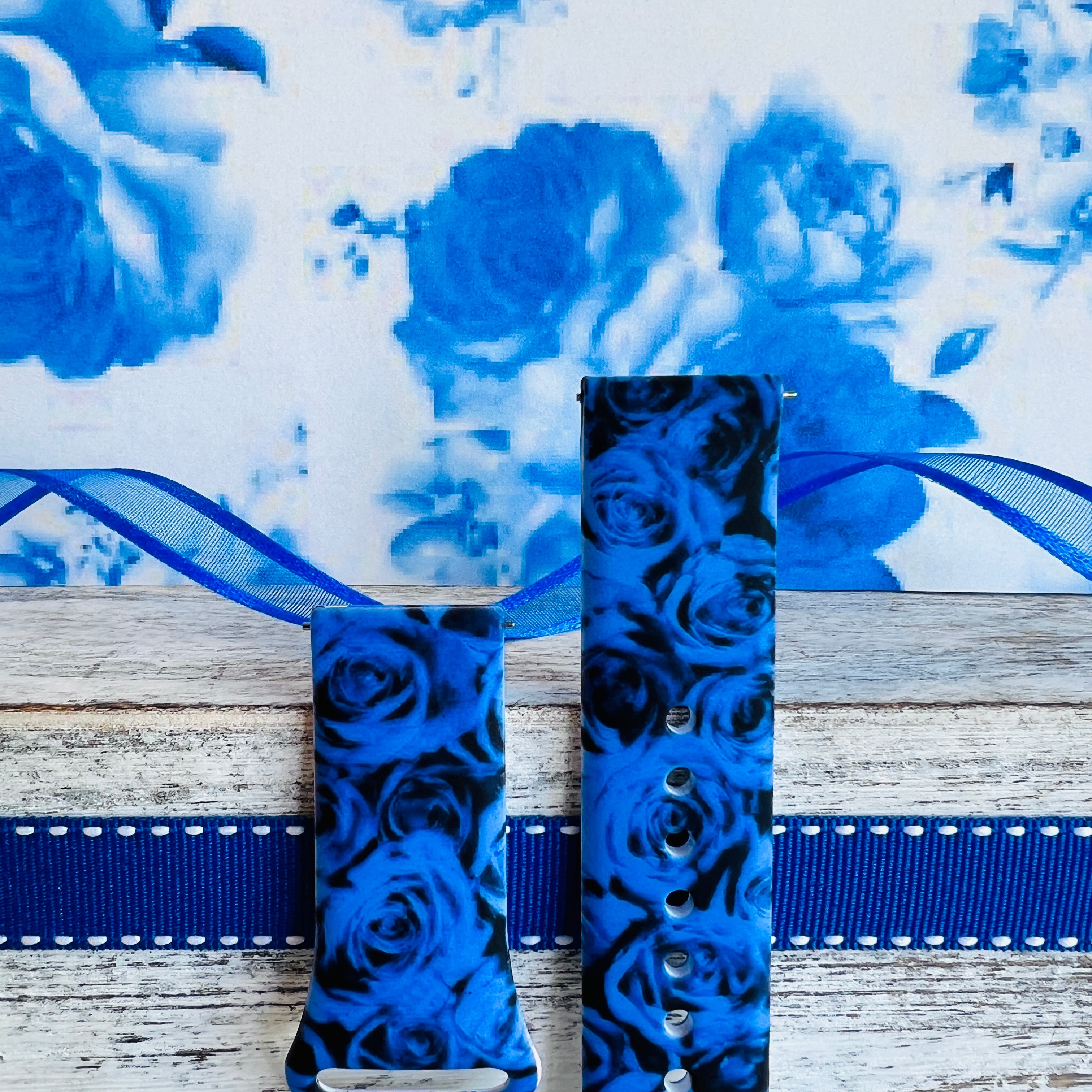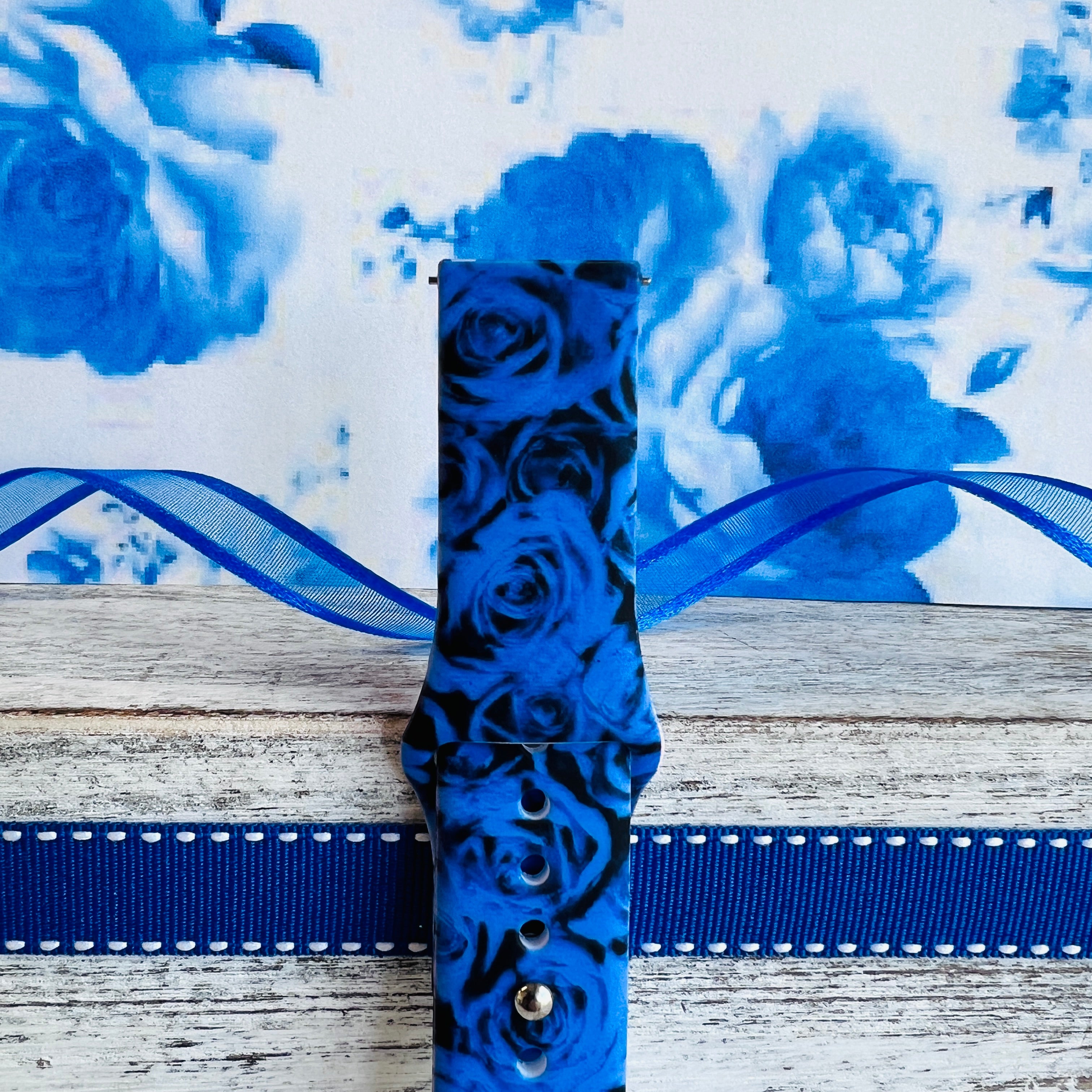 Cobalt Blue Roses Print Silicone Band For Samsung Watch