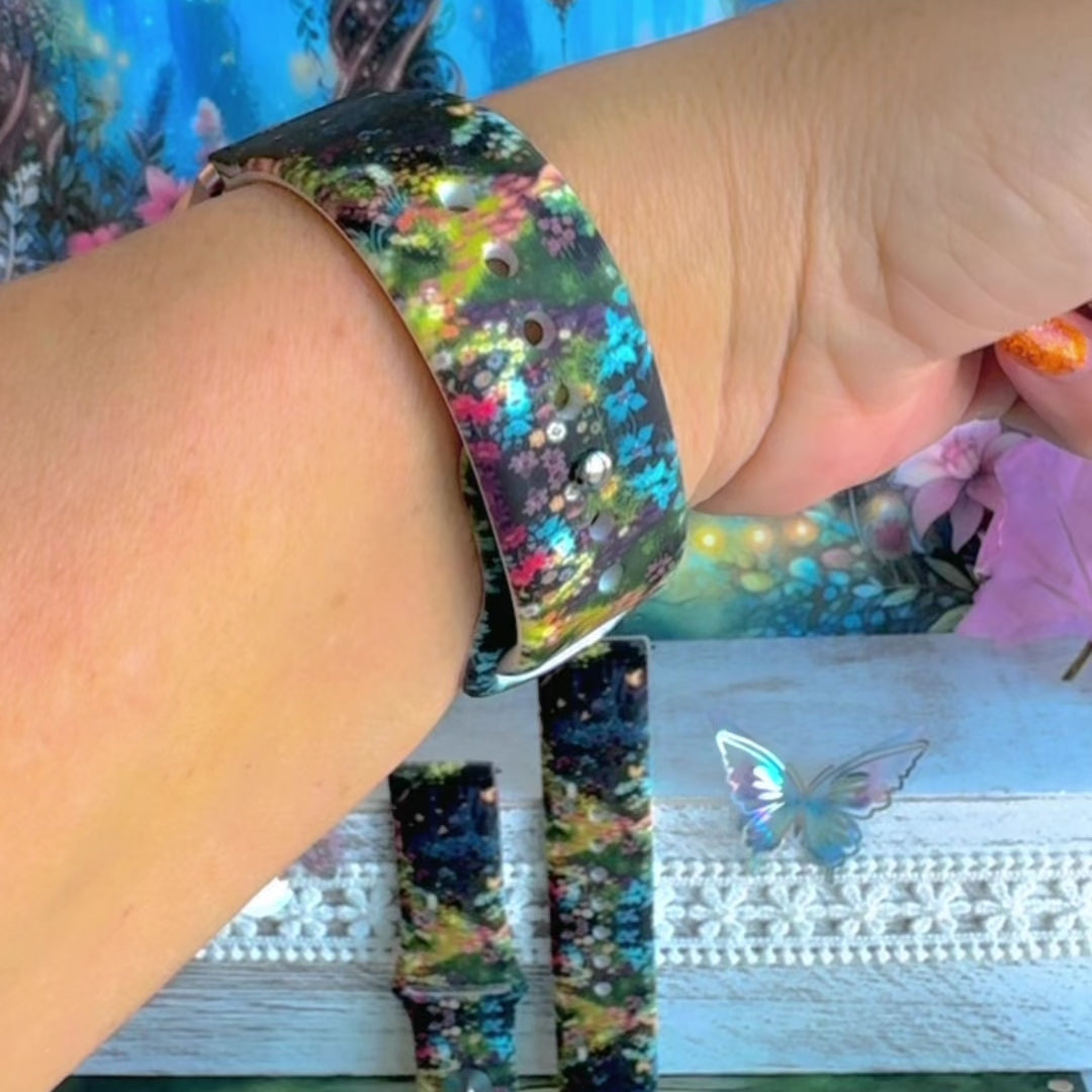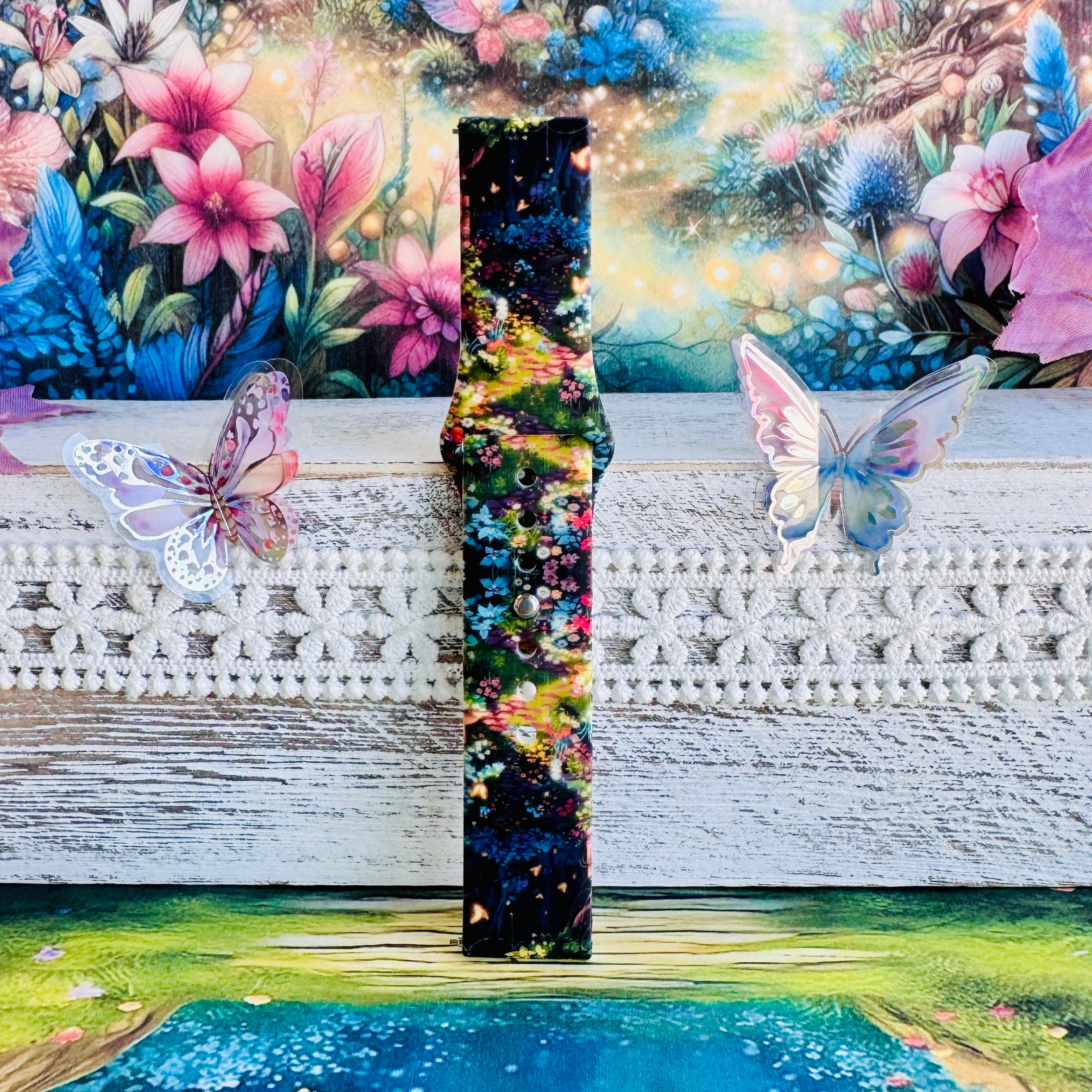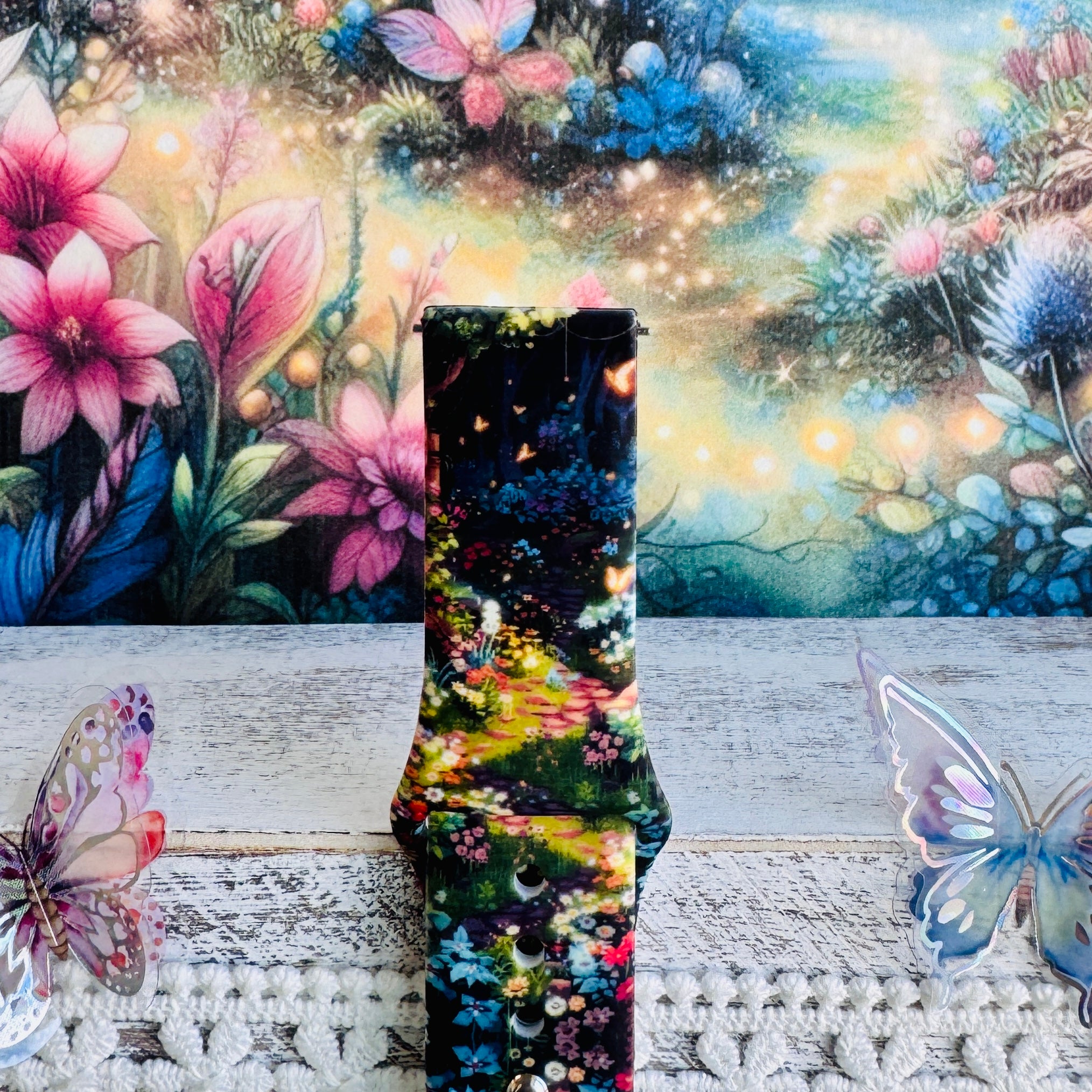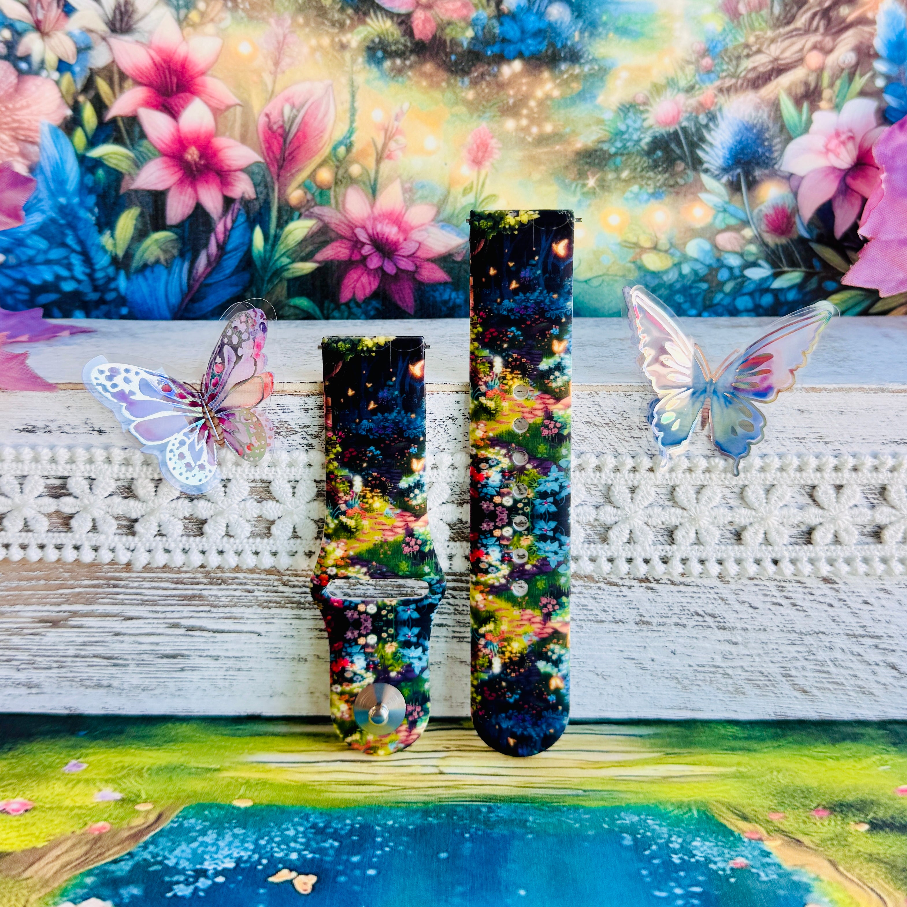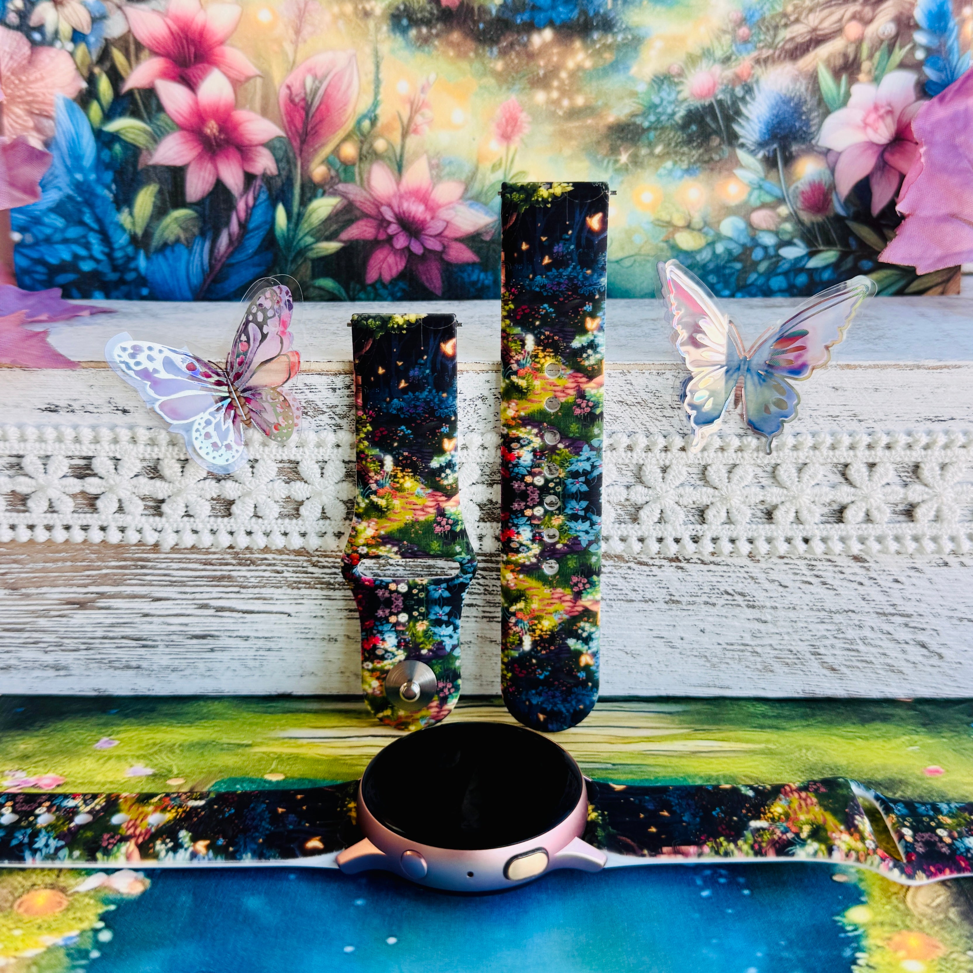 Step into a twilight meadow with Mystic Garden 🌙🦋. Lantern-lit florals and butterfly hues glow across a soft-touch silicone Samsung Galaxy Watch band that stays light on the wrist, rinses clean in seconds, and brings a little magic to everyday outfits—perfect for gym days, office hours, and late-night adventures.