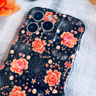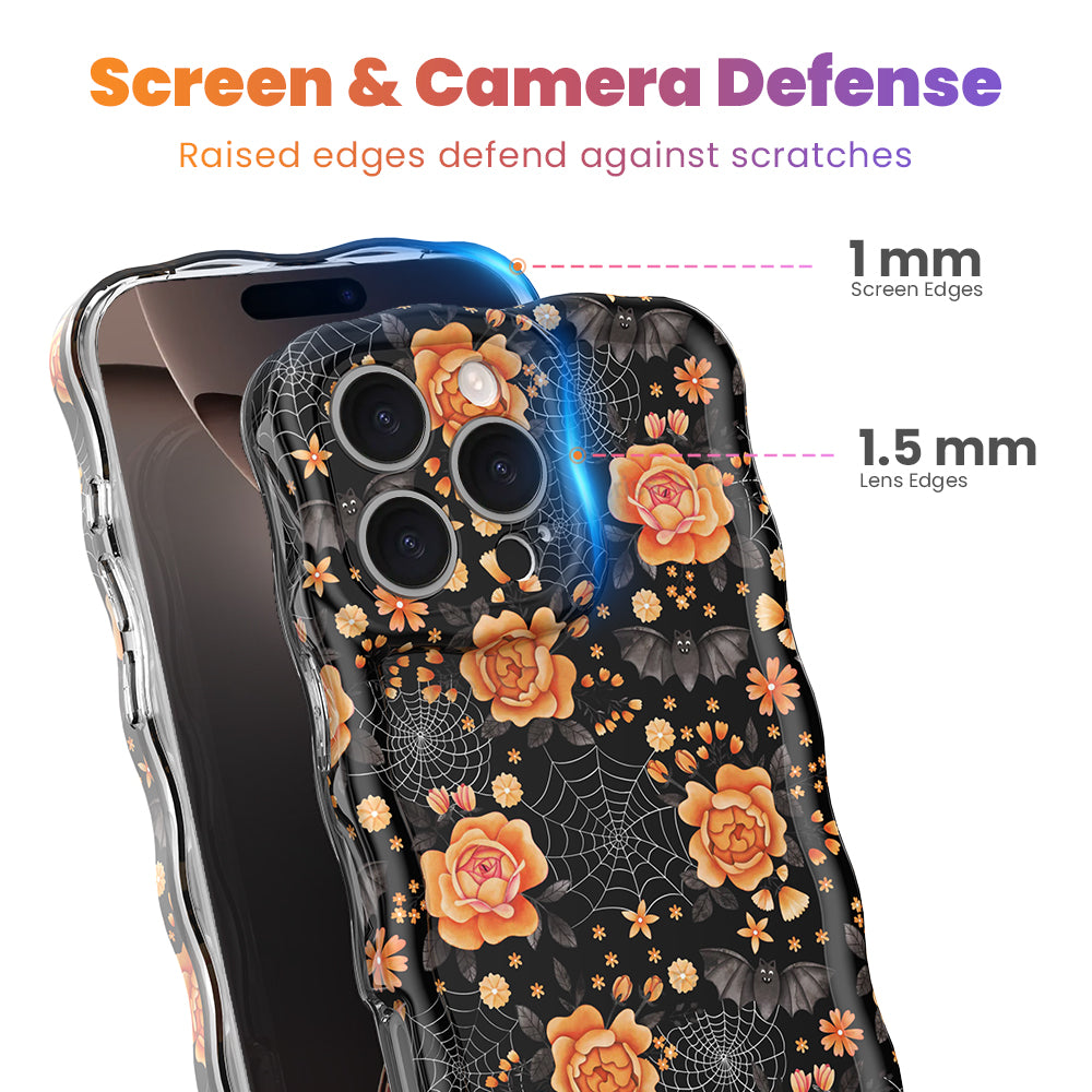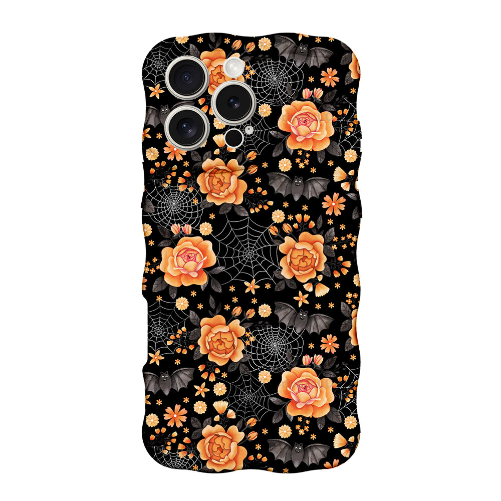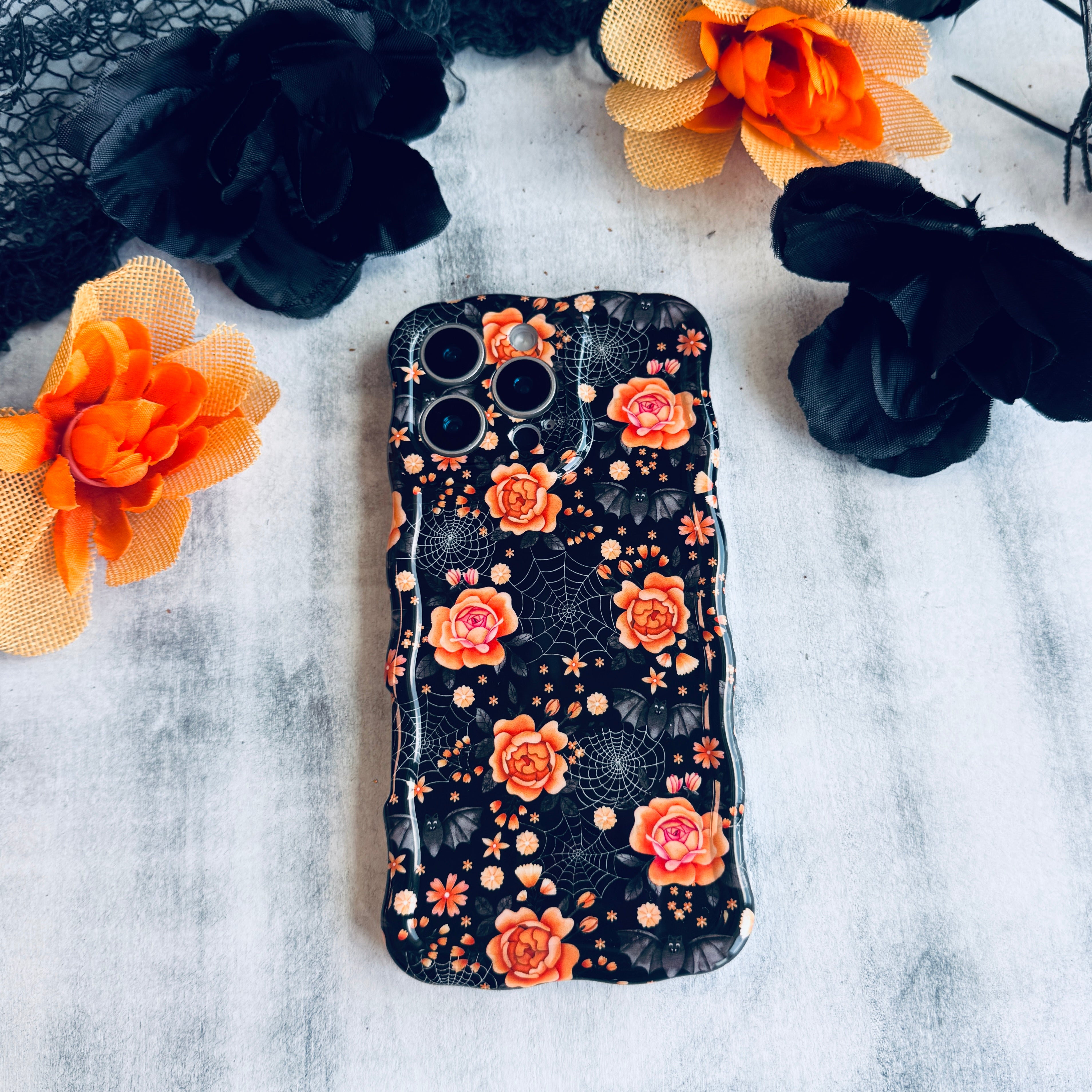Where spooky meets chic 🌙 The Haunted Blossoms Wavy Luxe MagSafe Case blends eerie Halloween vibes with elegant floral style. Featuring bold orange roses, spiderwebs, and bats across a glossy black background, this limited-edition case is the perfect mix of dark romance and everyday protection—fully MagSafe-ready.