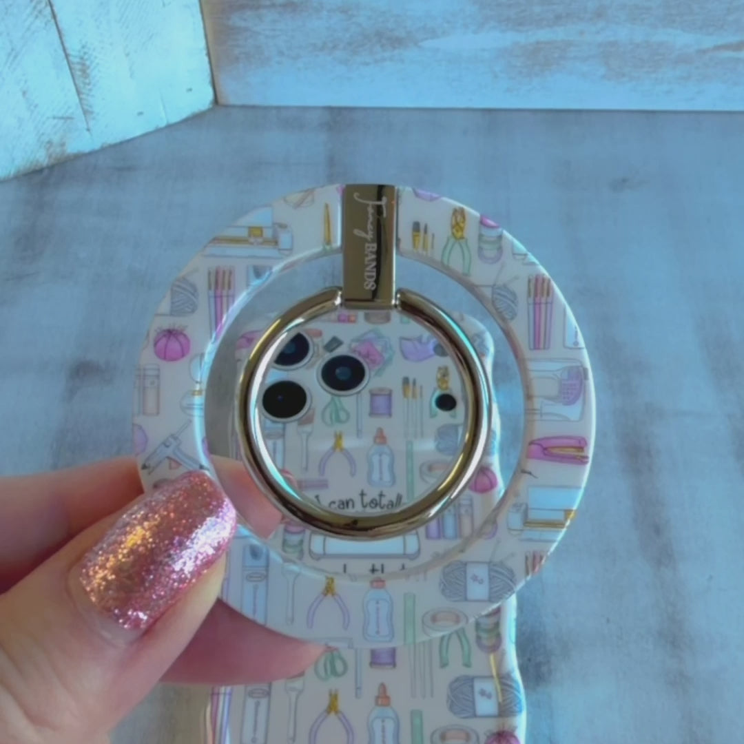 One-handed texting made easy. See how our MagSafe grip ring attaches magnetically to give you a secure hold and adjustable kickstand for hands-free viewing. Sold separately - pairs perfectly with our I Can Totally Make That Magsafe case.
