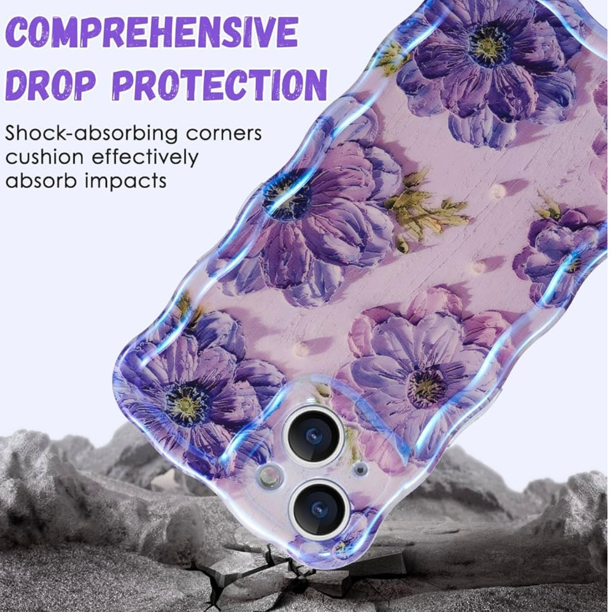 Elevate your iPhone's style with the Wavy Luxe MagSafe Case. This case combines an artistic wavy edge design with vivid floral prints, offering a sleek and elegant look. The high-gloss, iridescent outer layer reflects light beautifully, creating a mesmerizing color-shifting effect—shimmering with hues like an oil-slick or water ripple, depending on the angle and lighting. It's designed for both aesthetics and functionality, providing reliable protection and seamless MagSafe compatibility for effortless charging and accessory attachment.