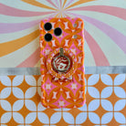 Gossip Girl Retro Edition 70s geometric pattern MagSafe phone grip ring with orange and pink interlocking circles compatible with iPhone and Samsung