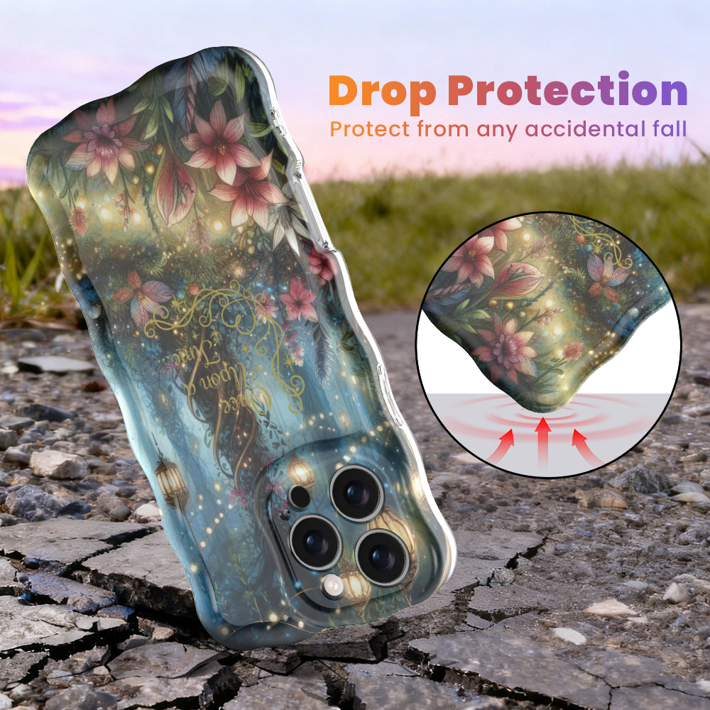 Step into your own fairytale with the Once Upon A Time Wavy Luxe MagSafe Case from Fancy Bands—a premium enchanted forest iPhone case that brings a touch of magic to every day. Featuring a breathtaking scene of a glowing magical tree, hanging lanterns, and vibrant blooms under a starlit canopy, this case is centered with the classic gold script: "Once upon a time..." 🌲✨