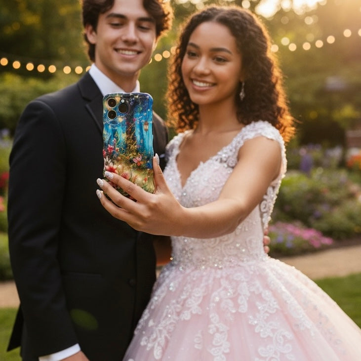 Designed for the storytellers and those who believe in magic, the Once Upon A Time case transforms your phone into a portal to an enchanted realm. The intricate artwork features deep forest teals, glowing amber lanterns, and pops of crimson flowers that create a rich, immersive aesthetic. It’s the ultimate accessory for anyone who embraces "main character energy" and wants their tech to reflect their love for wonder and whimsy. 🦋🏰