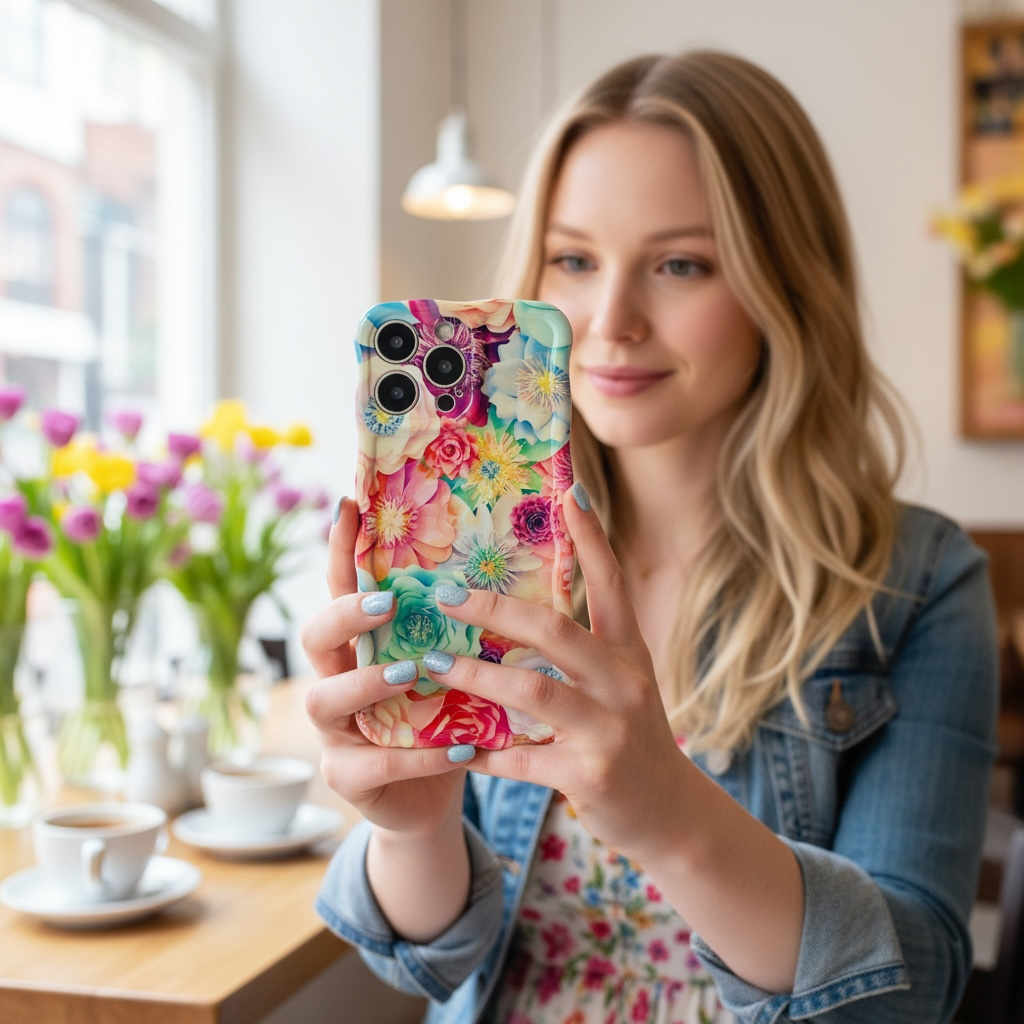 Why wait for April showers? The Spring Bouquet case is designed for the person who loves color, energy, and bold beauty. This isn't a subtle floral pattern; it's a statement. The dense, layered botanical design creates a "more is more" aesthetic that pairs perfectly with dopamine dressing and bright personalities. It’s the perfect colorful flower phone case to brighten up your desk, your mirror selfies, and your mood instantly. 🌷☀️