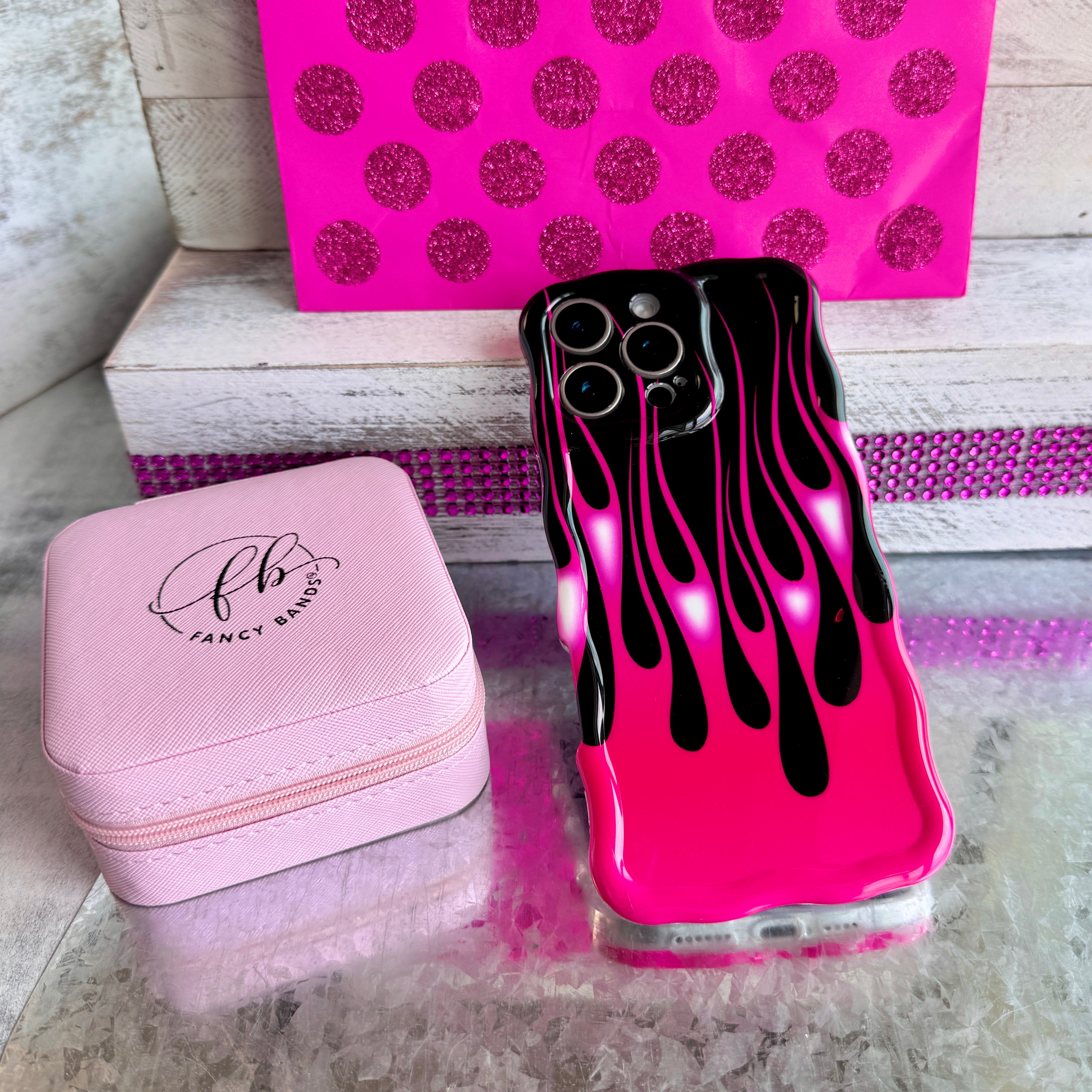 Rev up your look with the Hot Rod Pink Flame Wavy Luxe MagSafe Case for iPhone. Featuring blazing hot pink flames over a sleek black backdrop, this glossy case fuses retro hot rod energy with modern MagSafe compatibility. Bold, fiery, and protective—perfect for fearless trendsetters who want their phone to make a statement. 🚗🔥